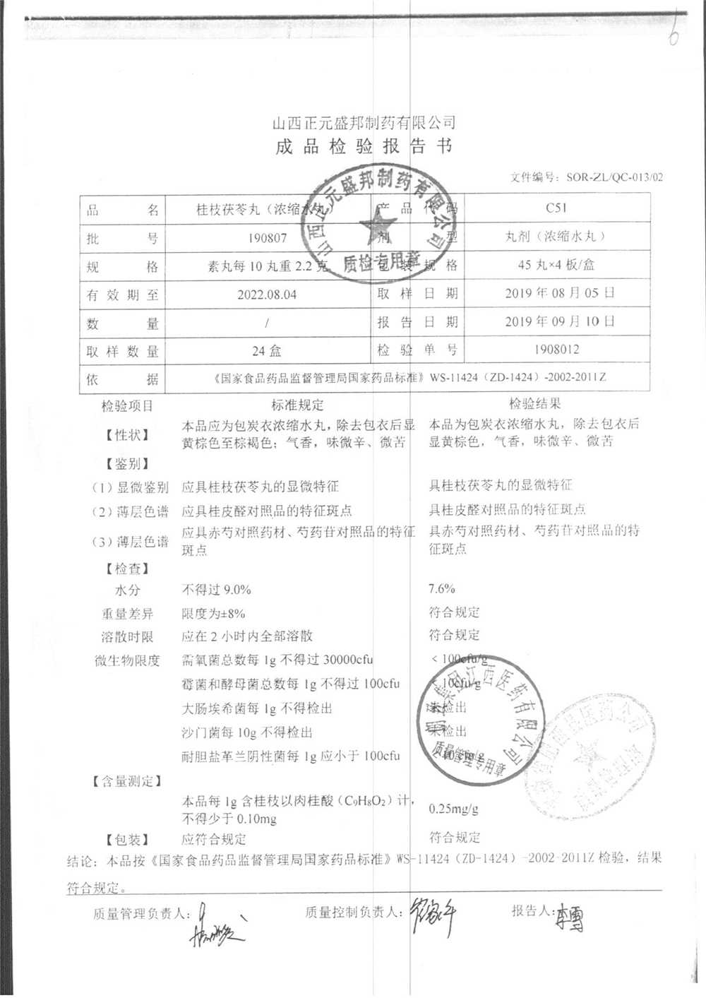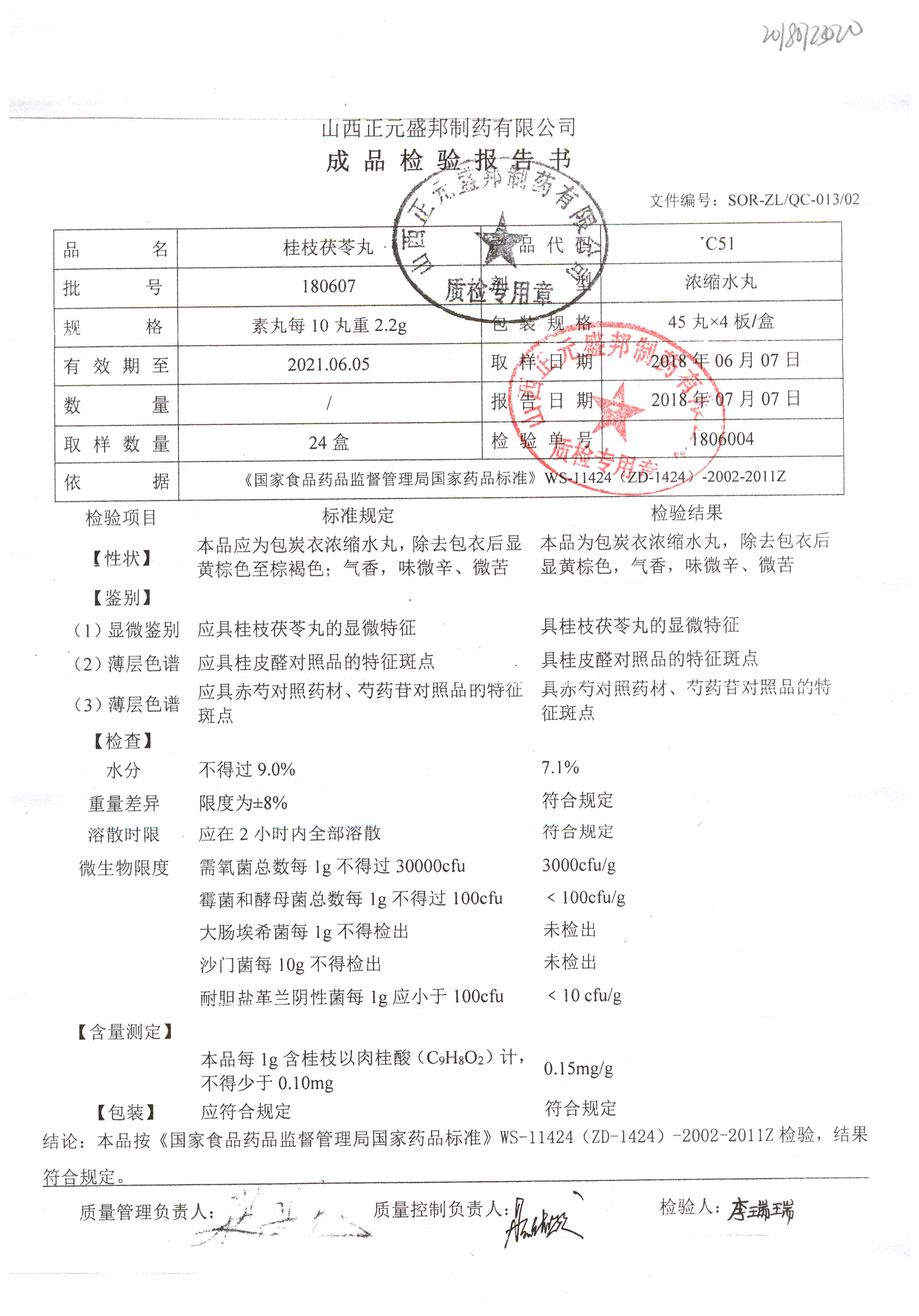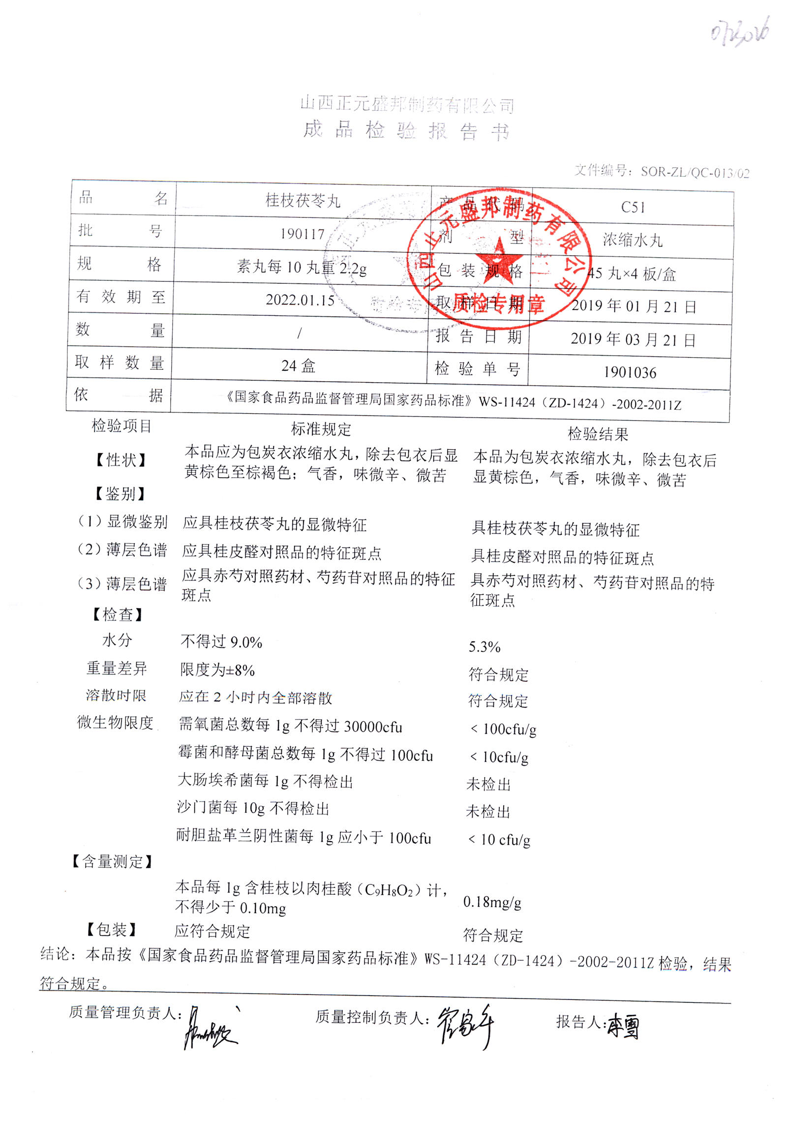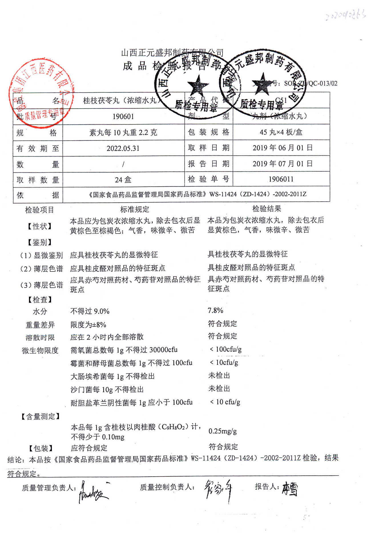 药检报告