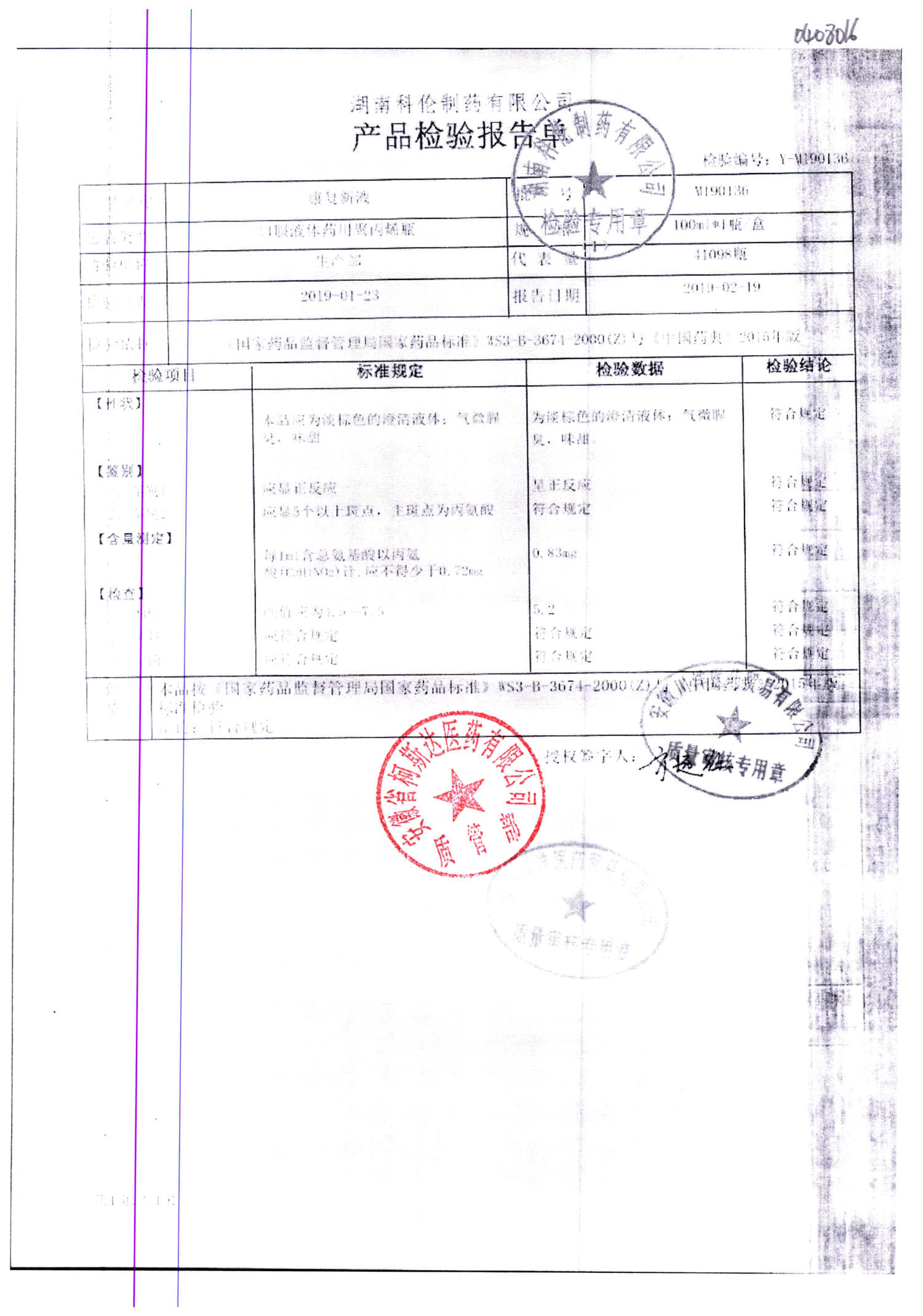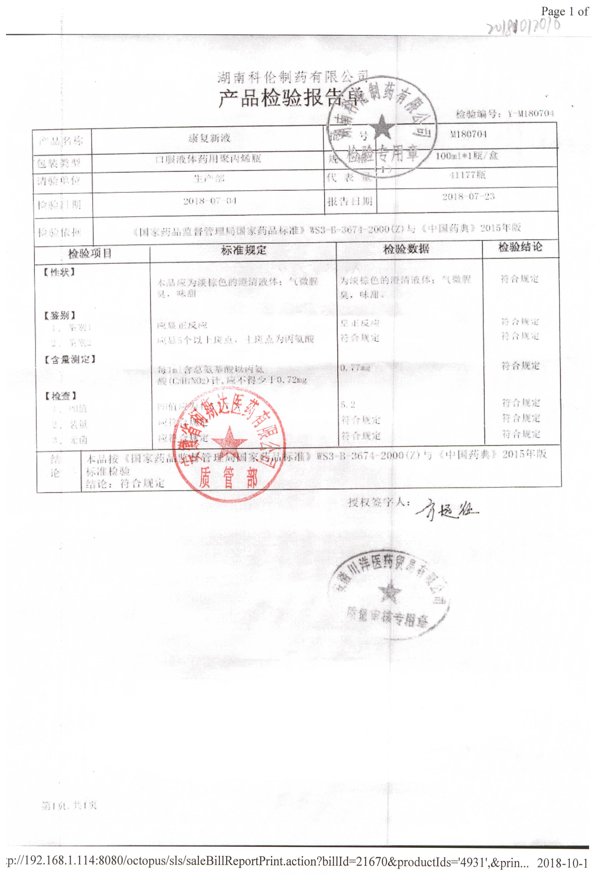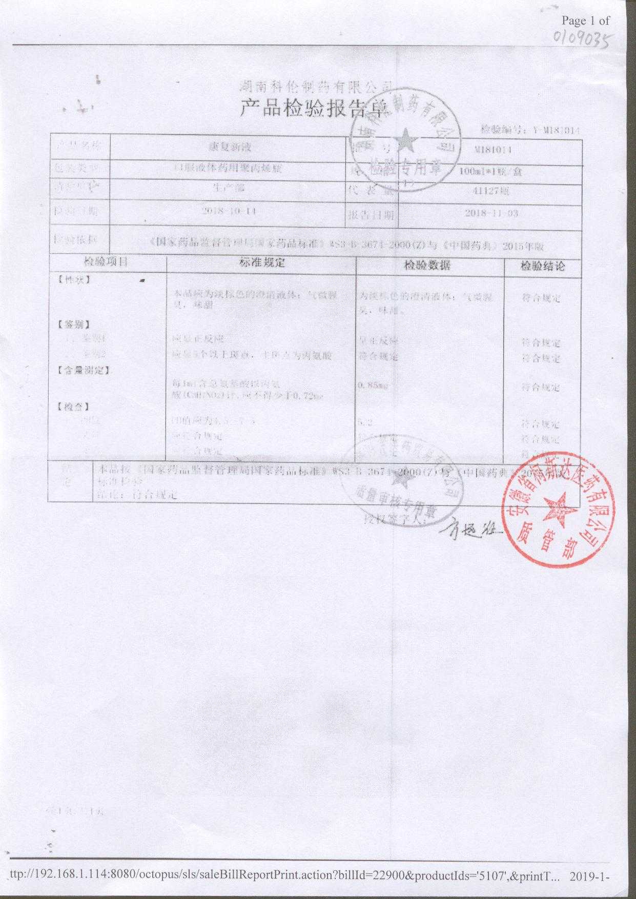 名称 | 规格 | 批号 | 药检报告 |