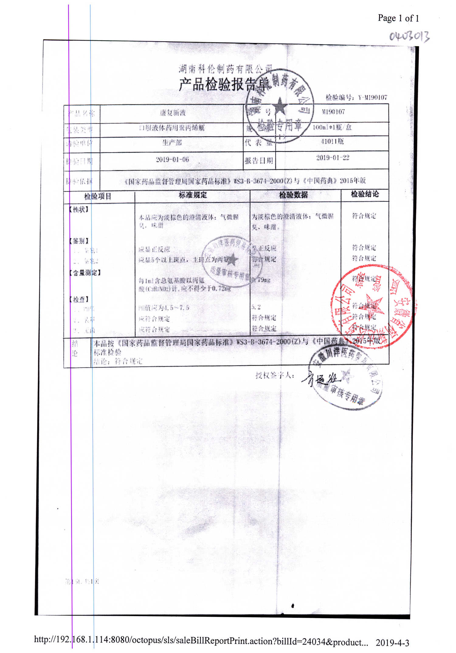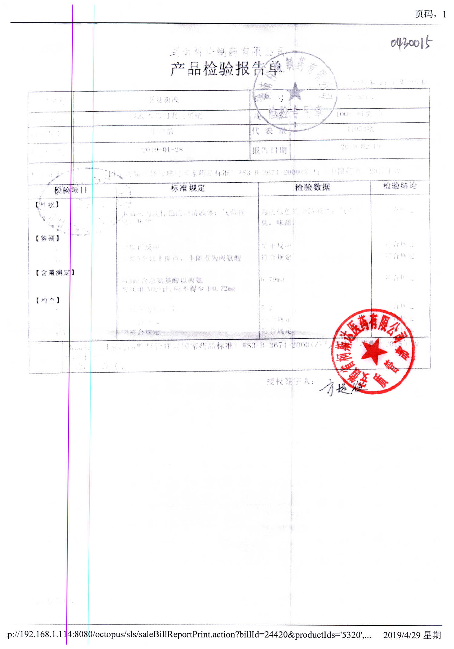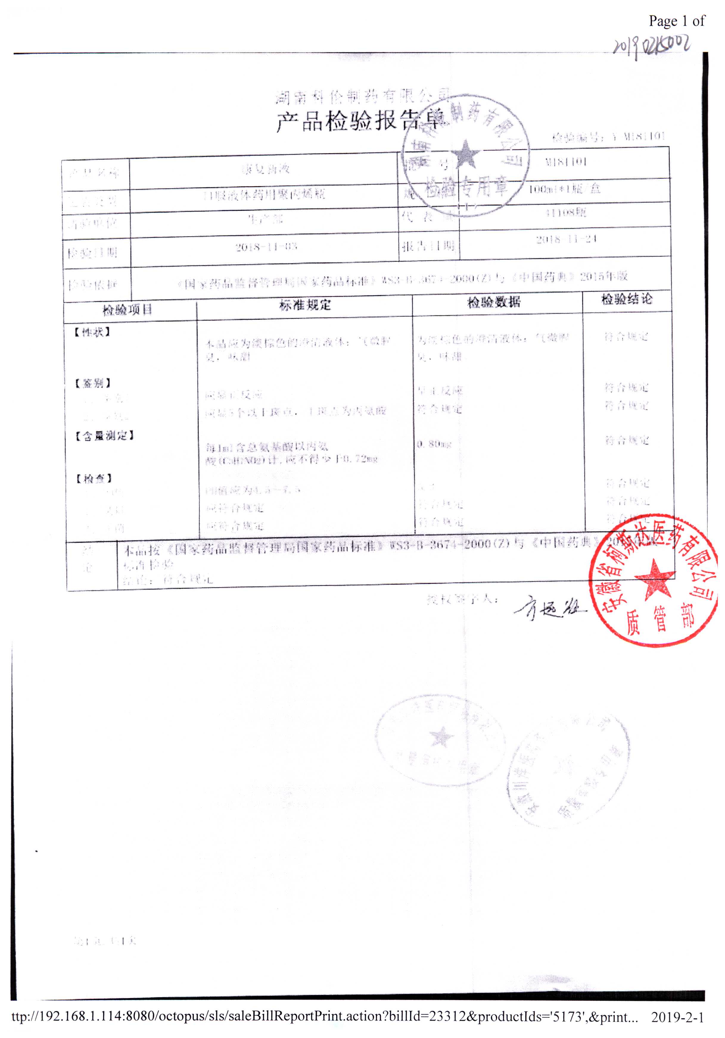 名称 | 规格 | 批号 | 药检报告 |