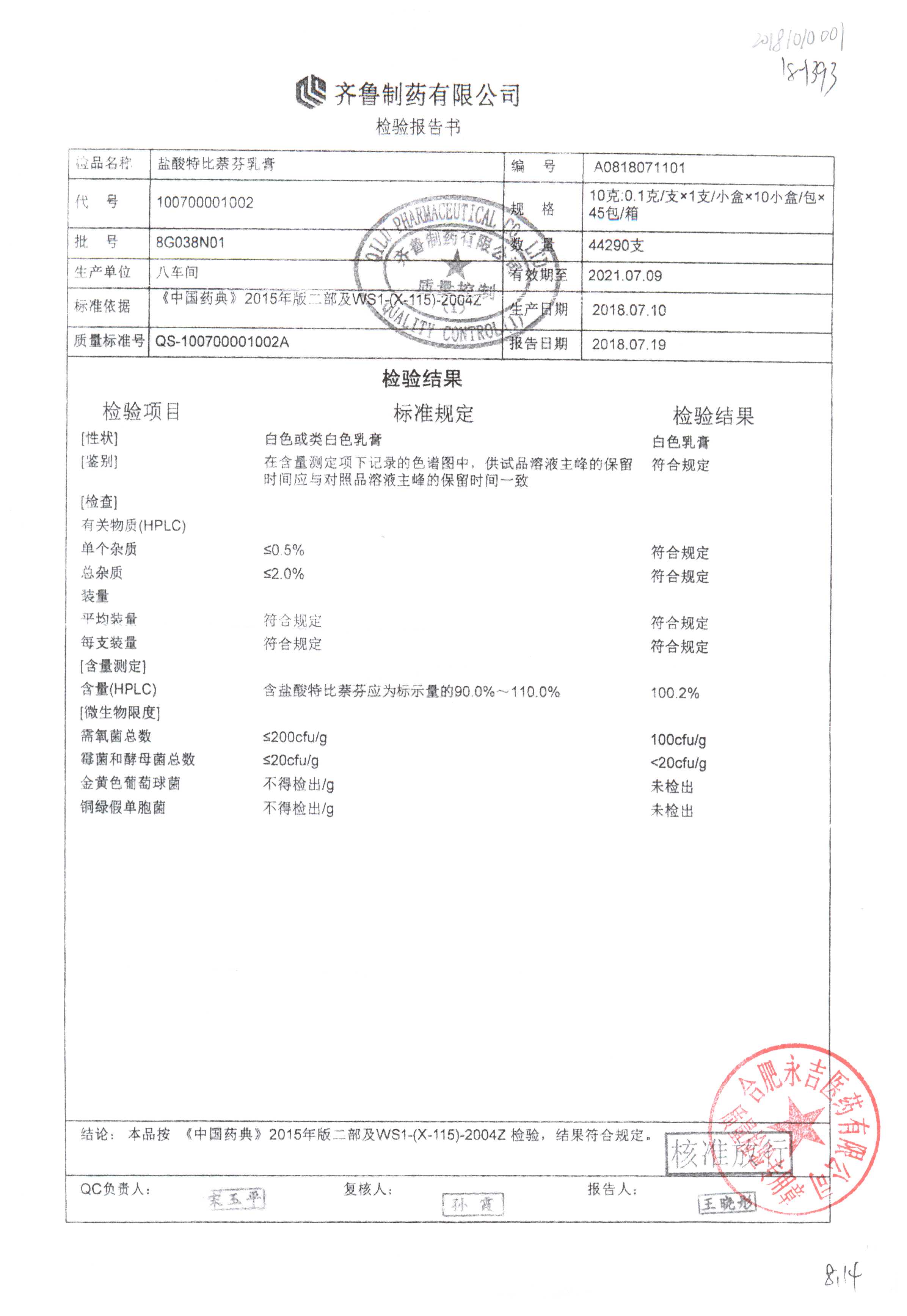 盐酸特比萘芬乳膏 | 10g:0.1g | 8G038N01 | 查看详情 |