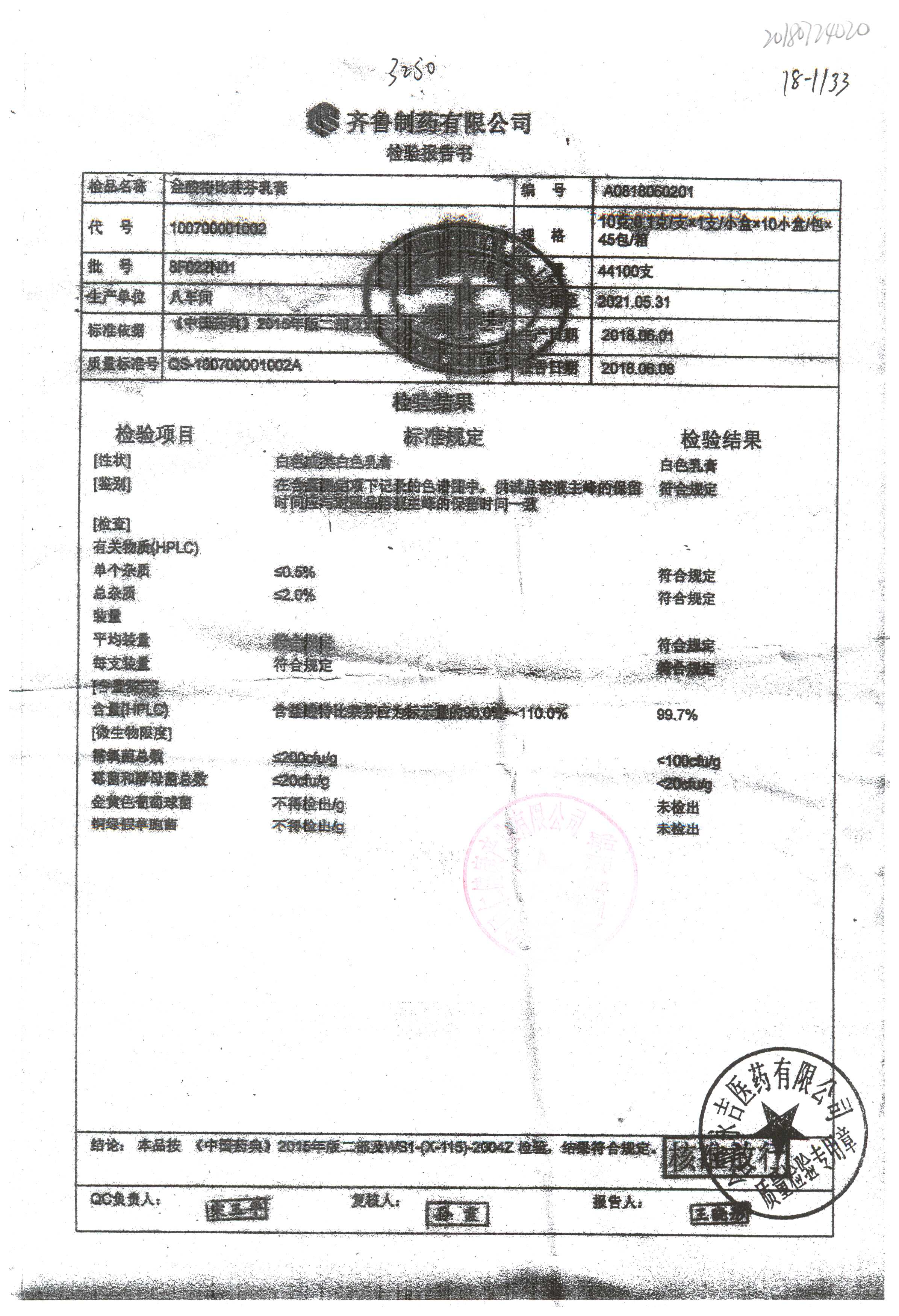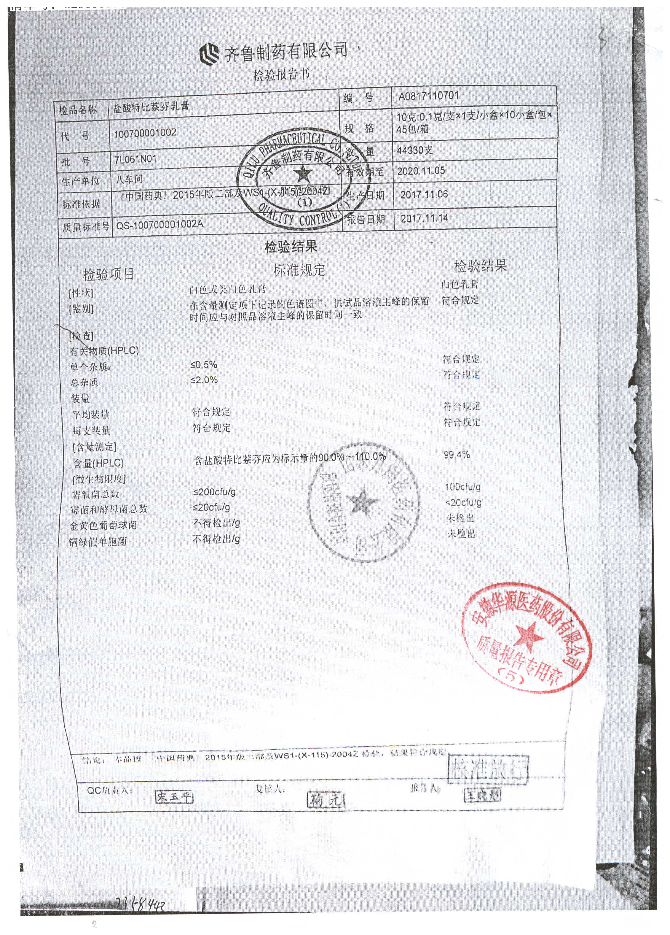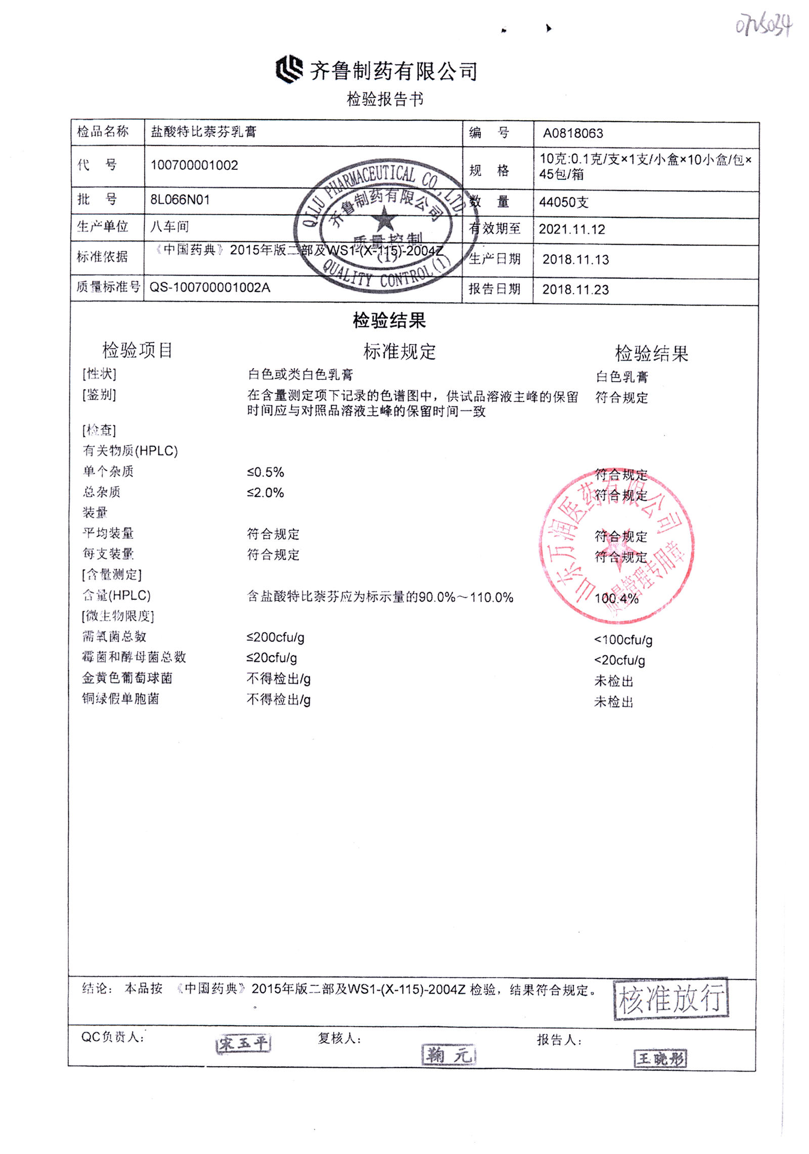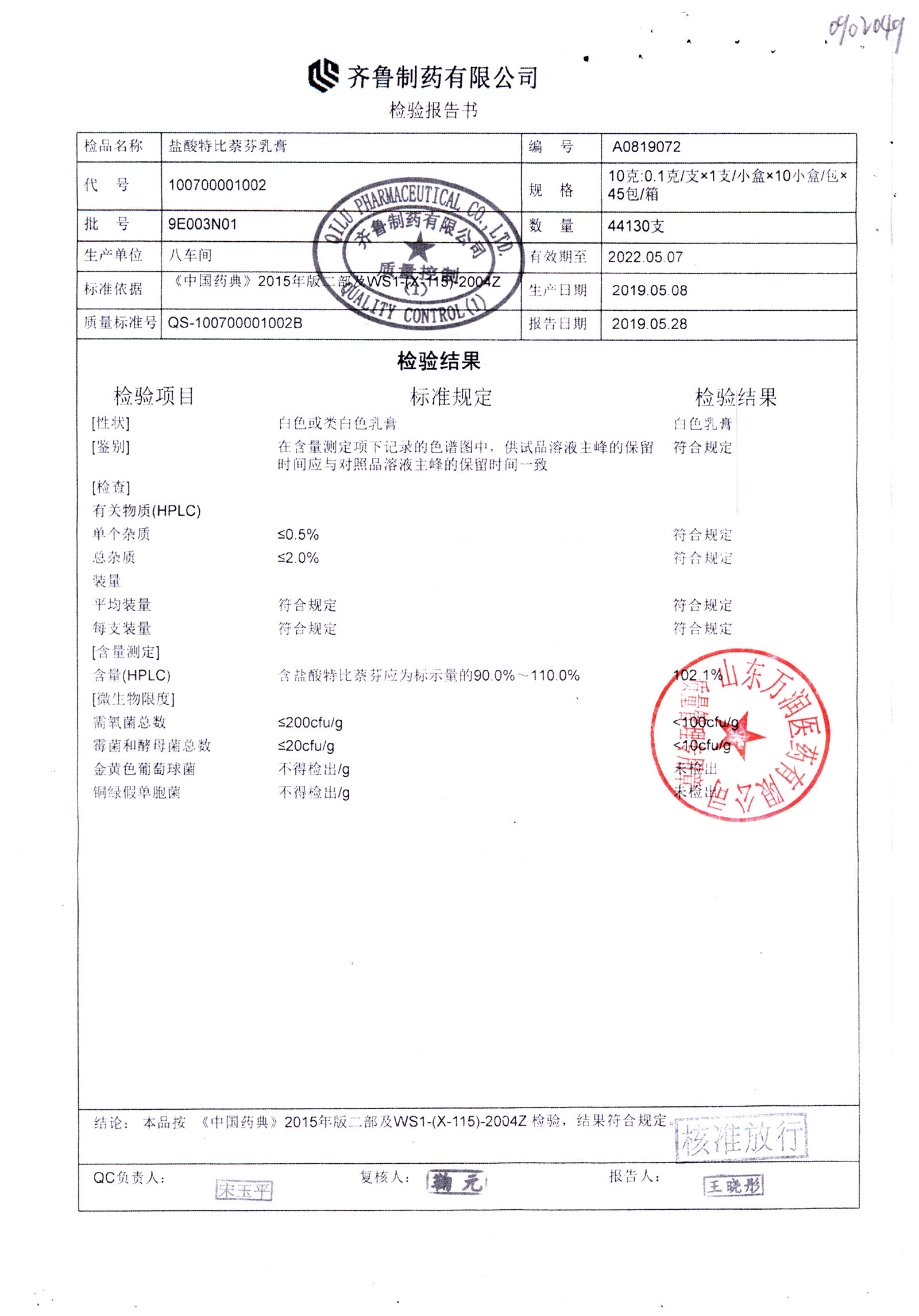 盐酸特比萘芬乳膏 | 10g:0.1g | 8L066N01 | 查看详情 |