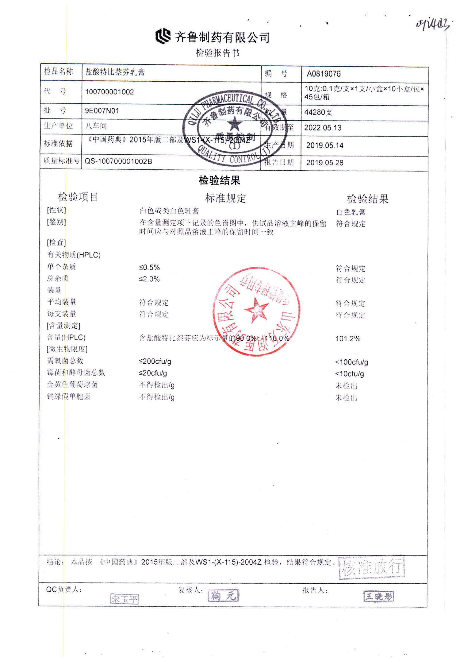 盐酸特比萘芬乳膏 | 10g:0.1g | 9E007N01 | 查看详情 |