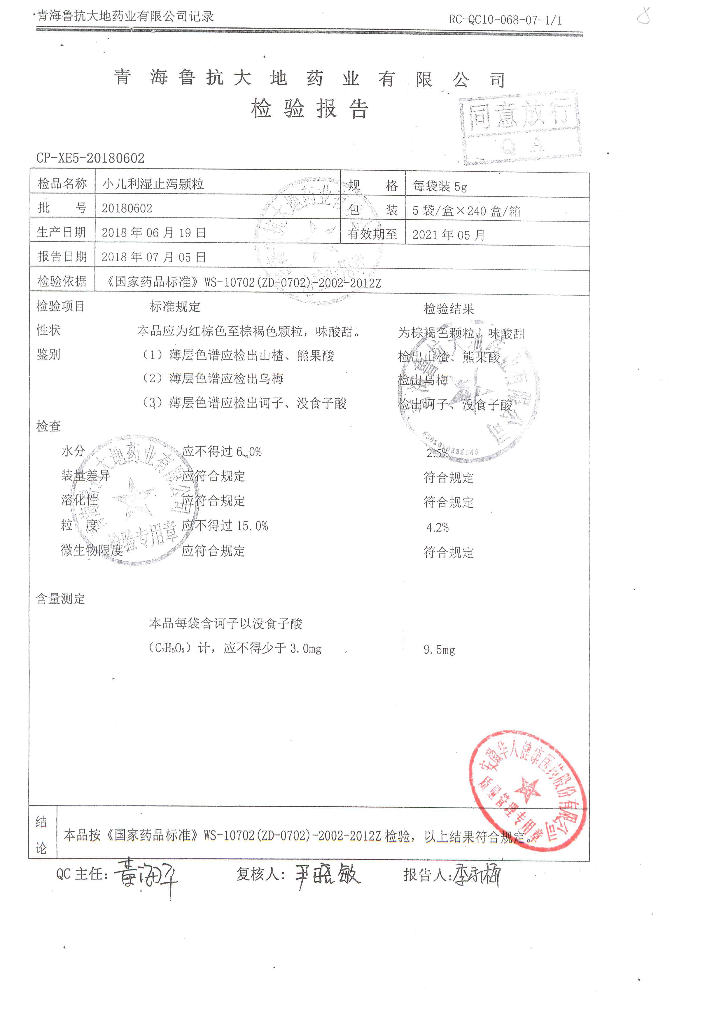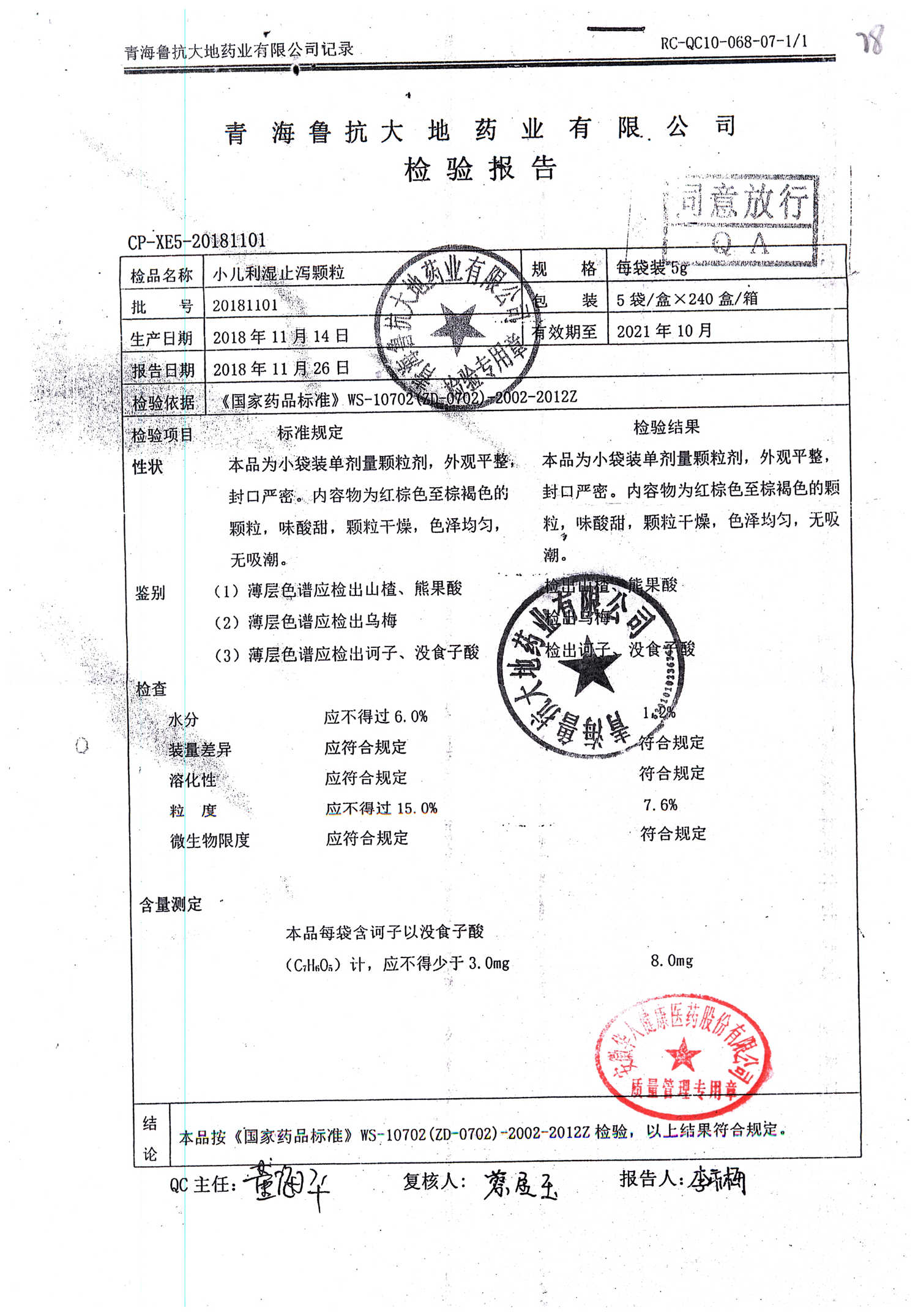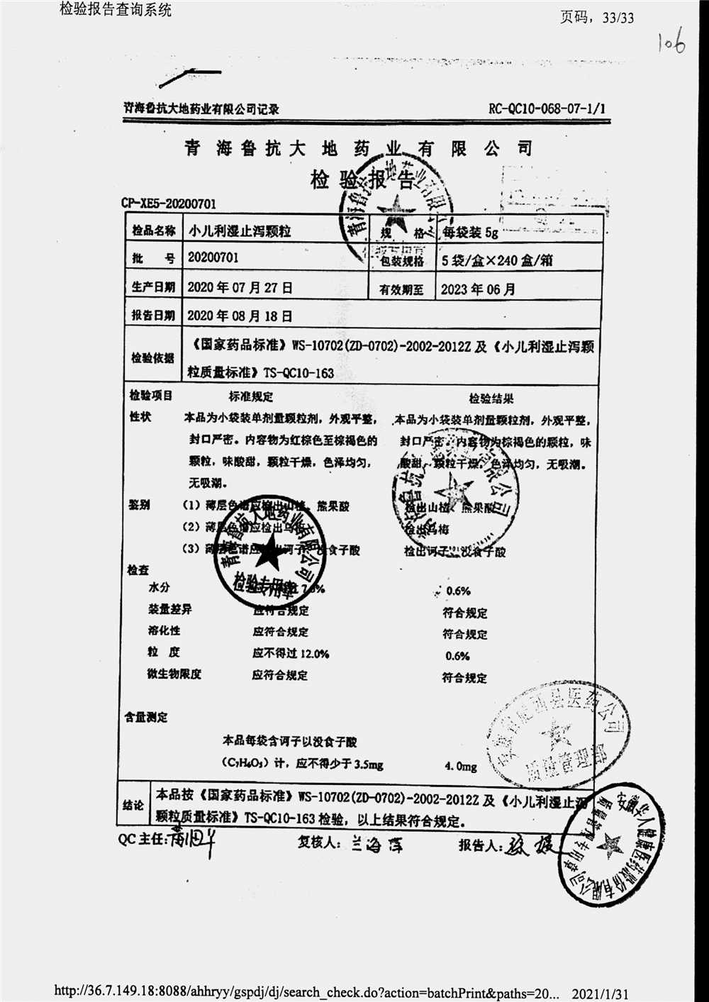 药检报告