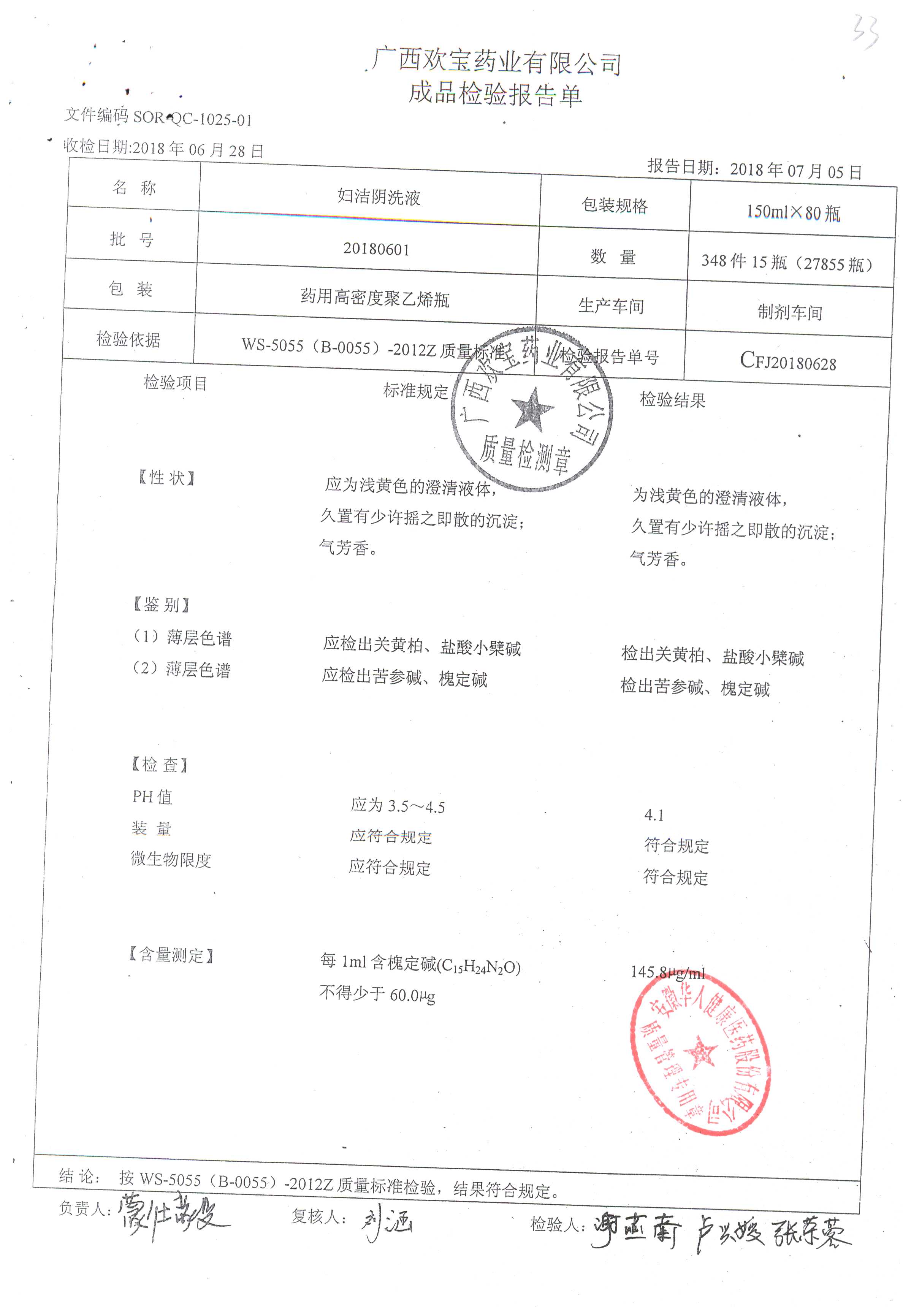 妇洁阴洗液 | 150ml | 20180602 | 查看详情 |