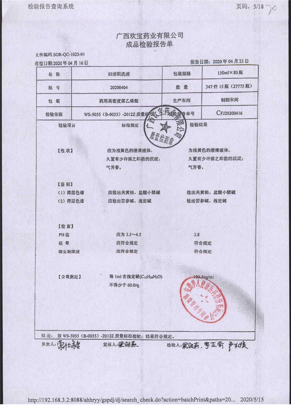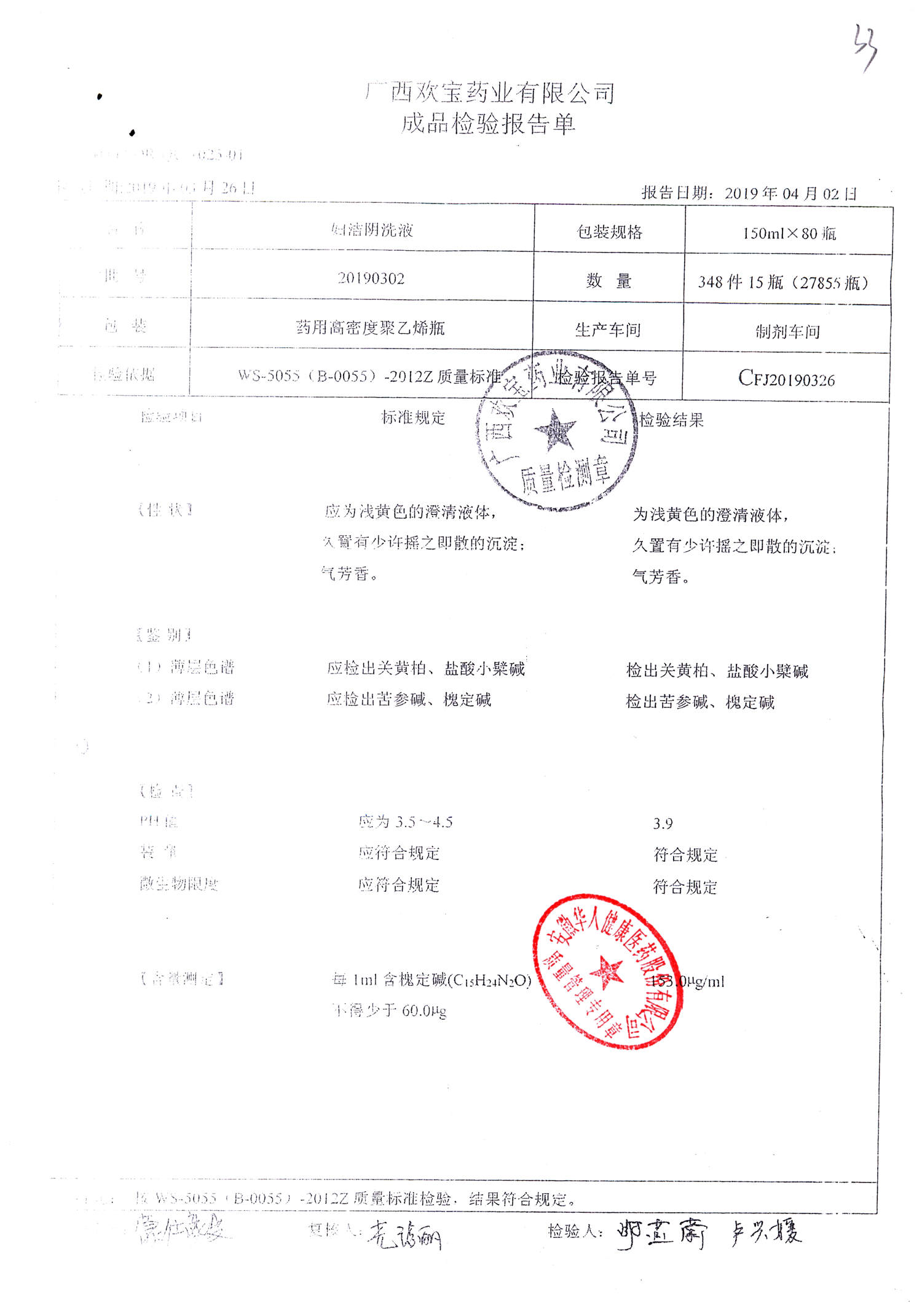 妇洁阴洗液 | 150ml | 20200404 | 查看详情 |