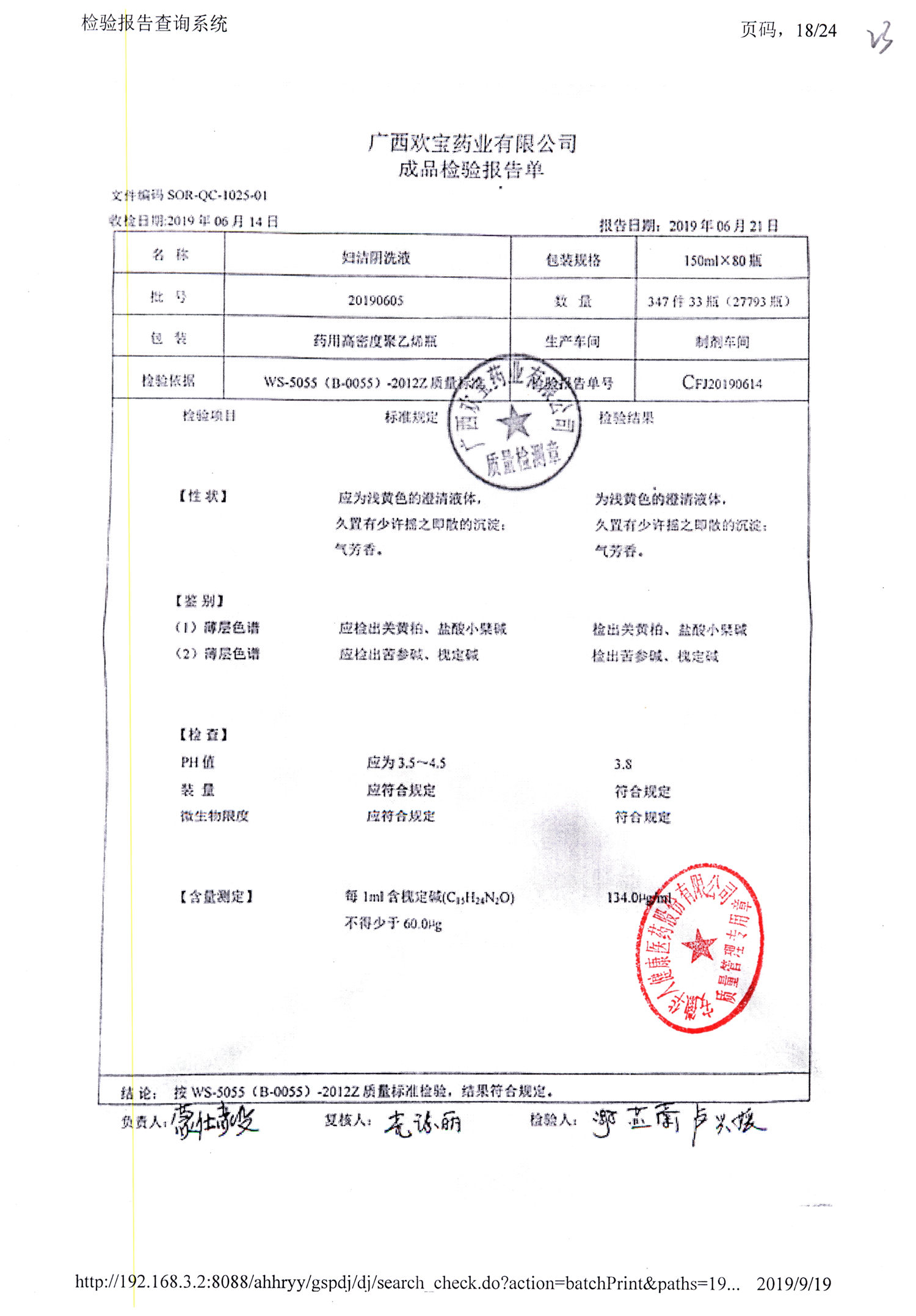妇洁阴洗液 | 150ml | 20190605 | 查看详情 |