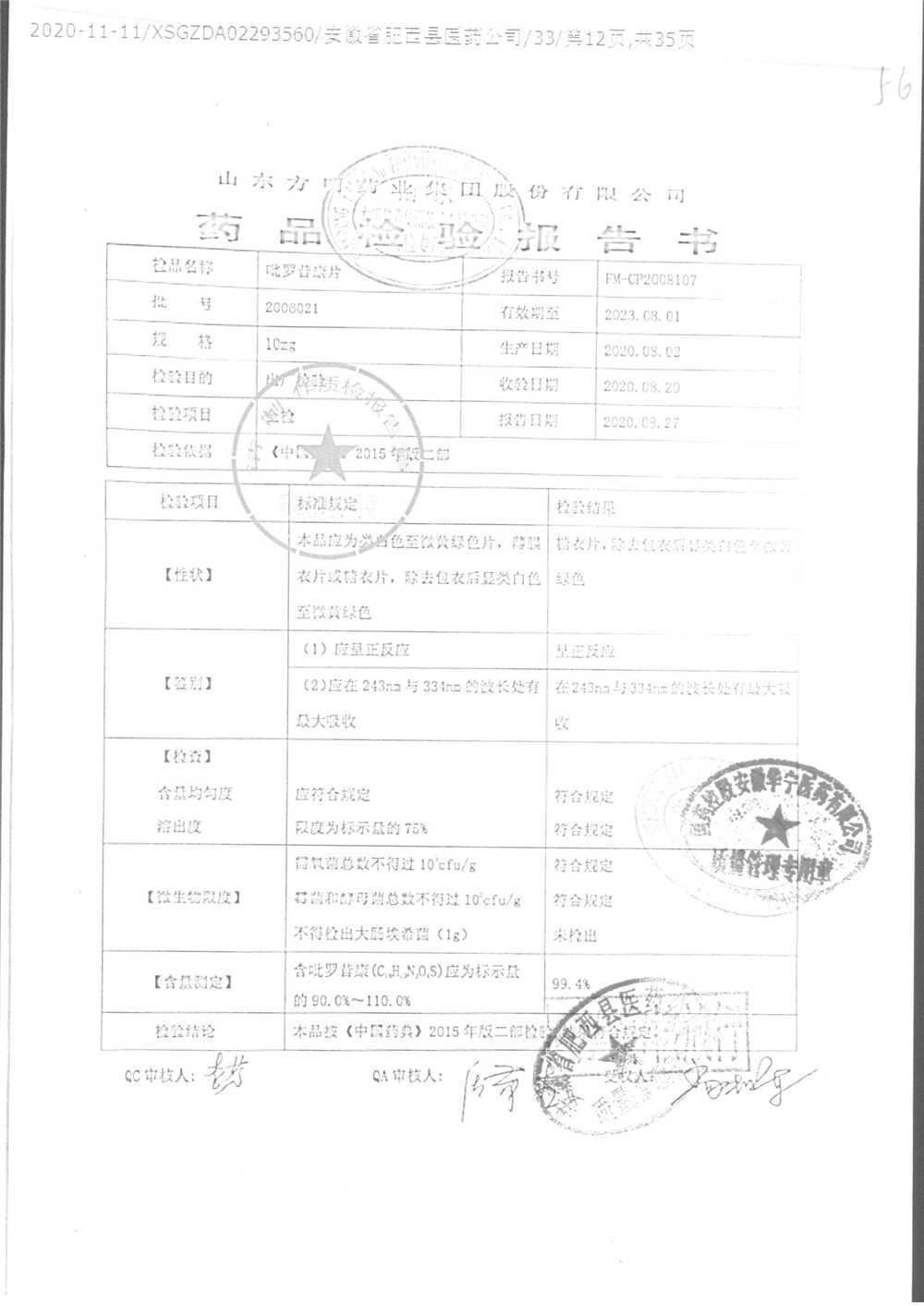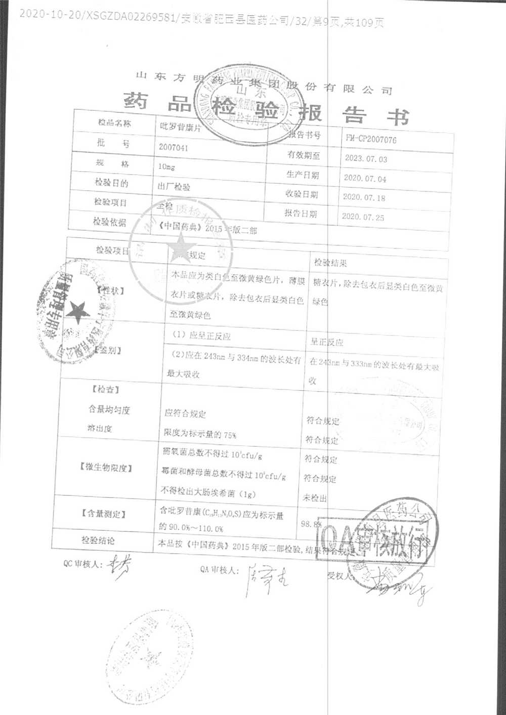 吡罗昔康片 | 10mg*100片 | 2008021 | 查看详情 |
