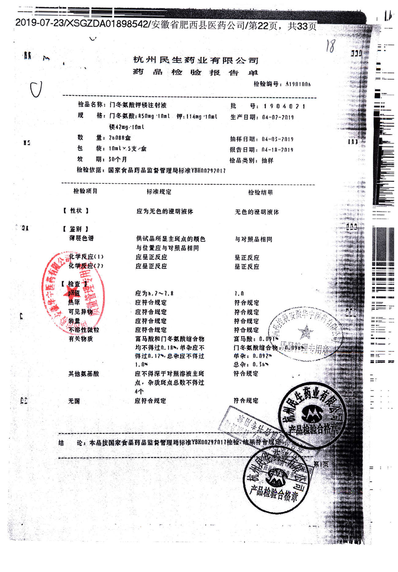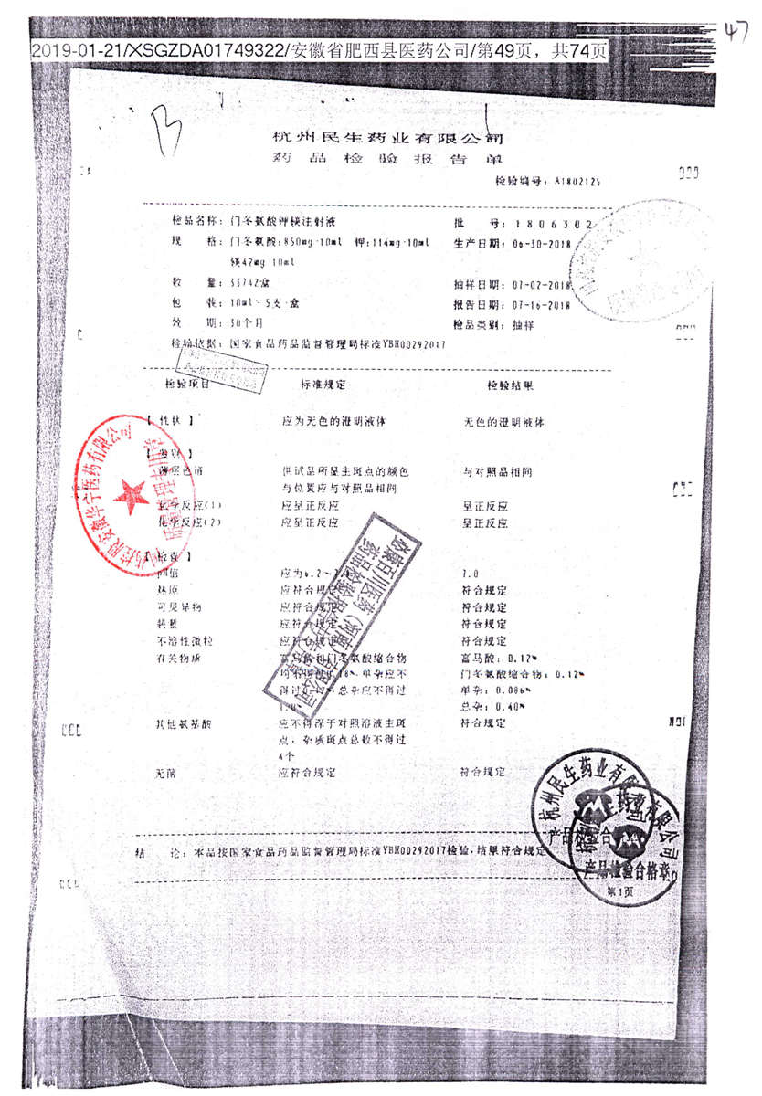 名称 | 规格 | 批号 | 药检报告 |