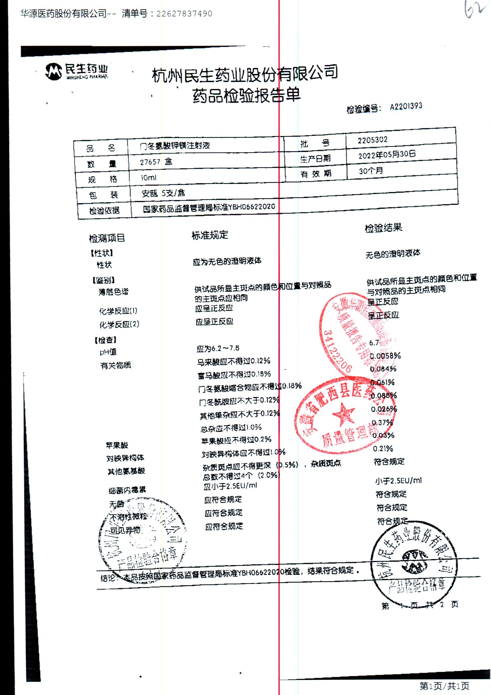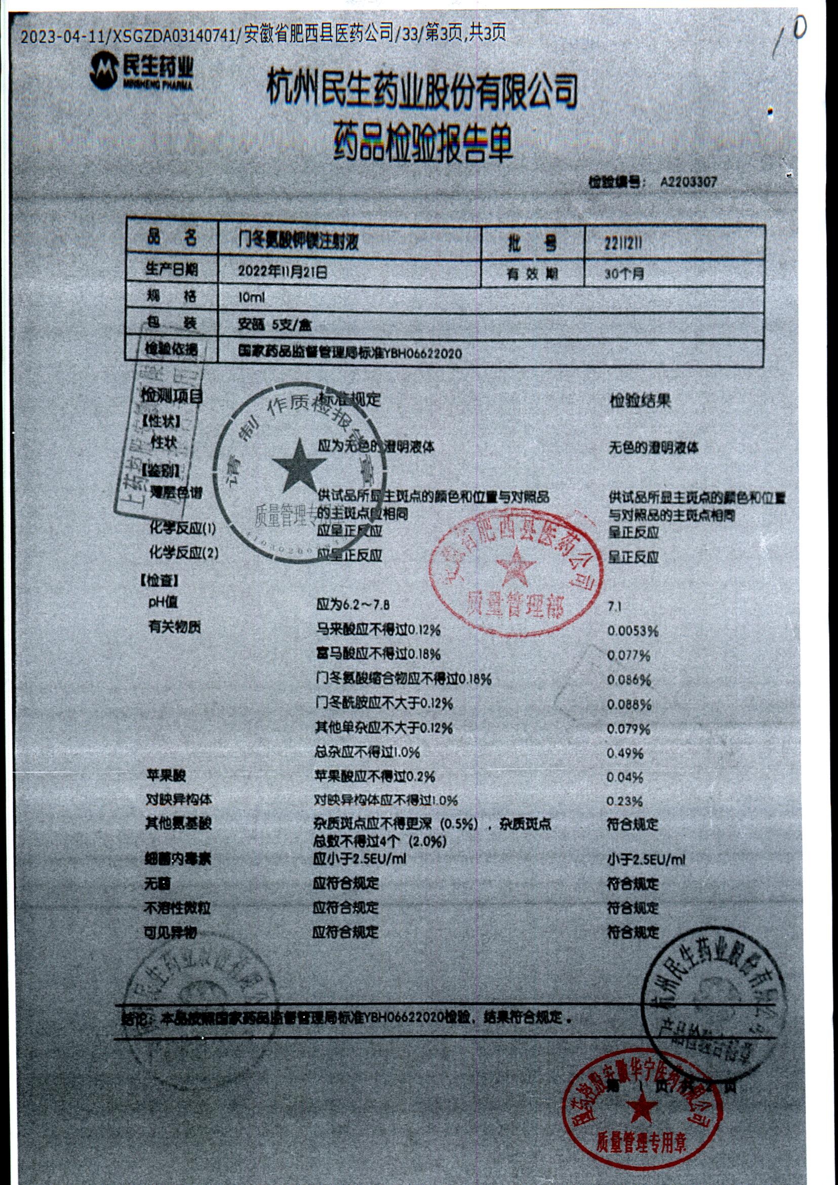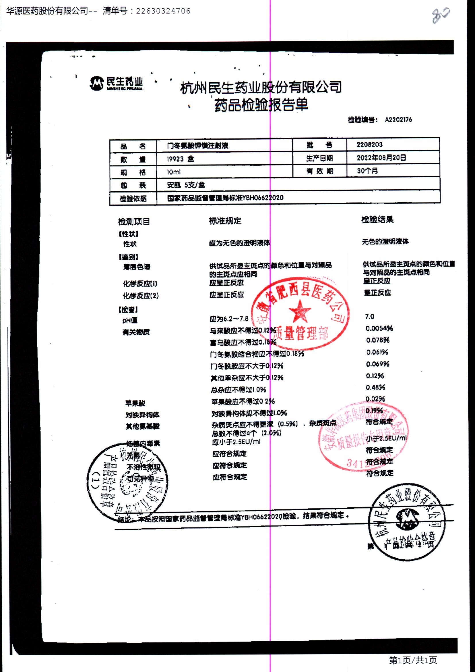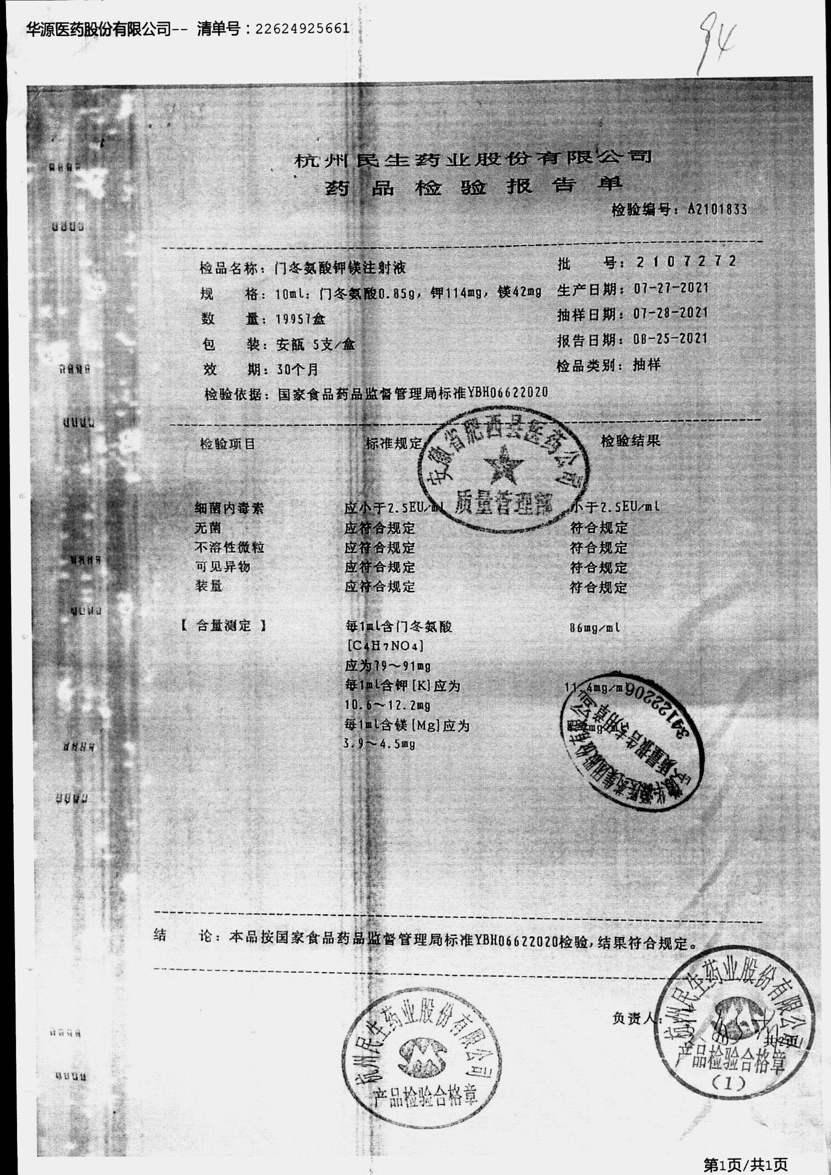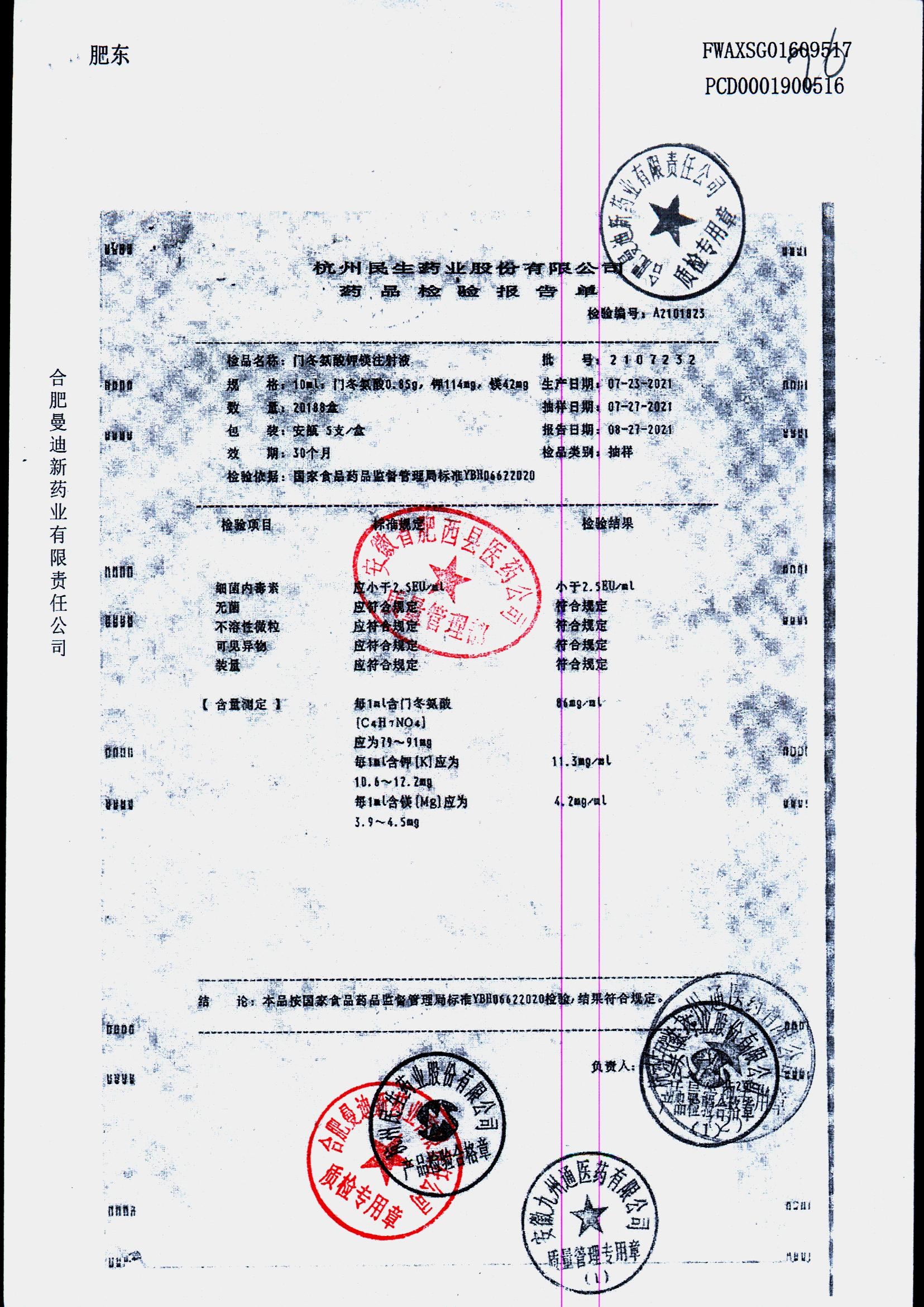 门冬氨酸钾镁注射液 | 10ml | 2211211/1 | 查看详情 |