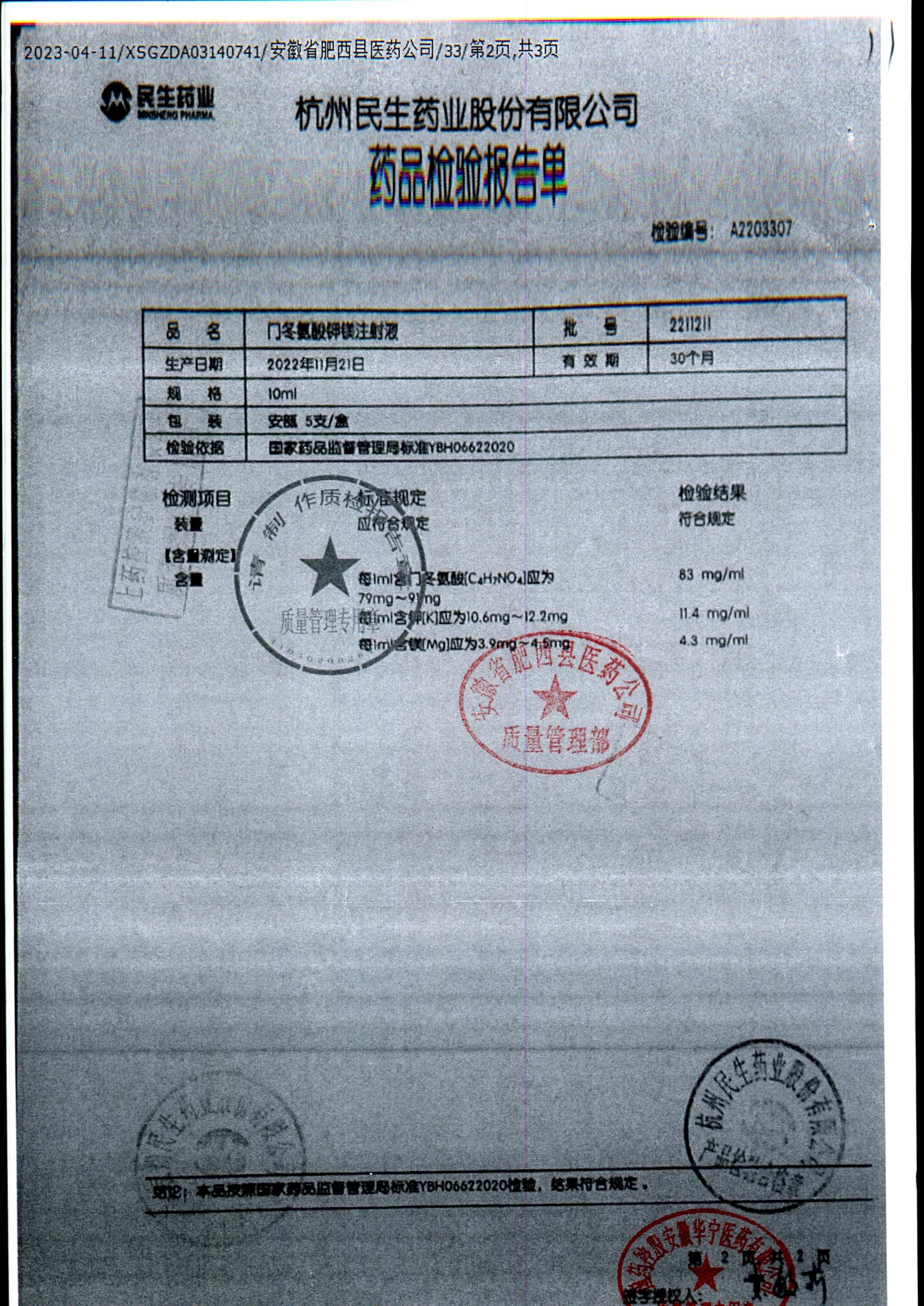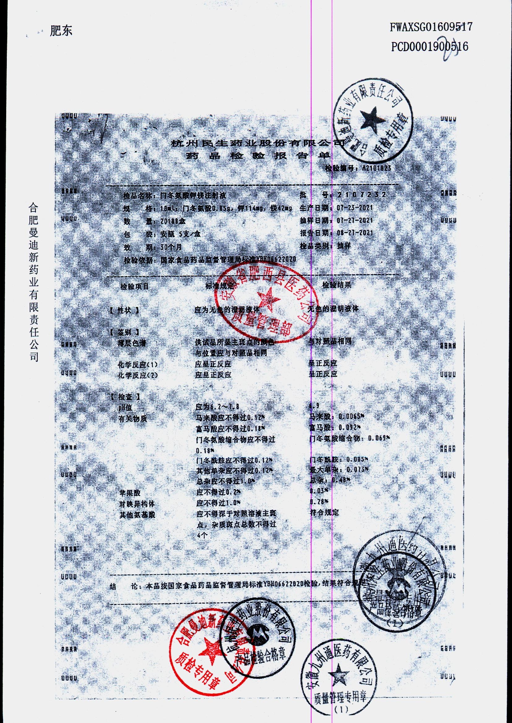 门冬氨酸钾镁注射液 | 10ml | 2211211/2 | 查看详情 |