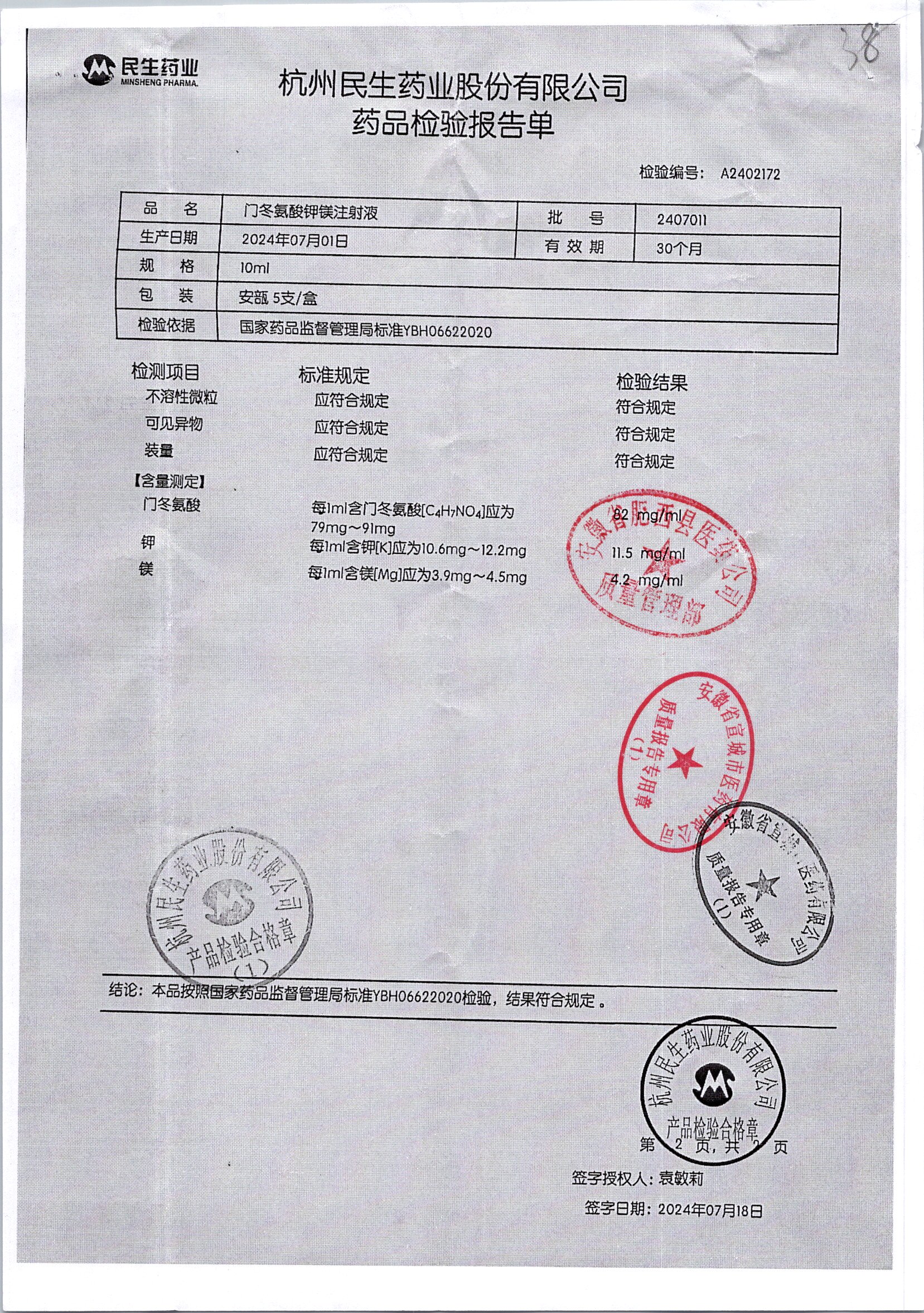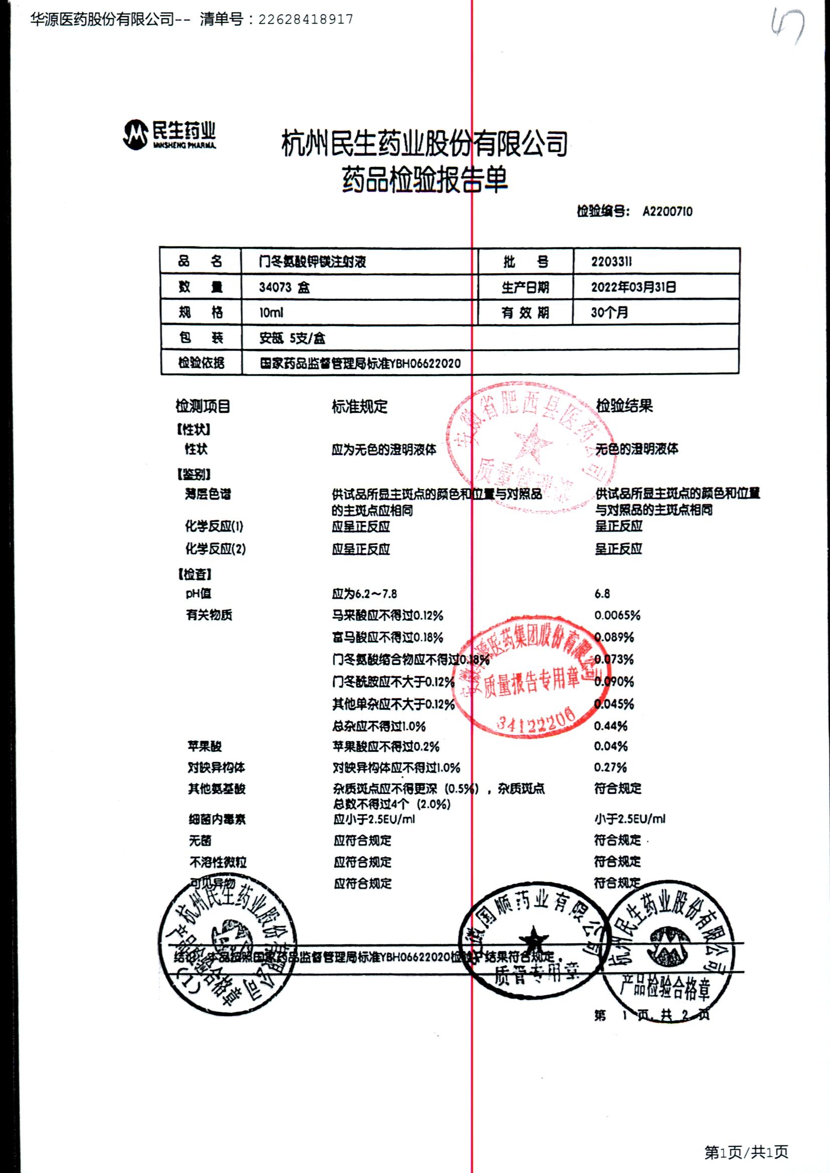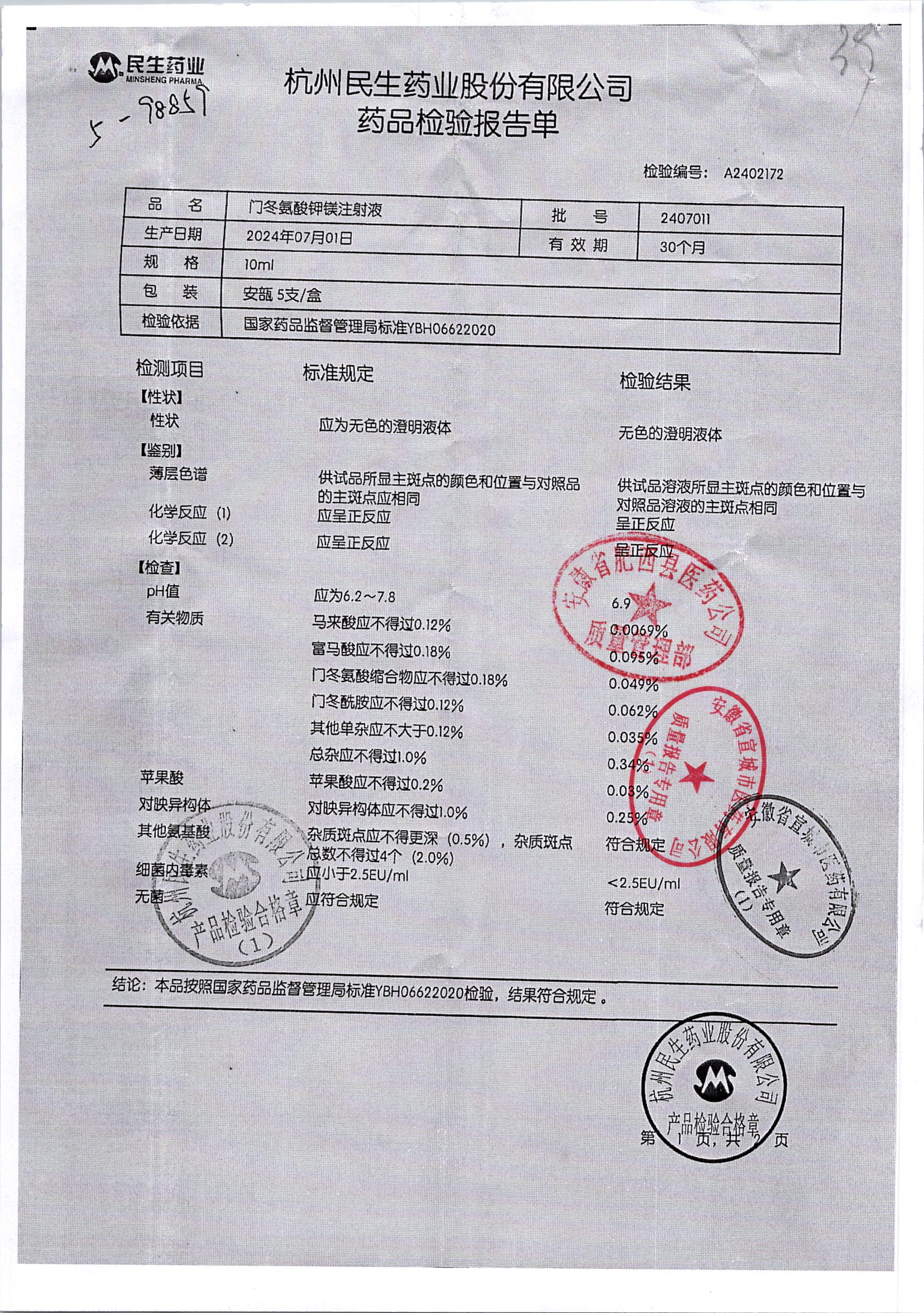 门冬氨酸钾镁注射液 | 10ml | 2205302/2 | 查看详情 |