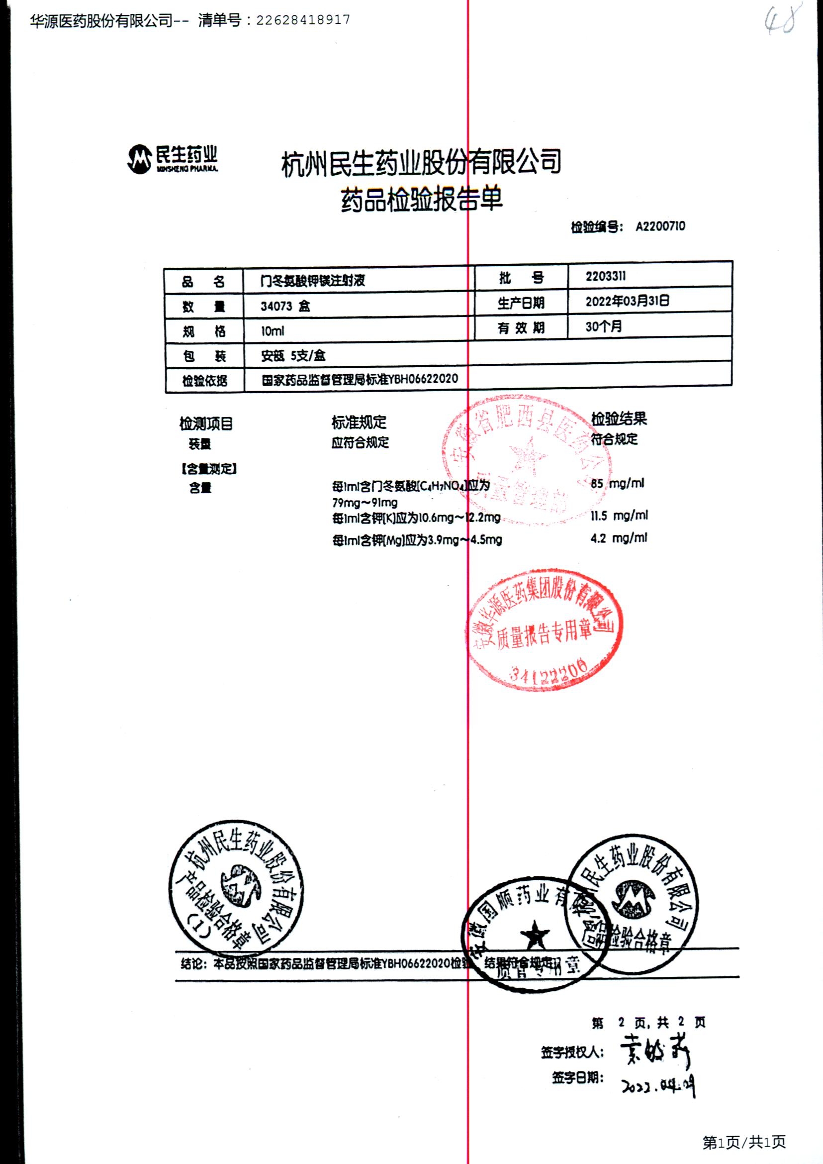 门冬氨酸钾镁注射液 | 10ml | 2208203/1 | 查看详情 |