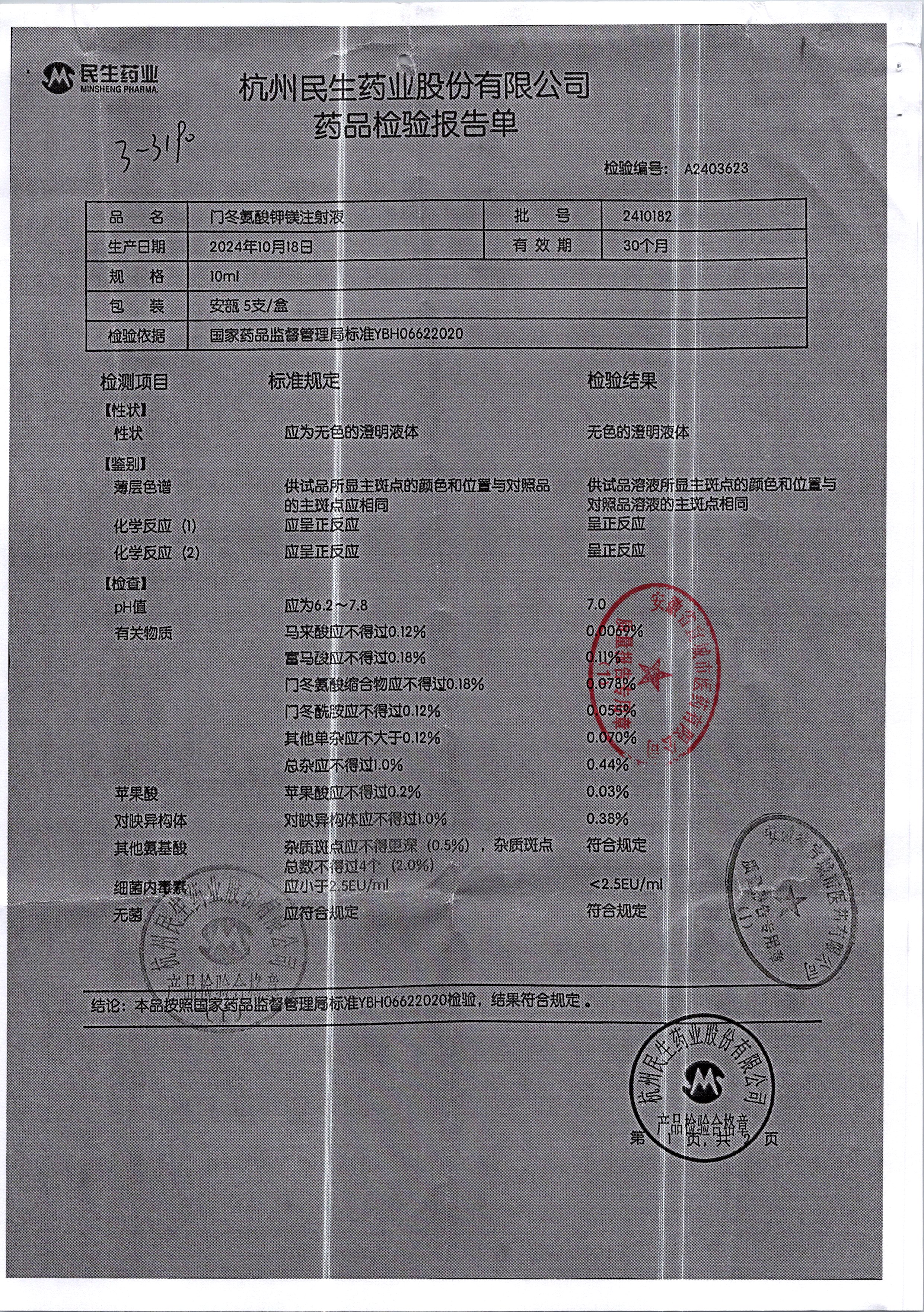 门冬氨酸钾镁注射液 | 10ml | 2407011/2 | 查看详情 |