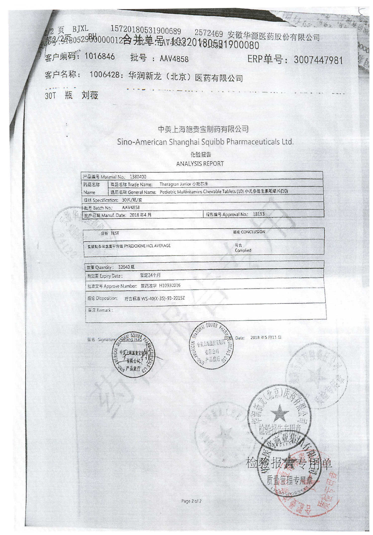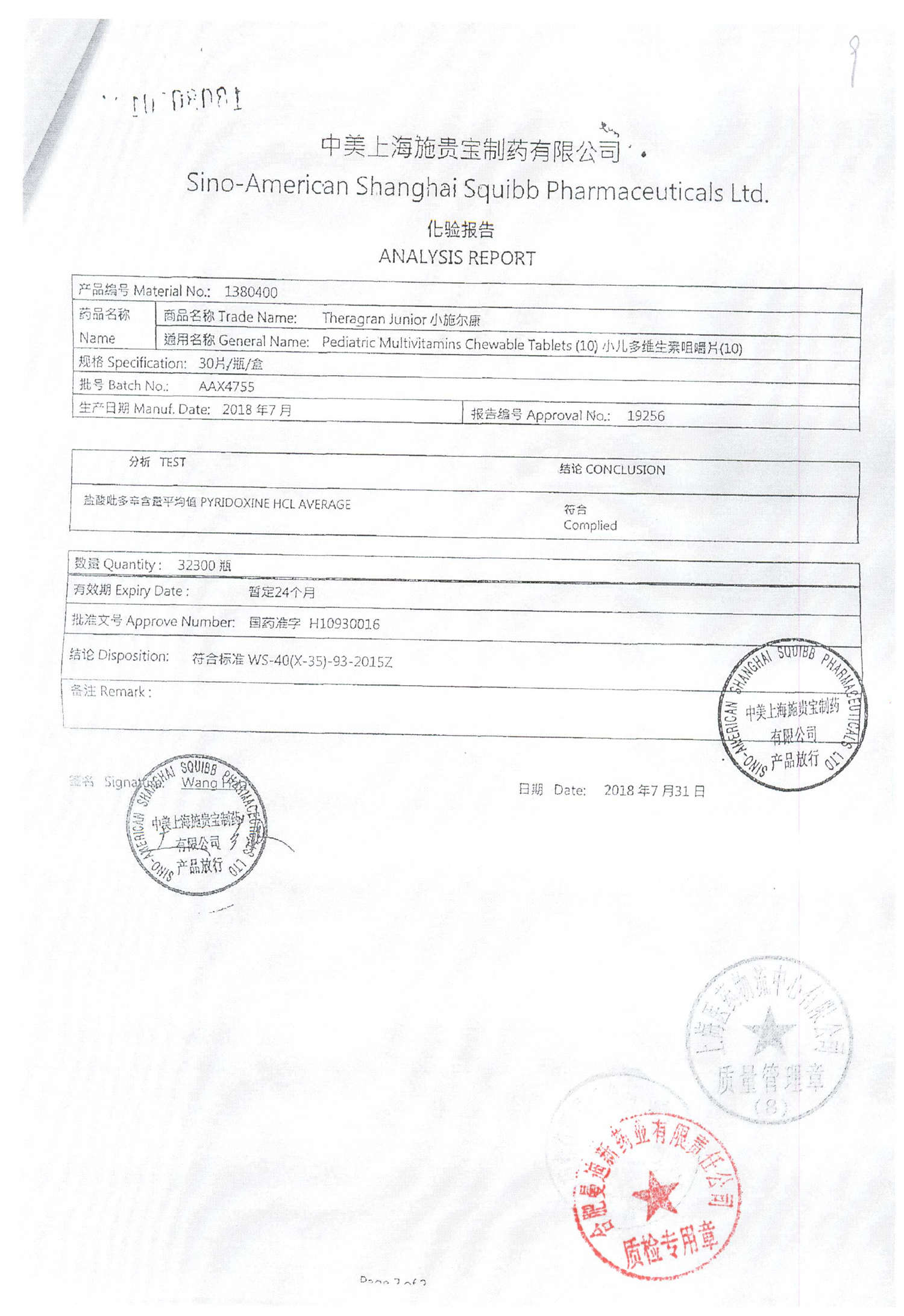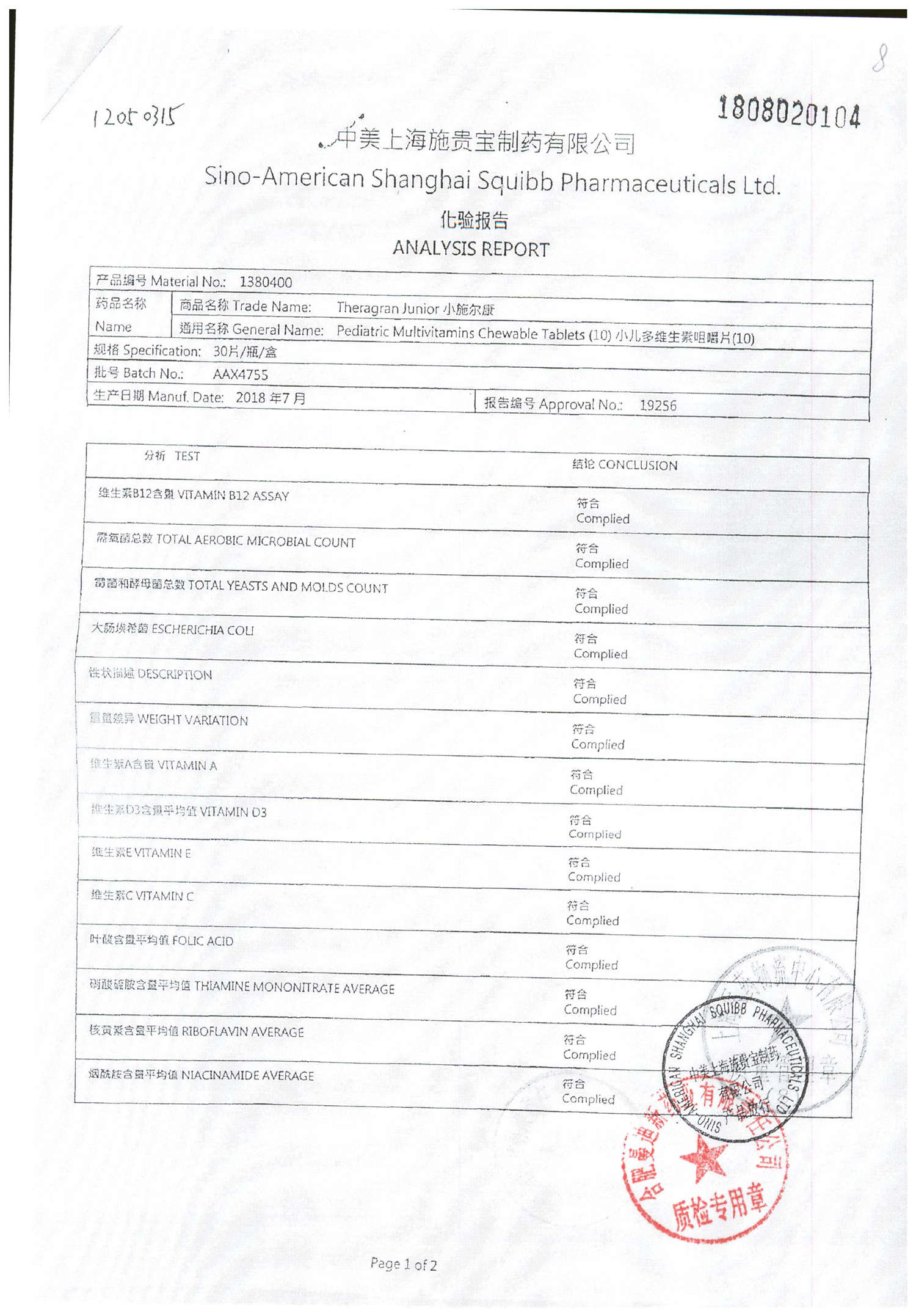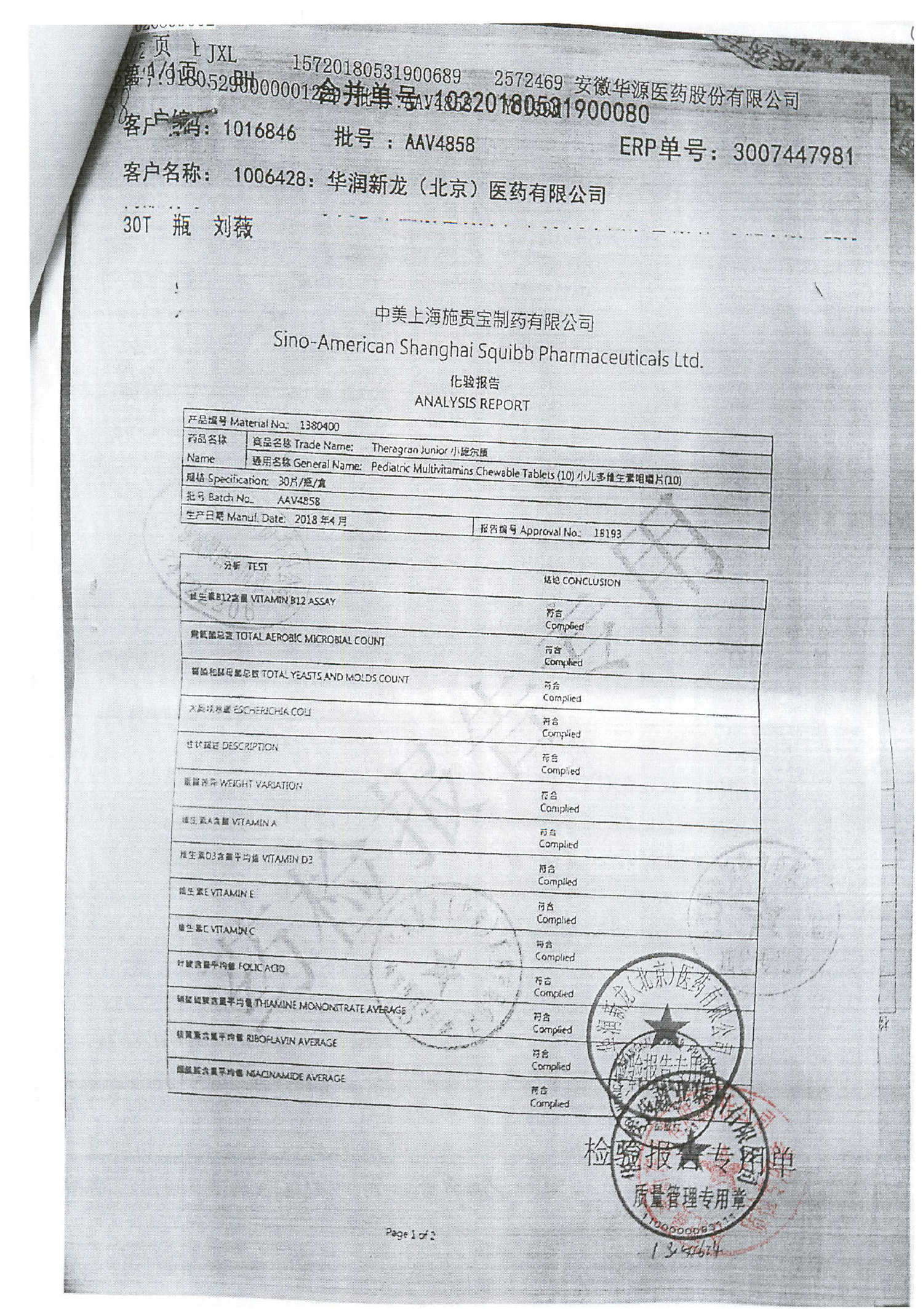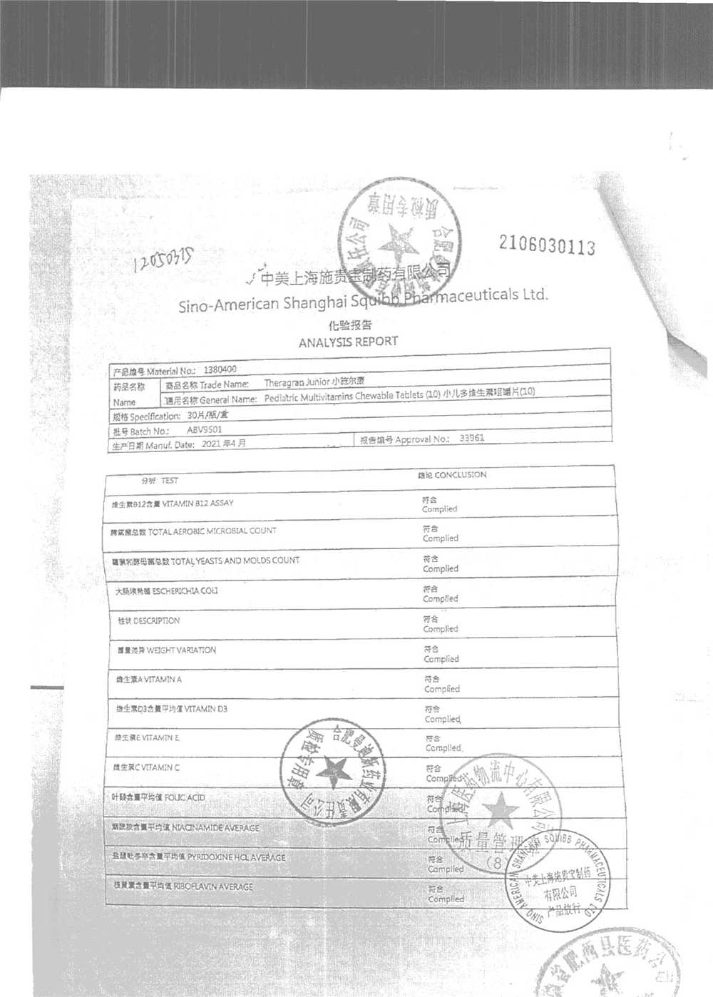 小儿多维生素咀嚼片 | 30片 | AAV4858(2/2) | 查看详情 |