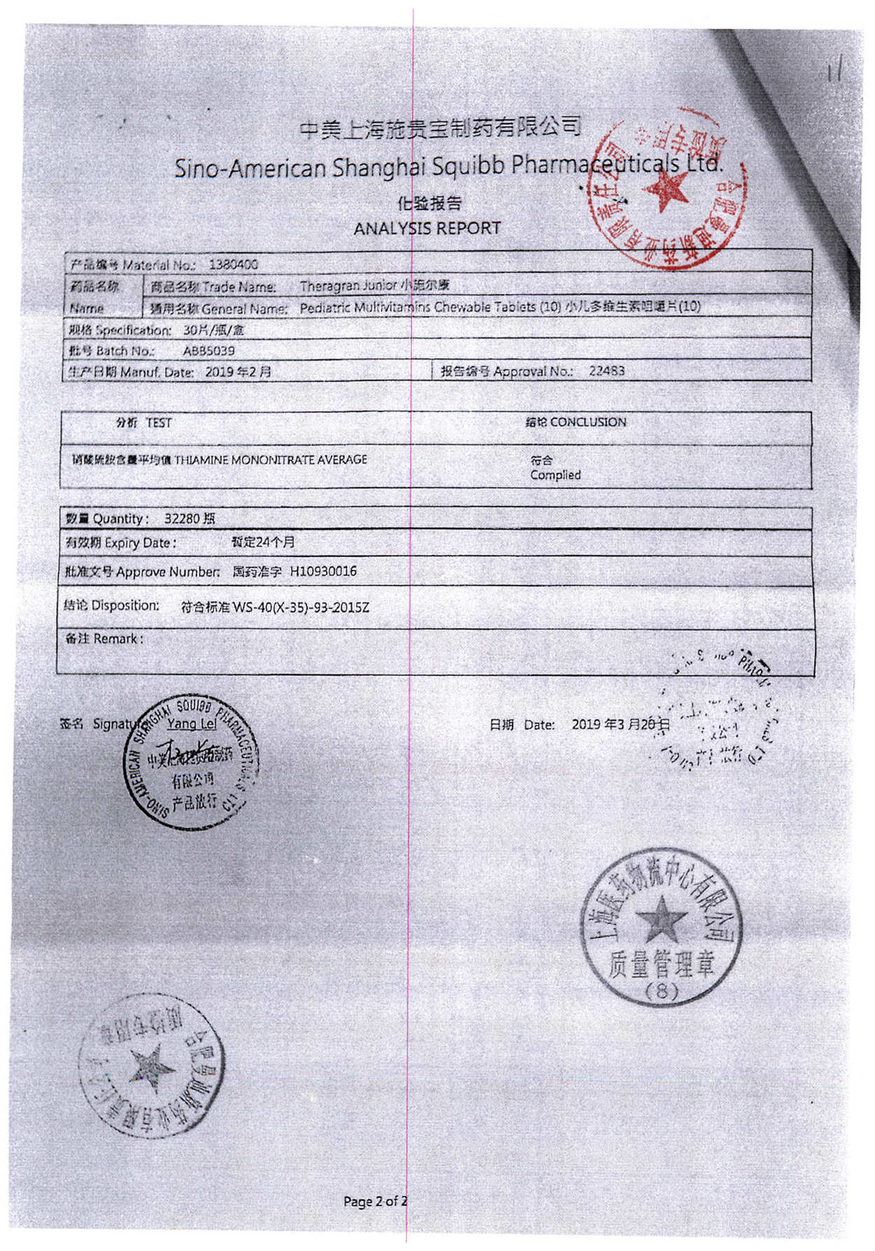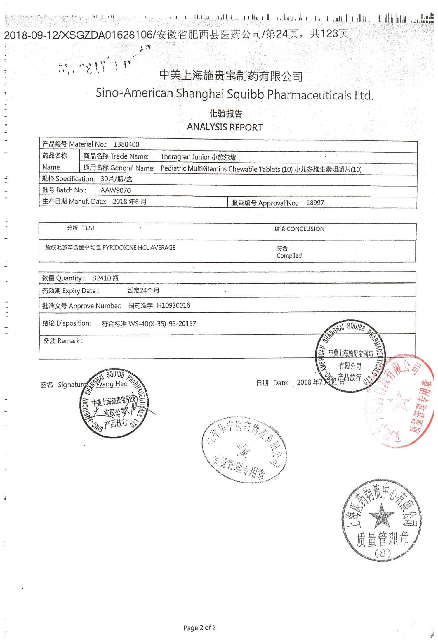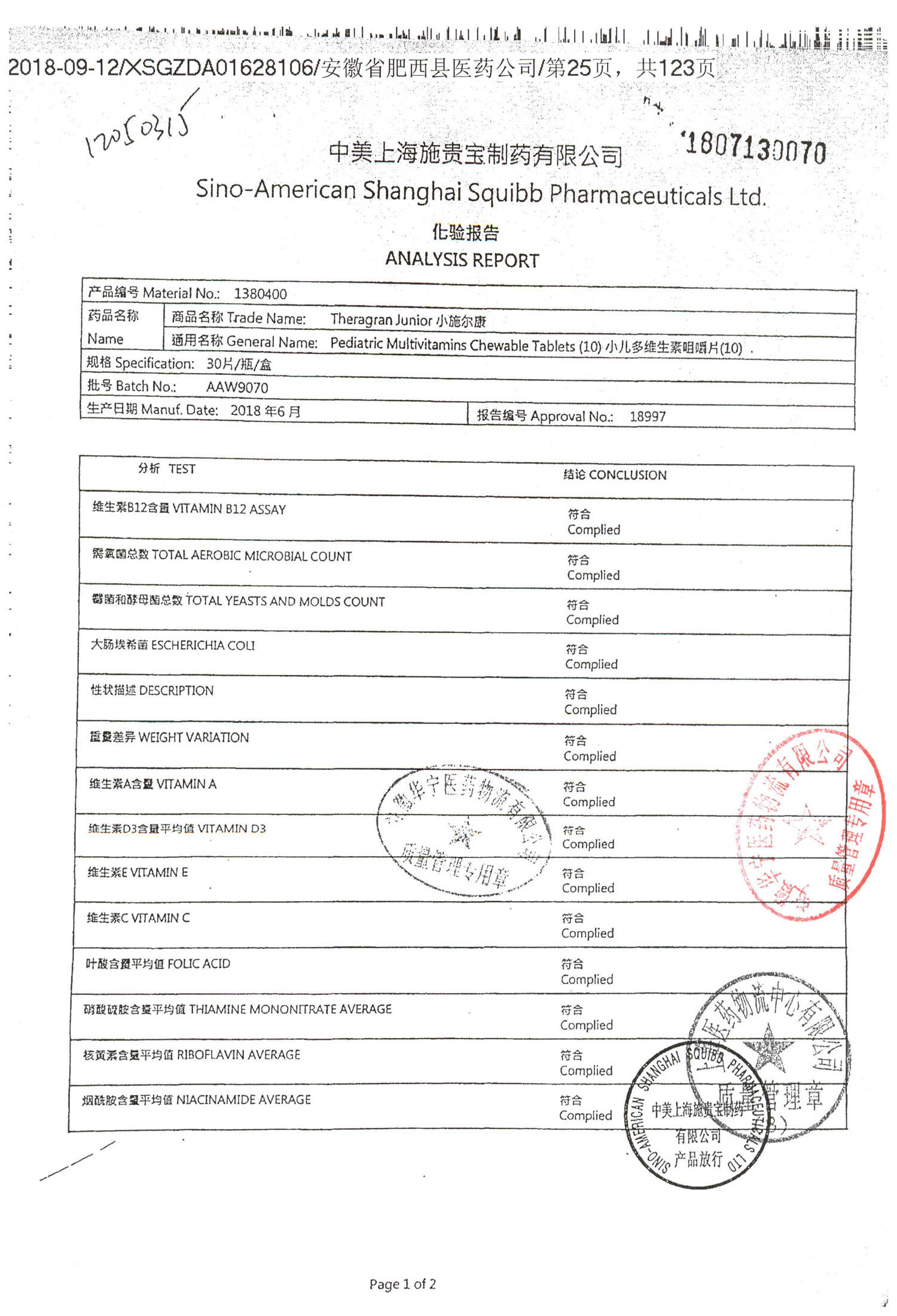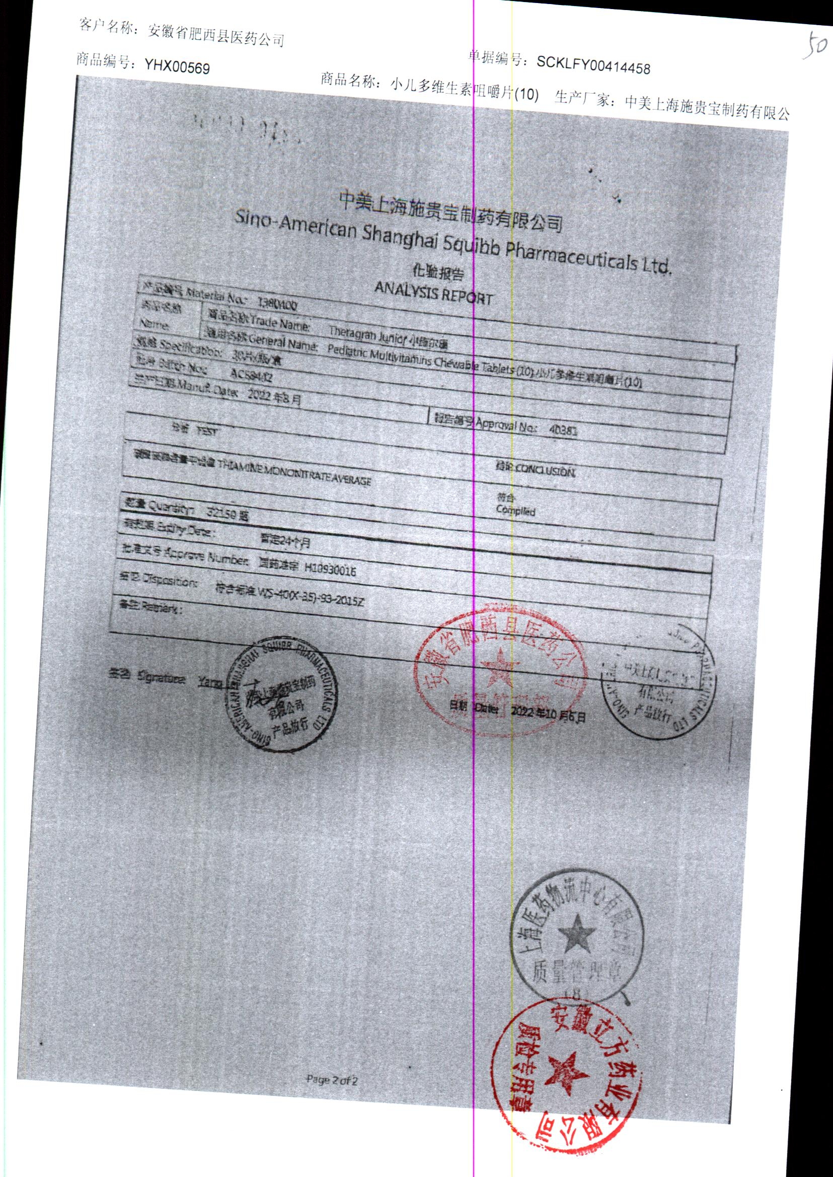 名称 | 规格 | 批号 | 药检报告 |
