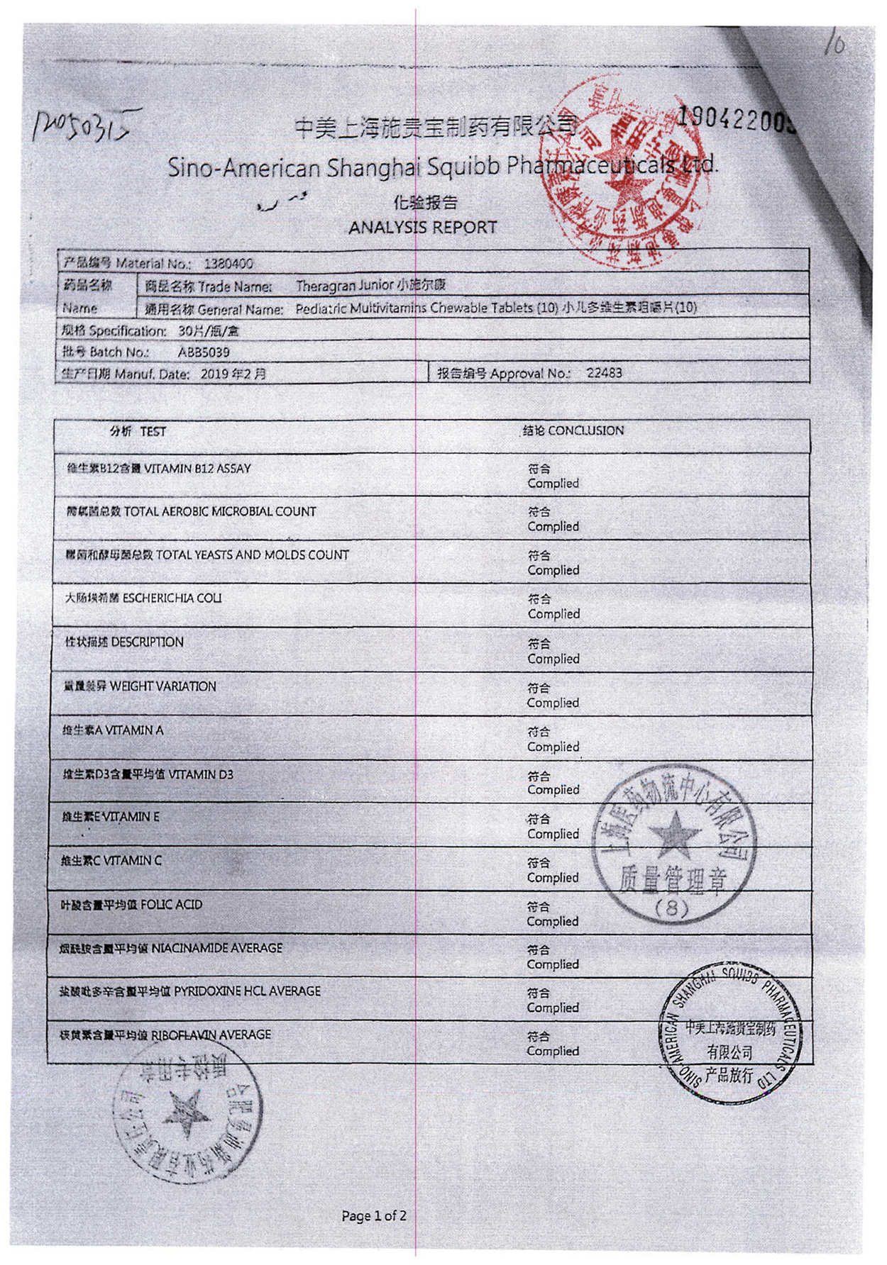 小儿多维生素咀嚼片 | 30片 | ABB5039(2/2) | 查看详情 |