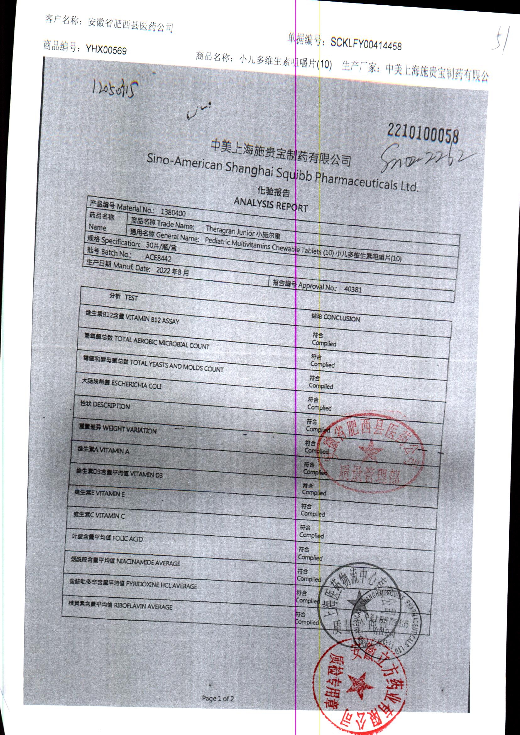 小儿多维生素咀嚼片 | 30片 | ACEB442/2 | 查看详情 |