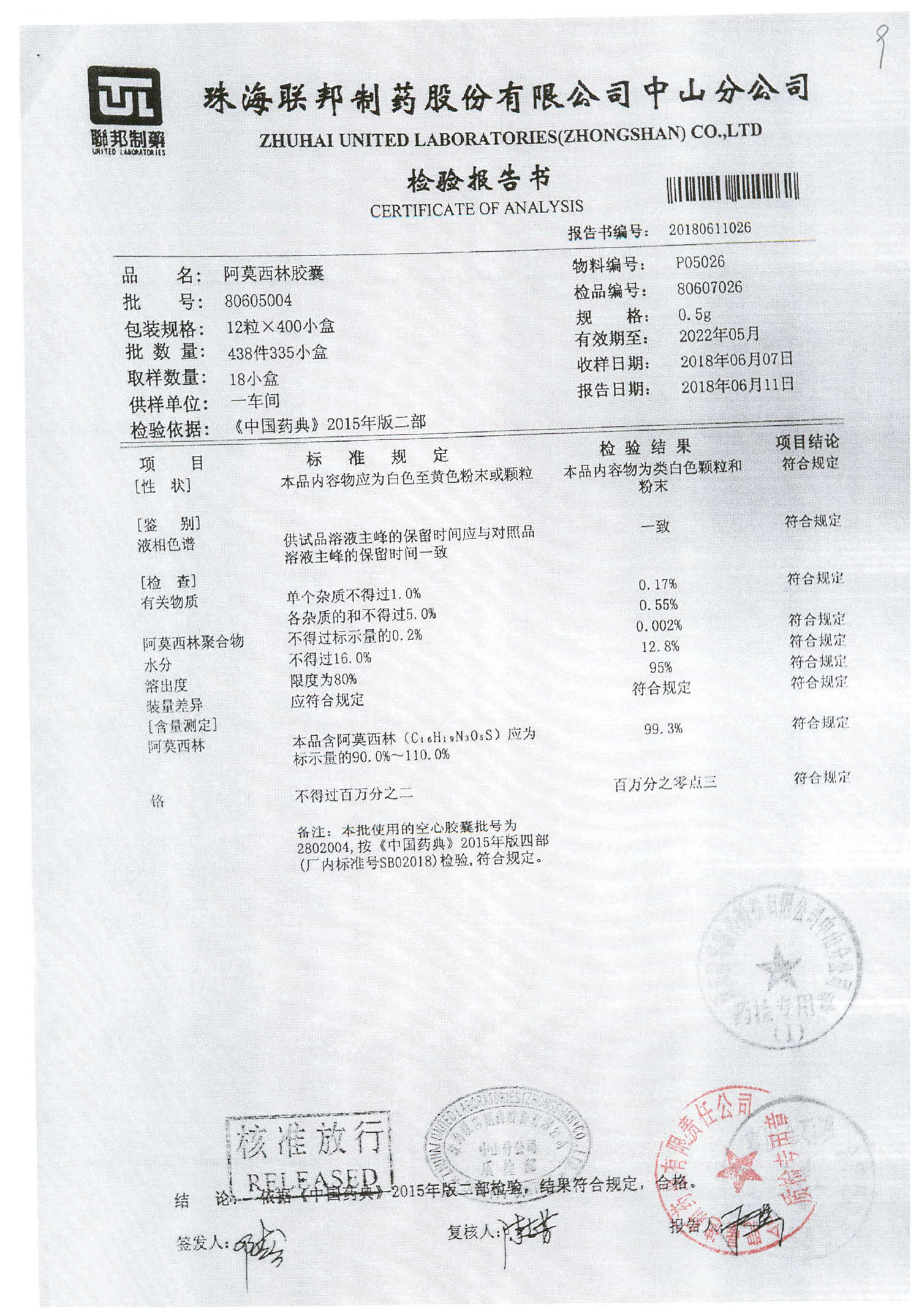 名称 | 规格 | 批号 | 药检报告 |