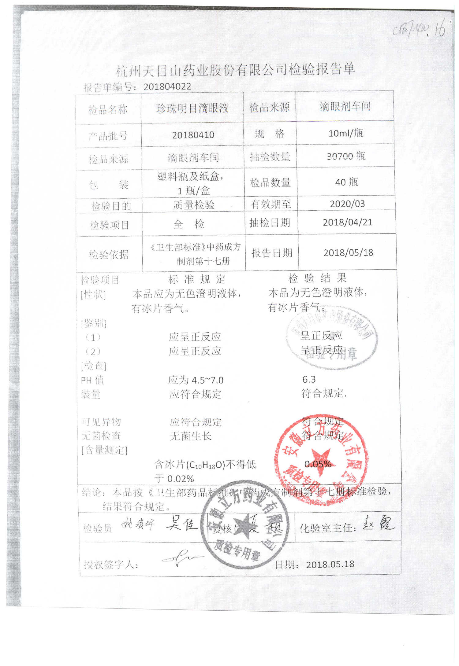珍珠明目滴眼液 | 10ml | 20180406 | 查看详情 |