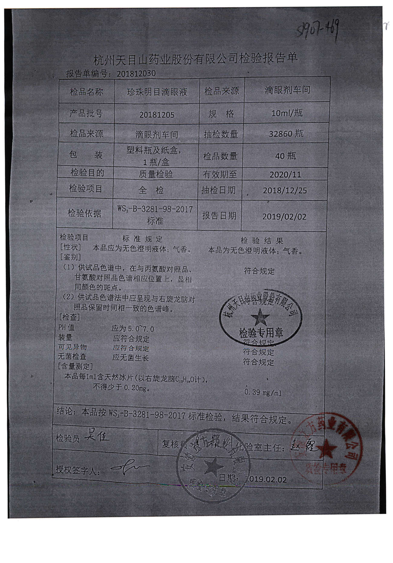 珍珠明目滴眼液 | 10ml | 20181205 | 查看详情 |