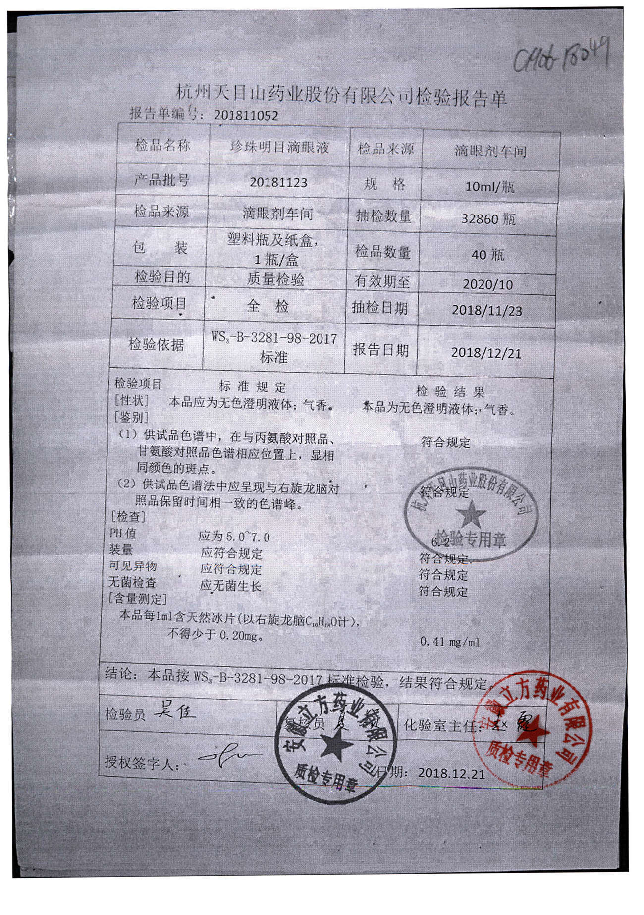 珍珠明目滴眼液 | 10ml | 20181123 | 查看详情 |