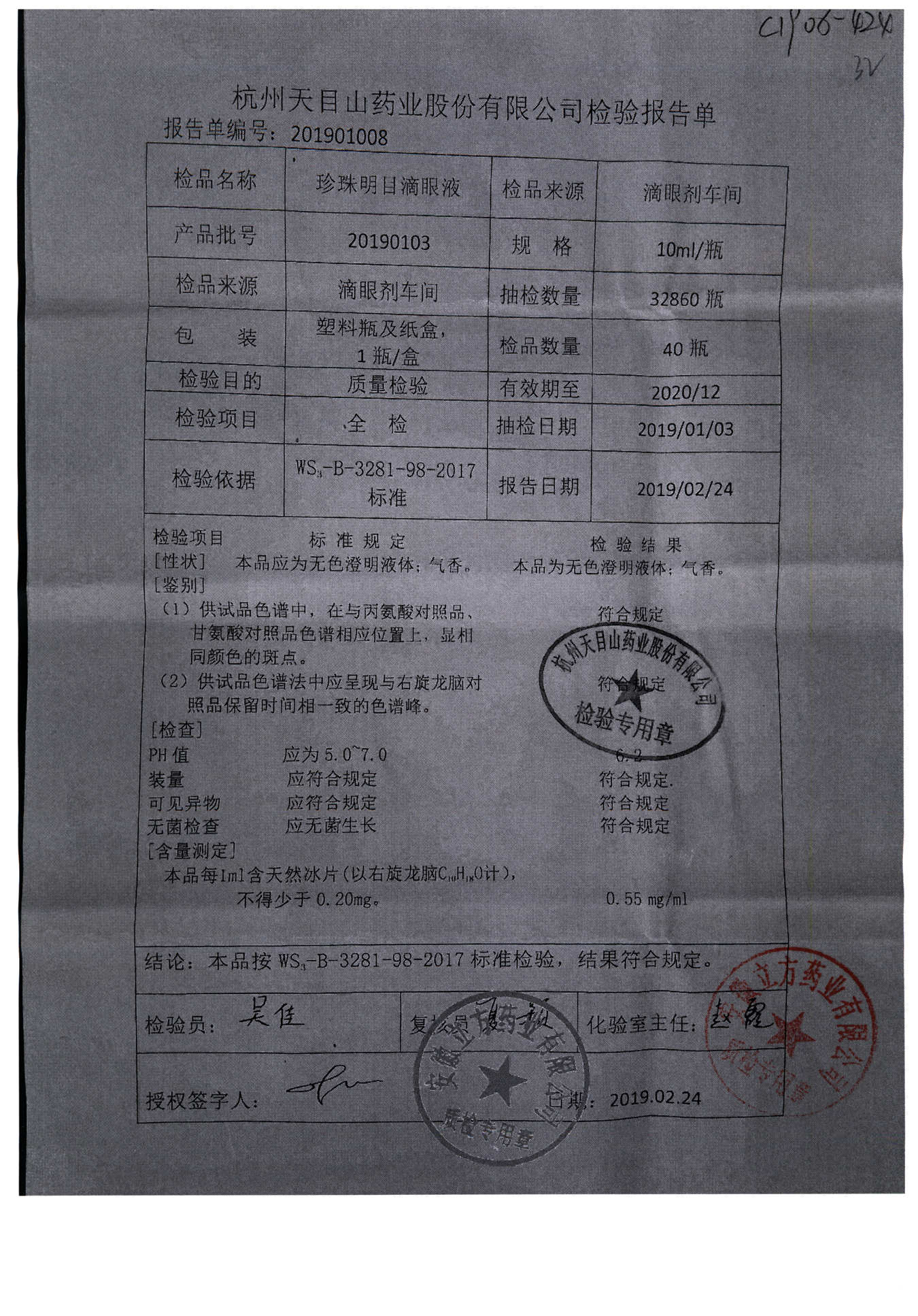 珍珠明目滴眼液 | 10ml | 20190103 | 查看详情 |