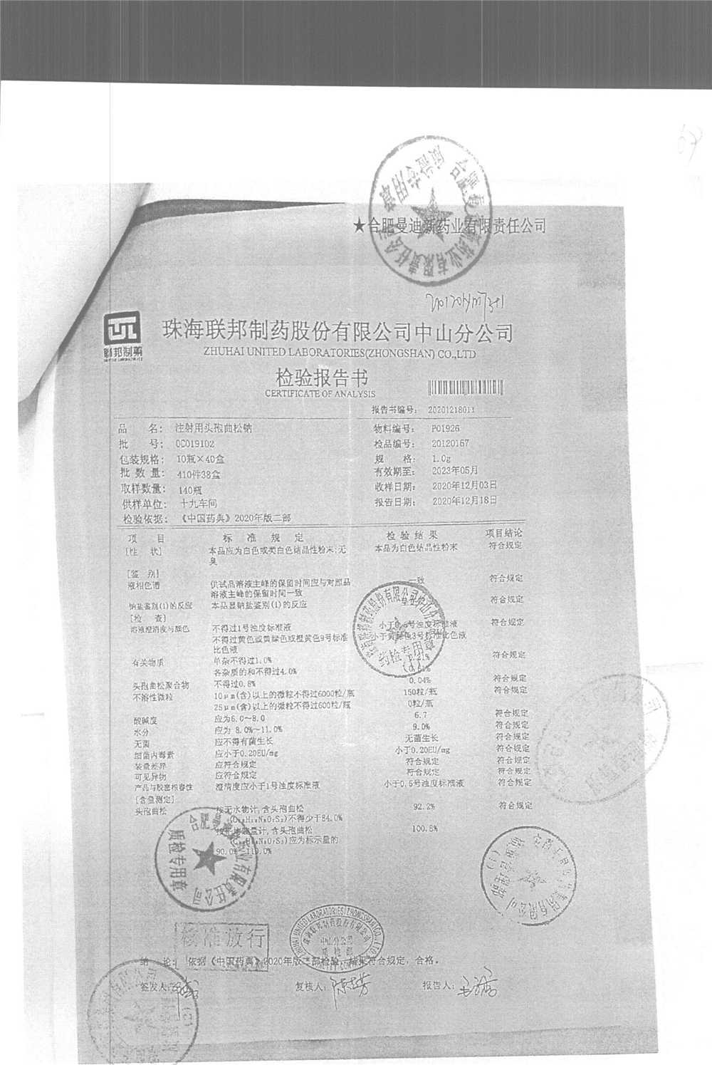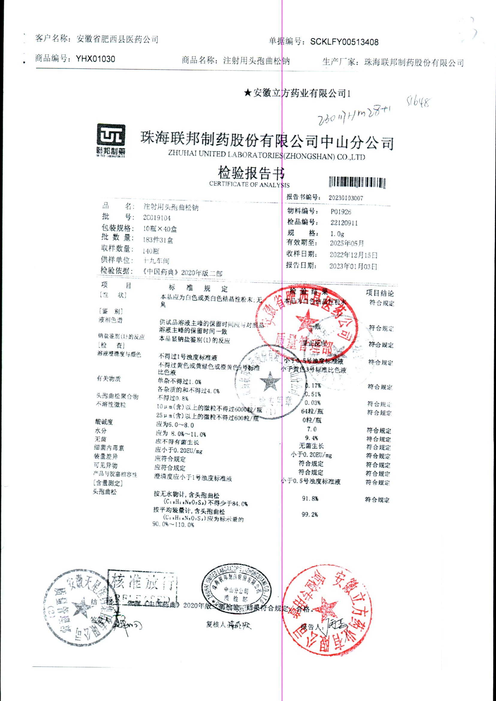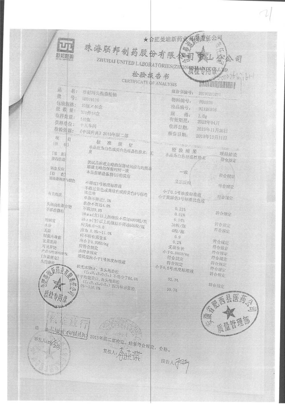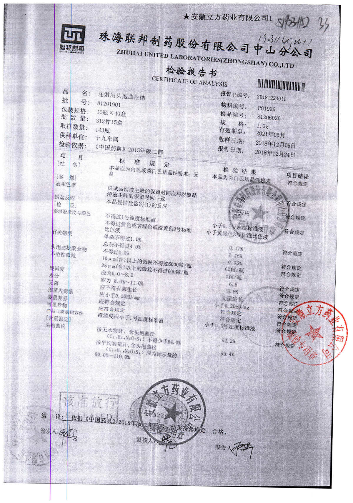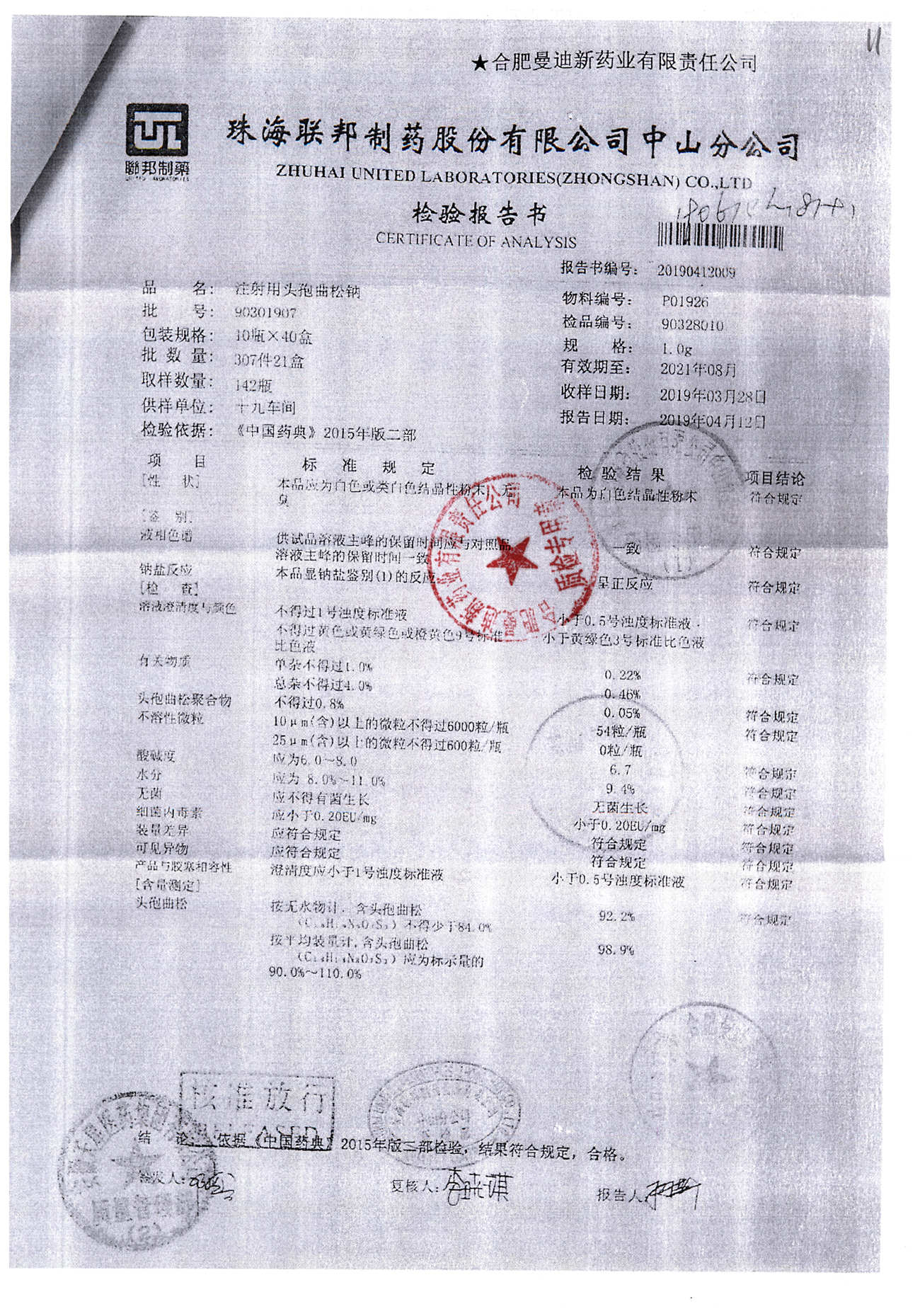 注射用头孢曲松钠 | 1.0g | 0C019102 | 查看详情 |