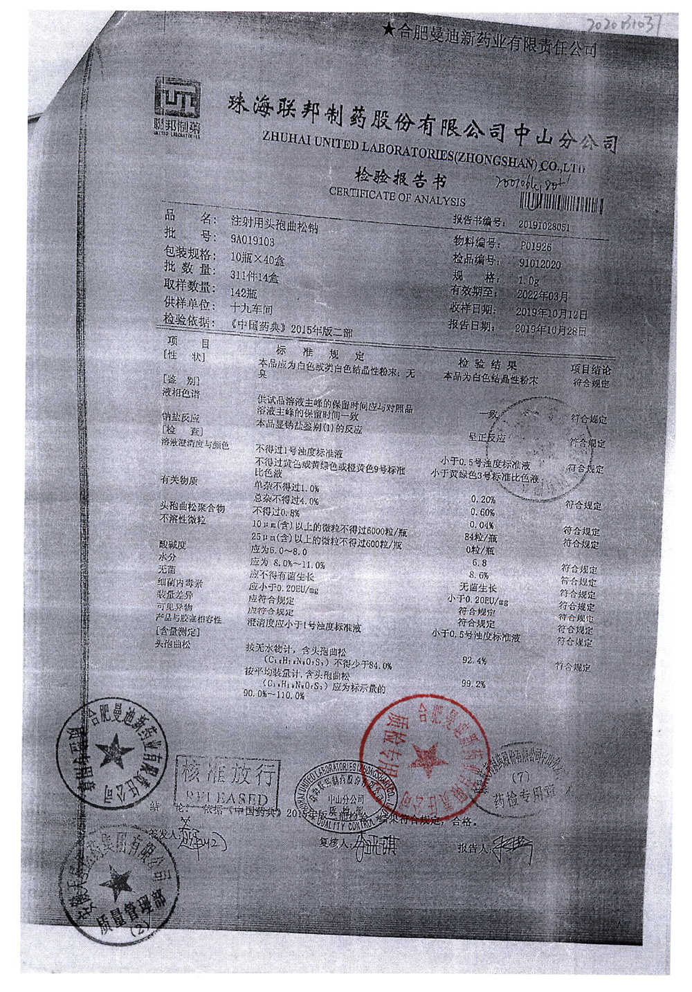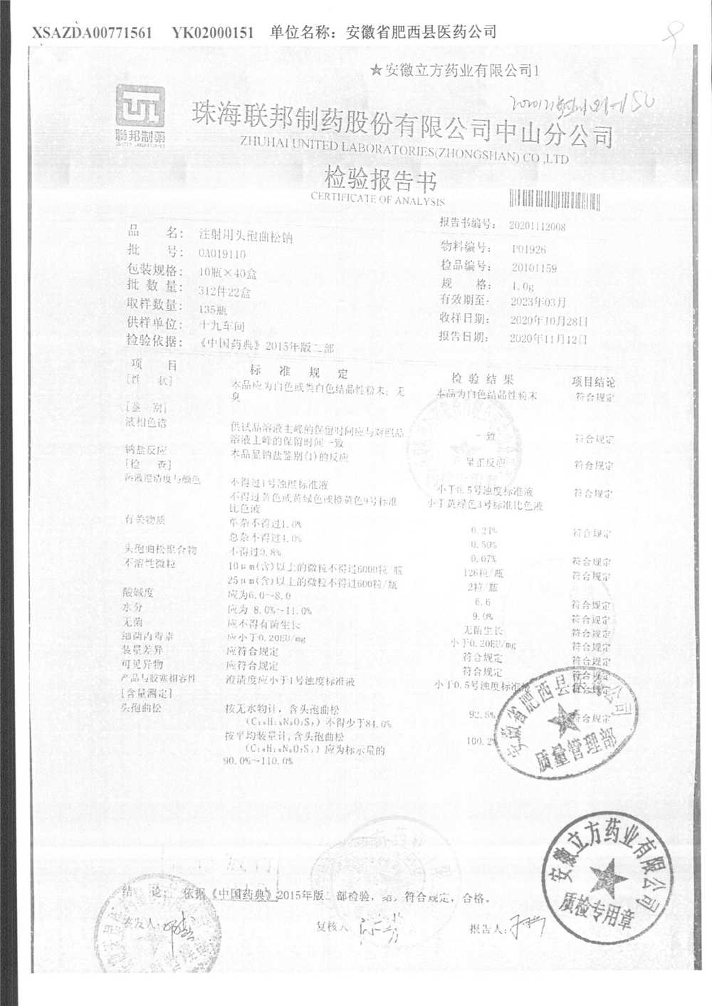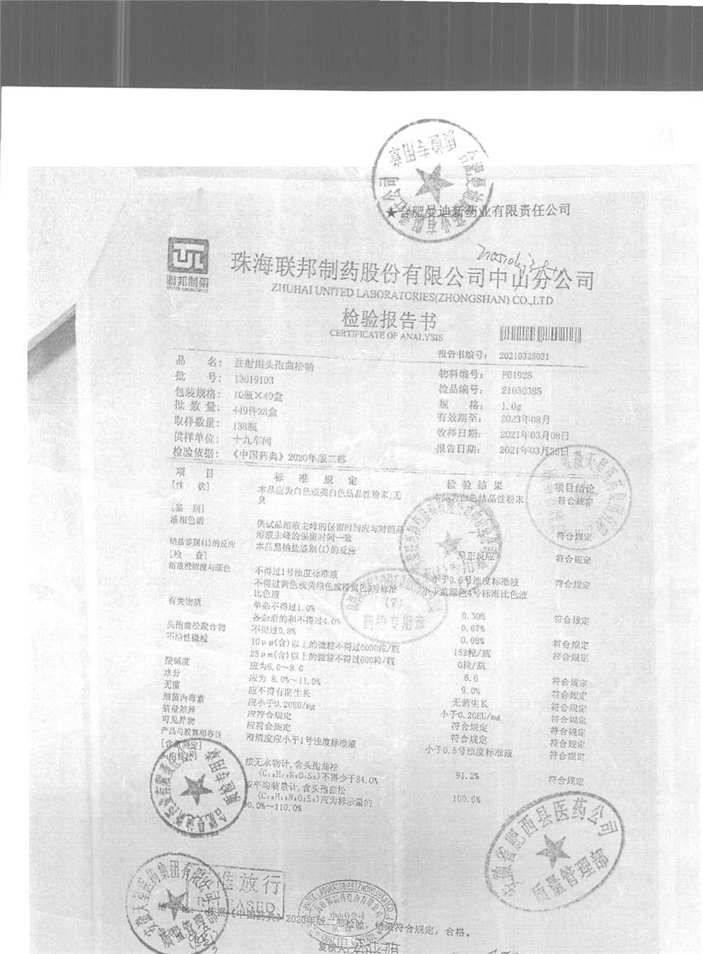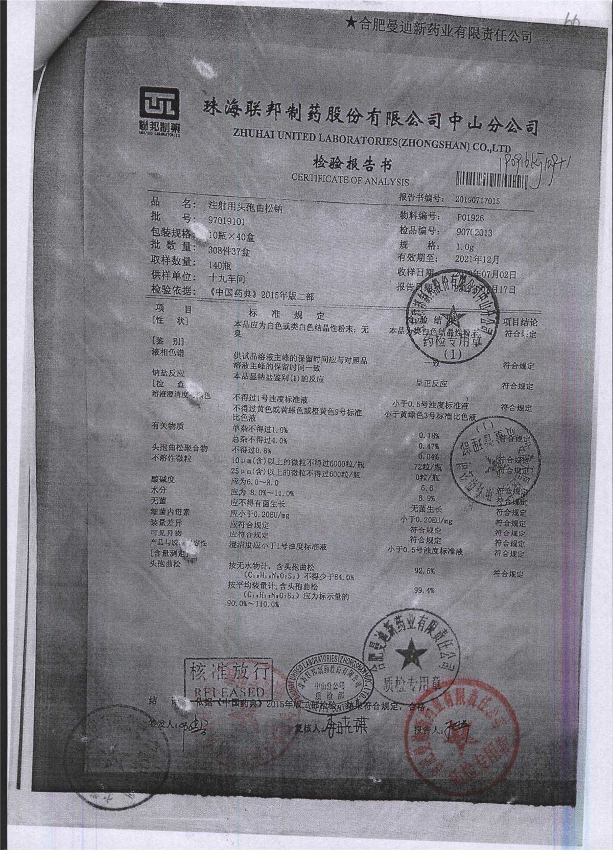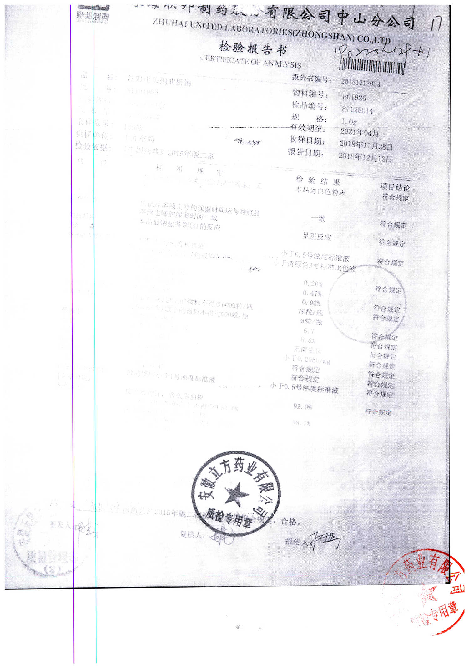 注射用头孢曲松钠 | 1.0g | 0C019102 | 查看详情 |