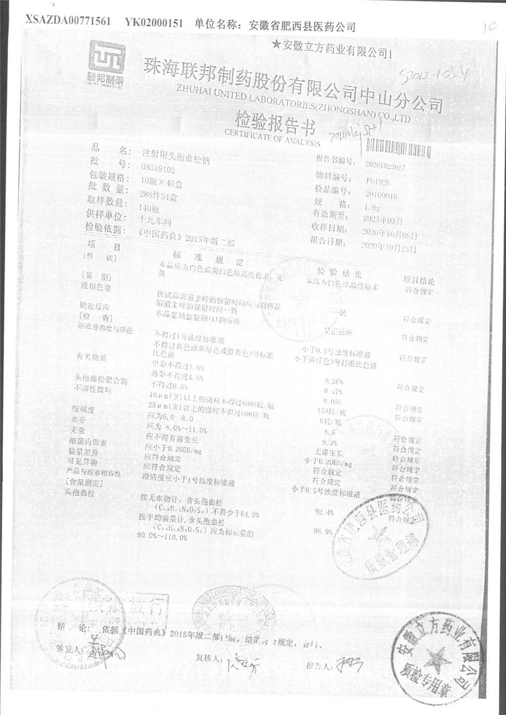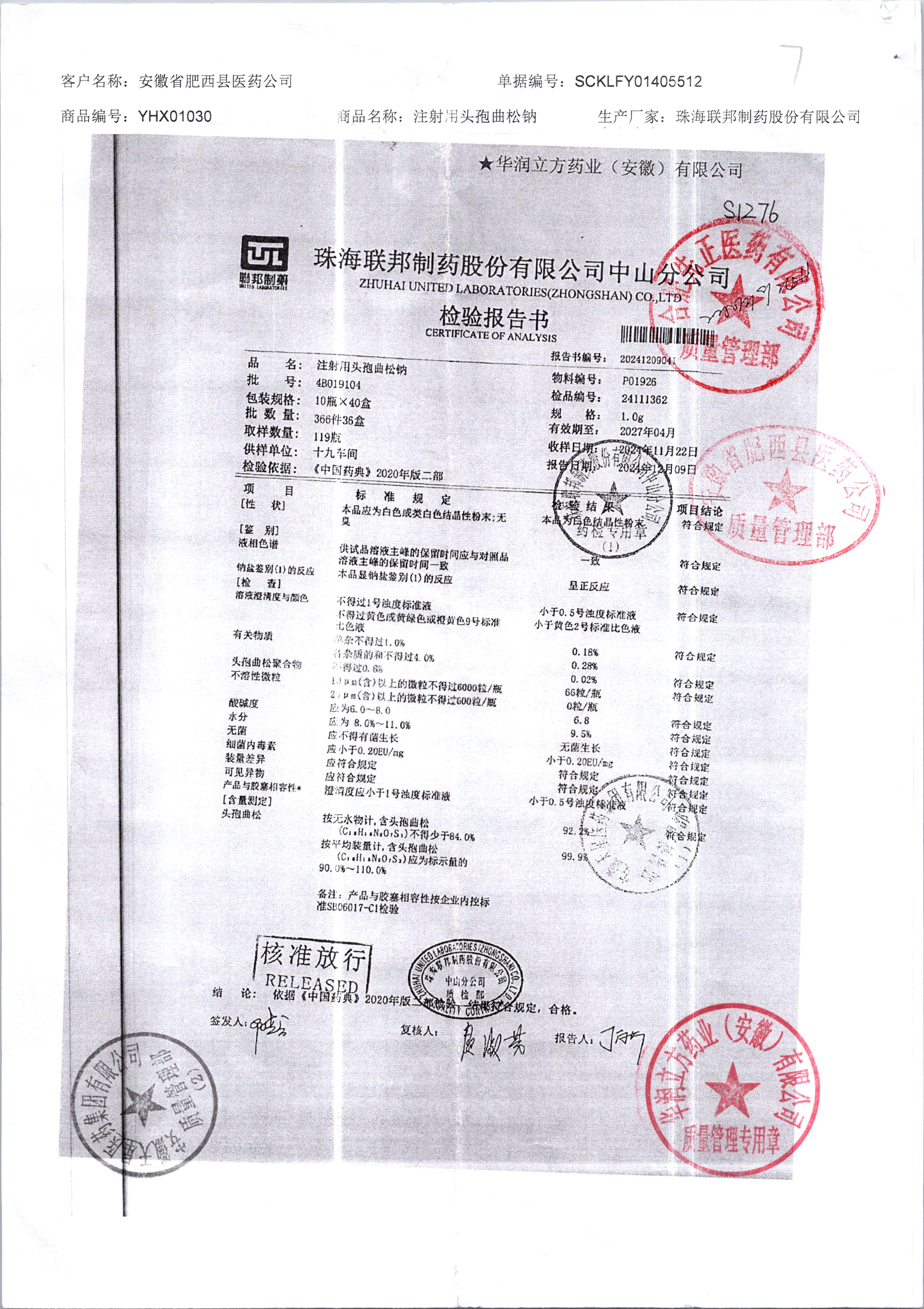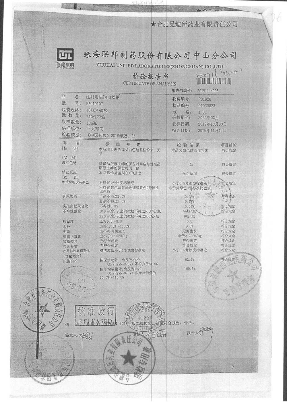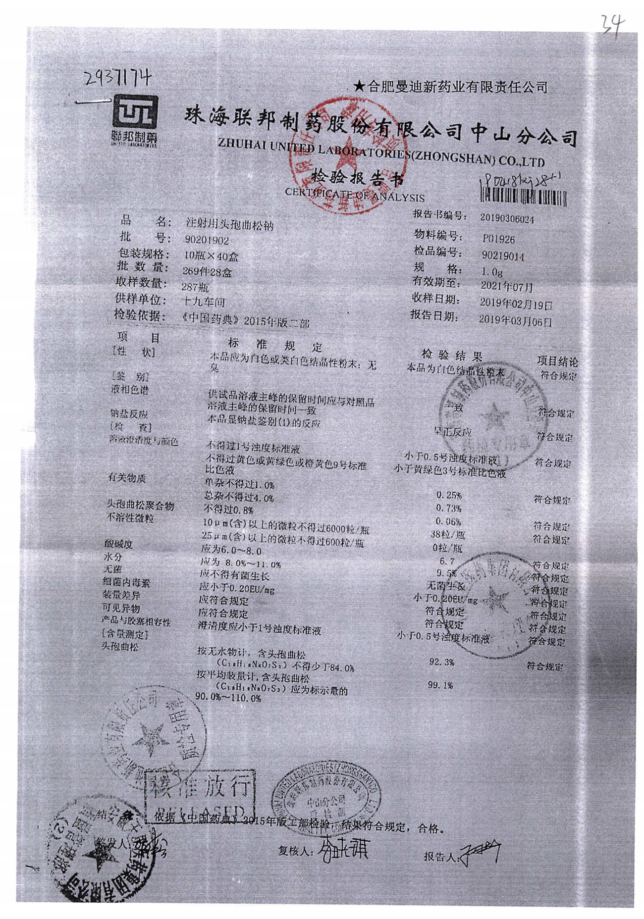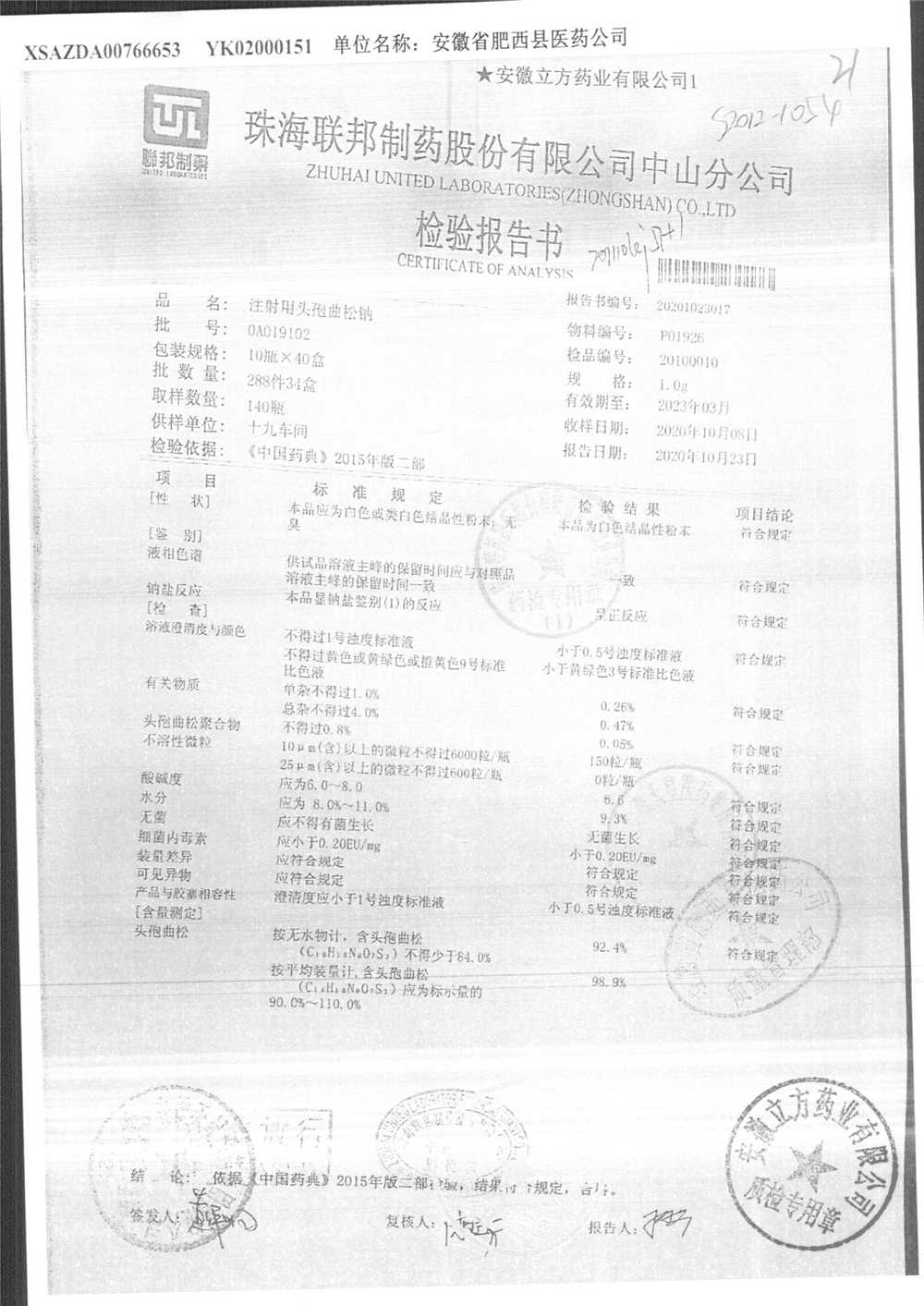 注射用头孢曲松钠 | 1.0g | 0C019102 | 查看详情 |