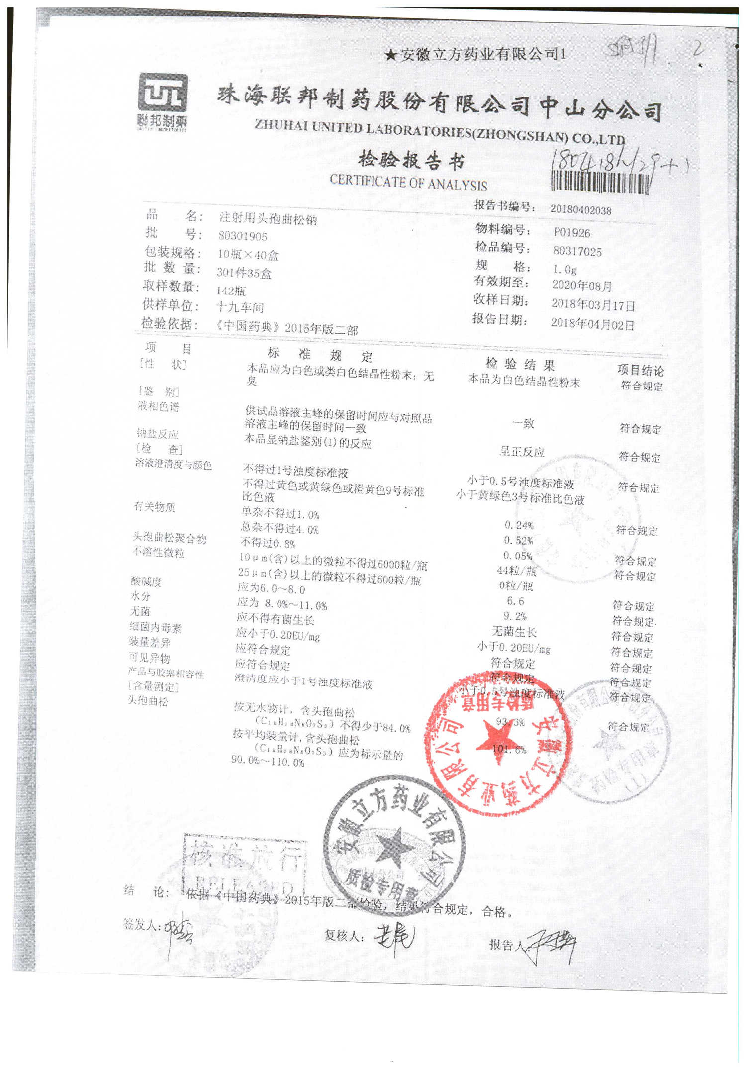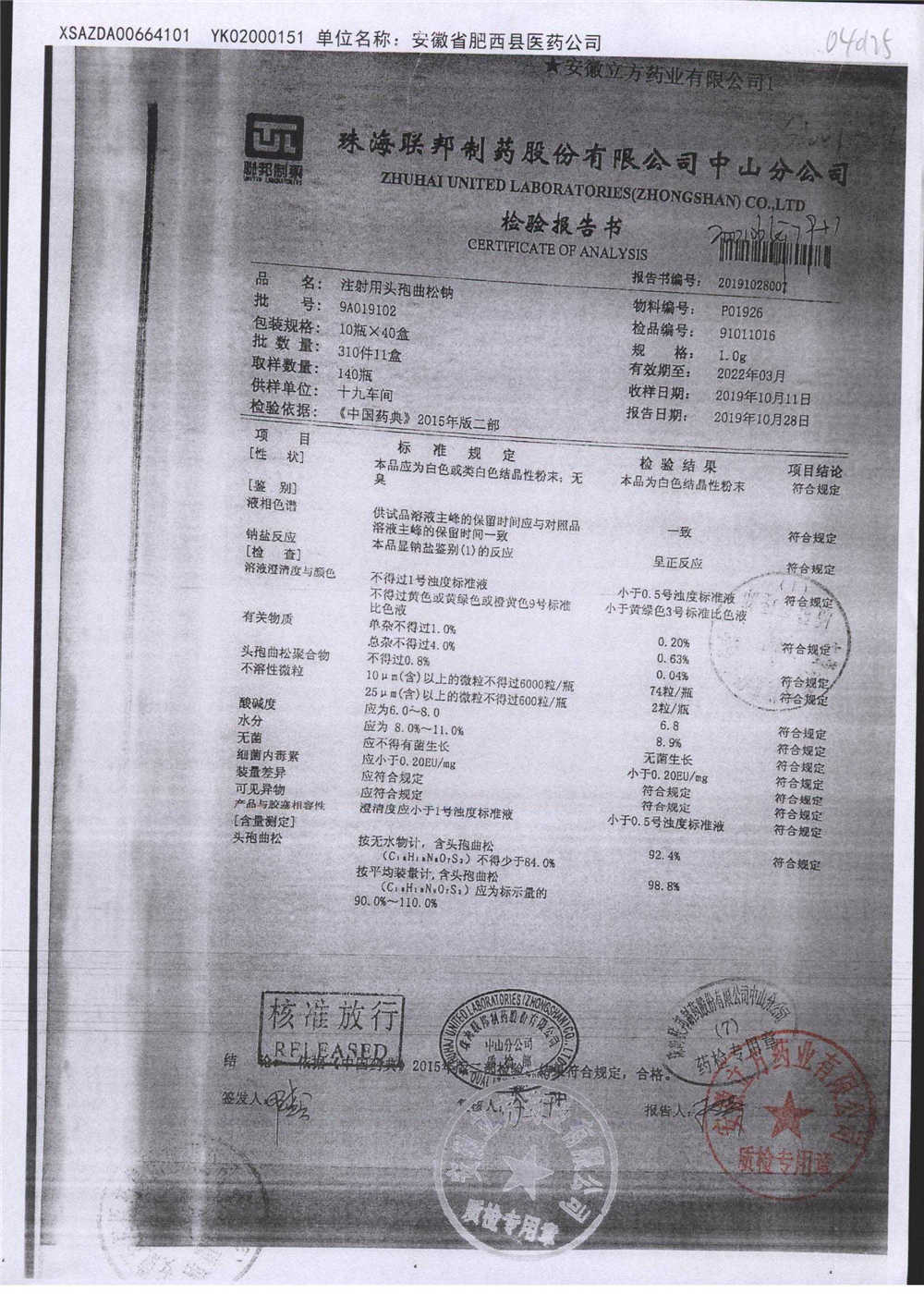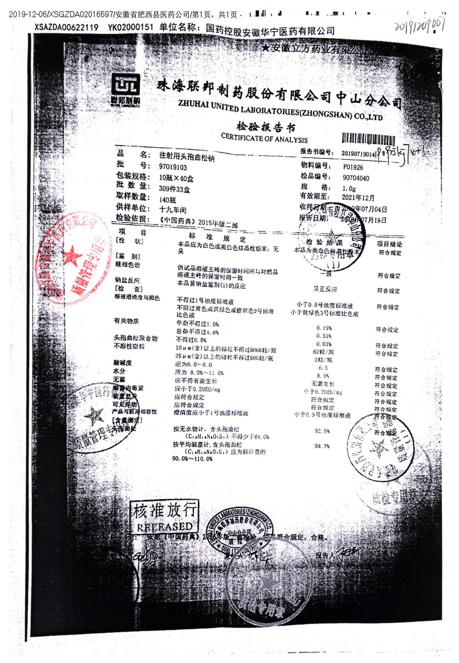 注射用头孢曲松钠 | 1.0g | 0A019102 | 查看详情 |