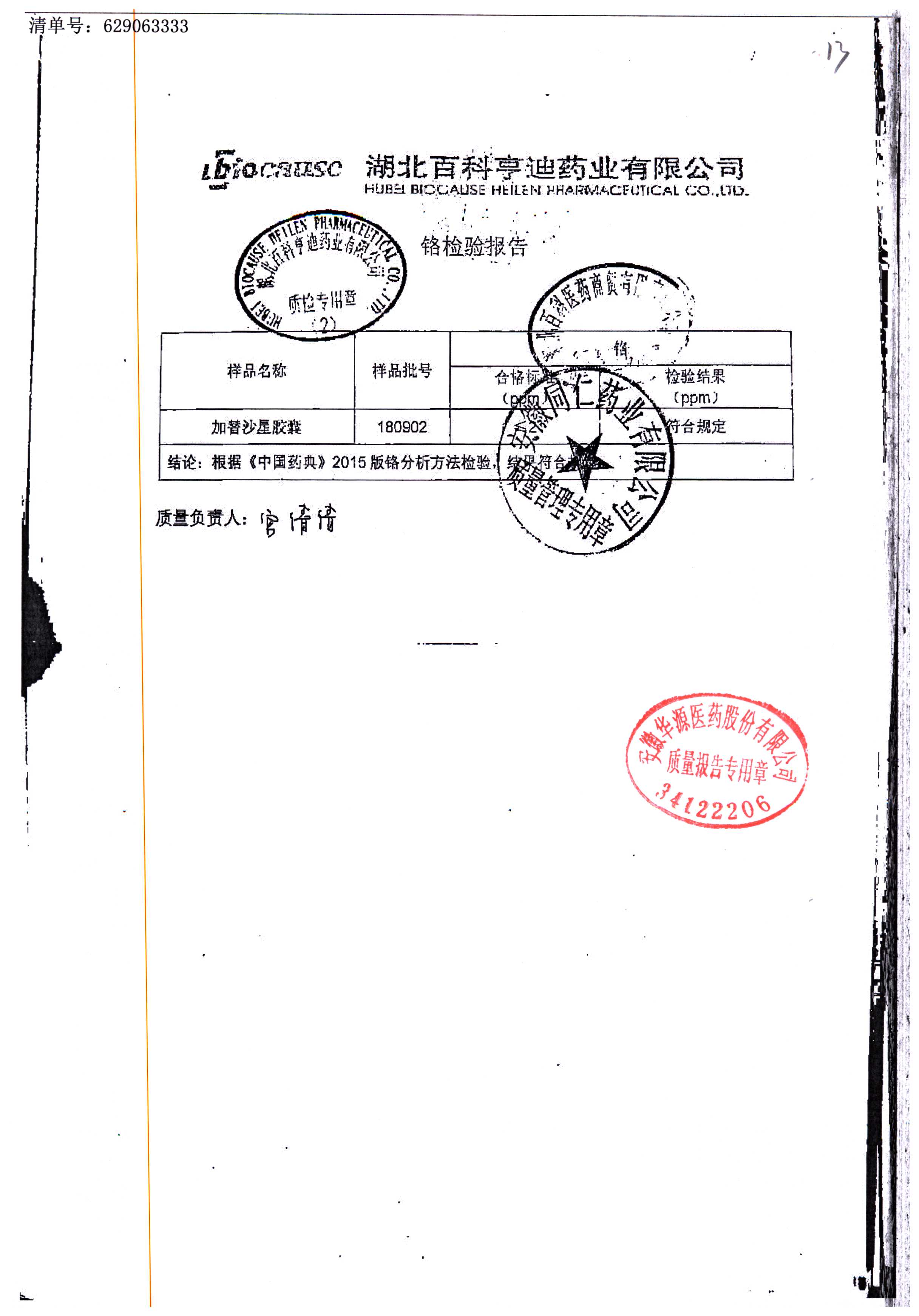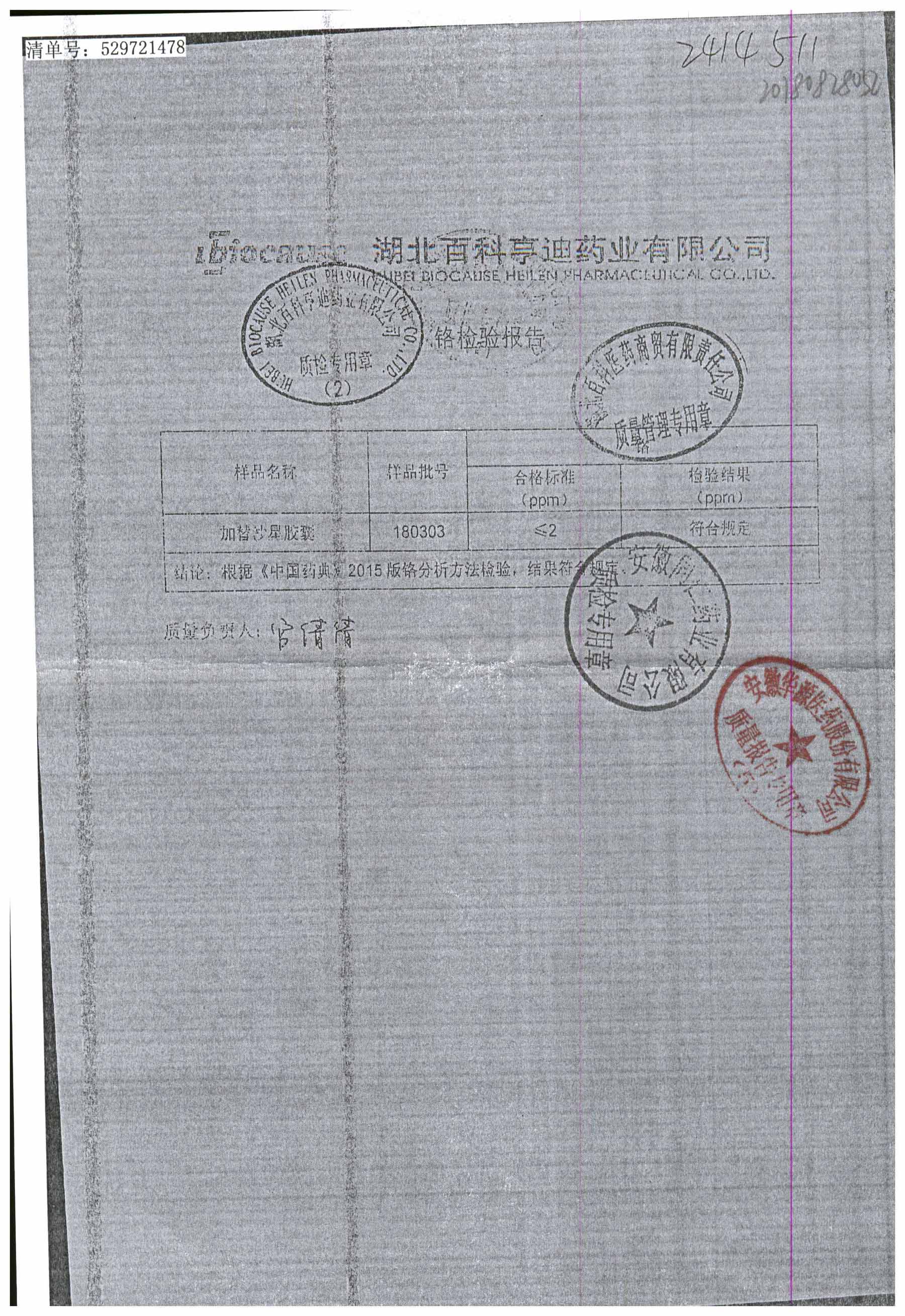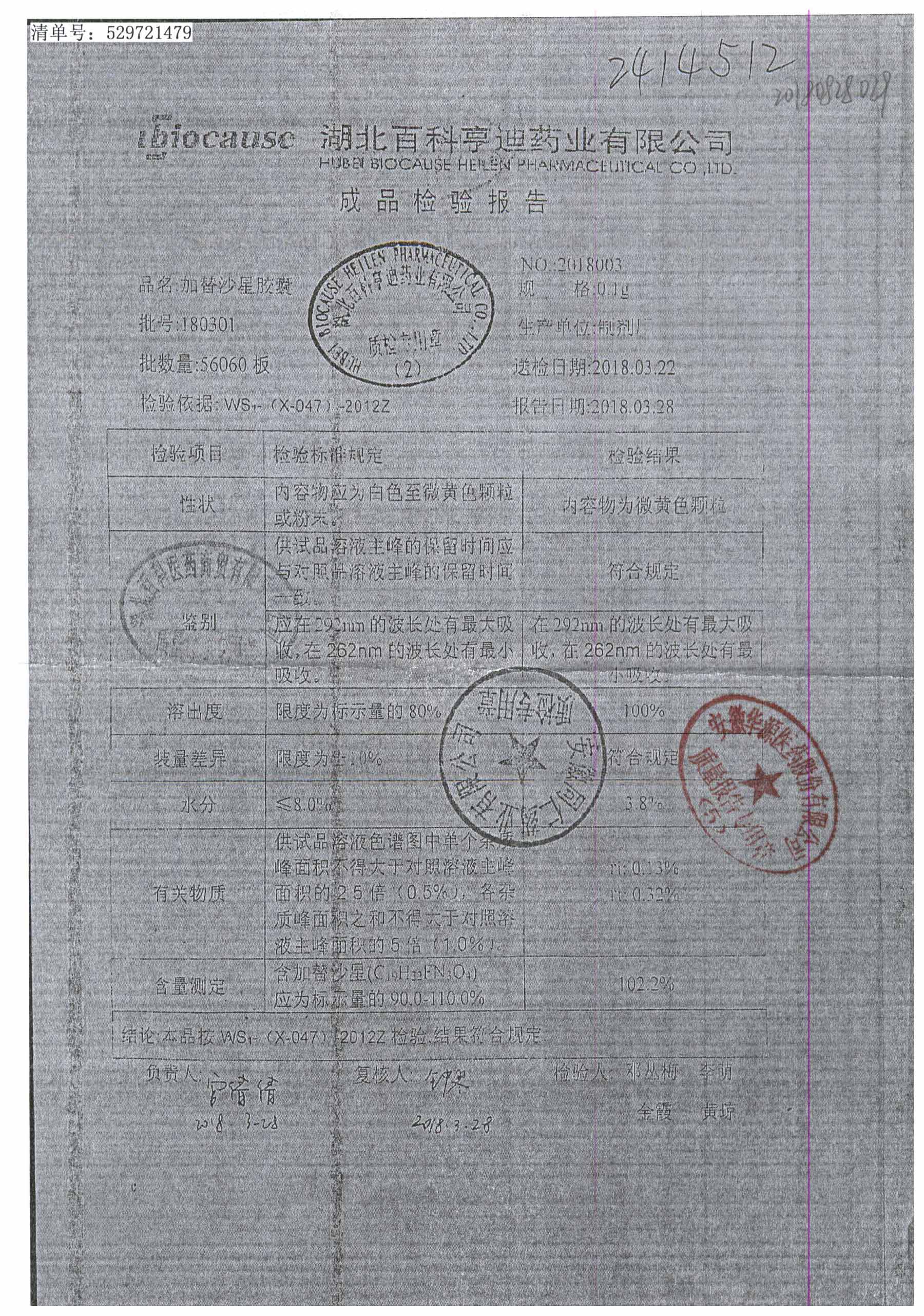 加替沙星胶囊 | 0.1g | 180902(1/2) | 查看详情 |