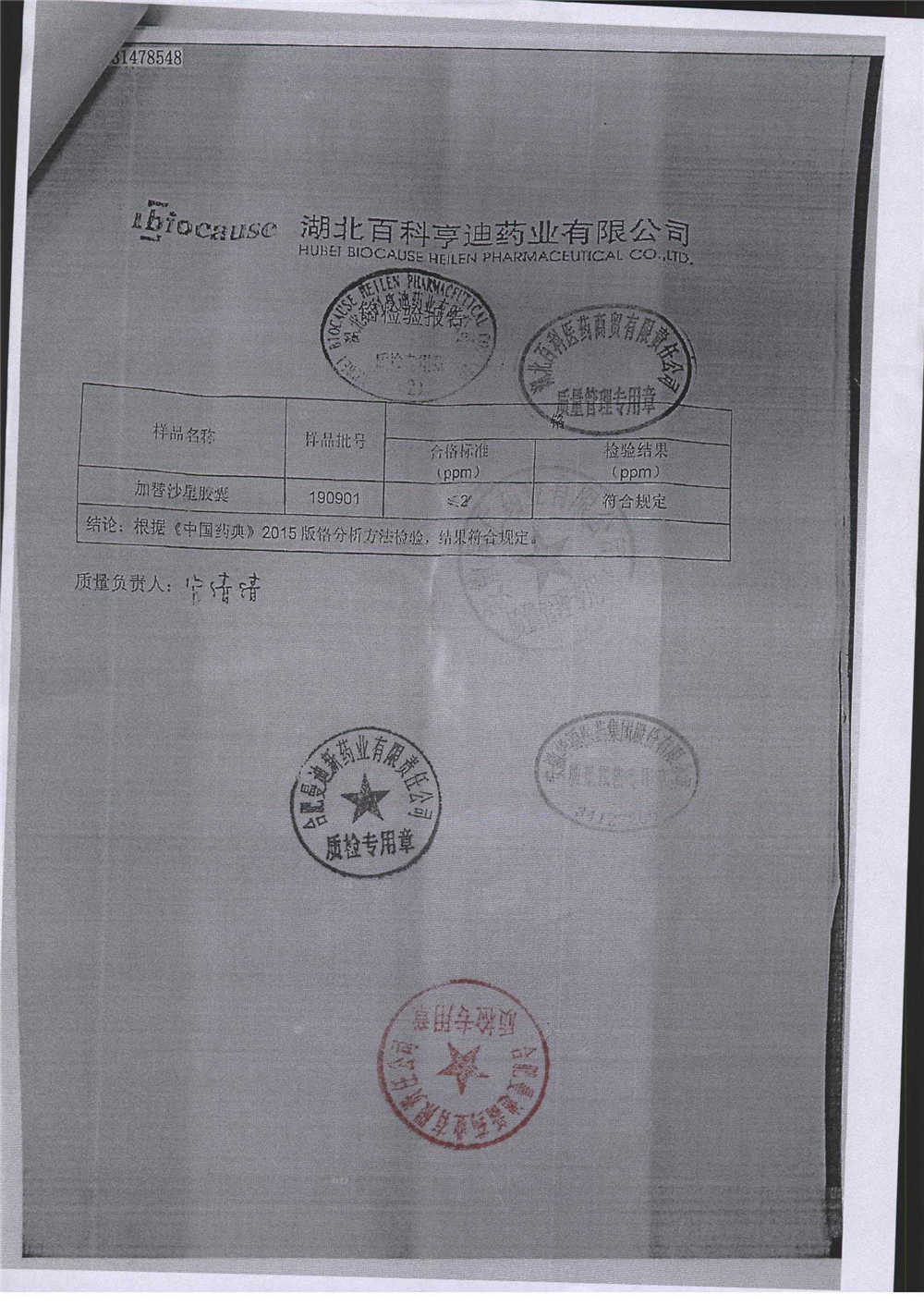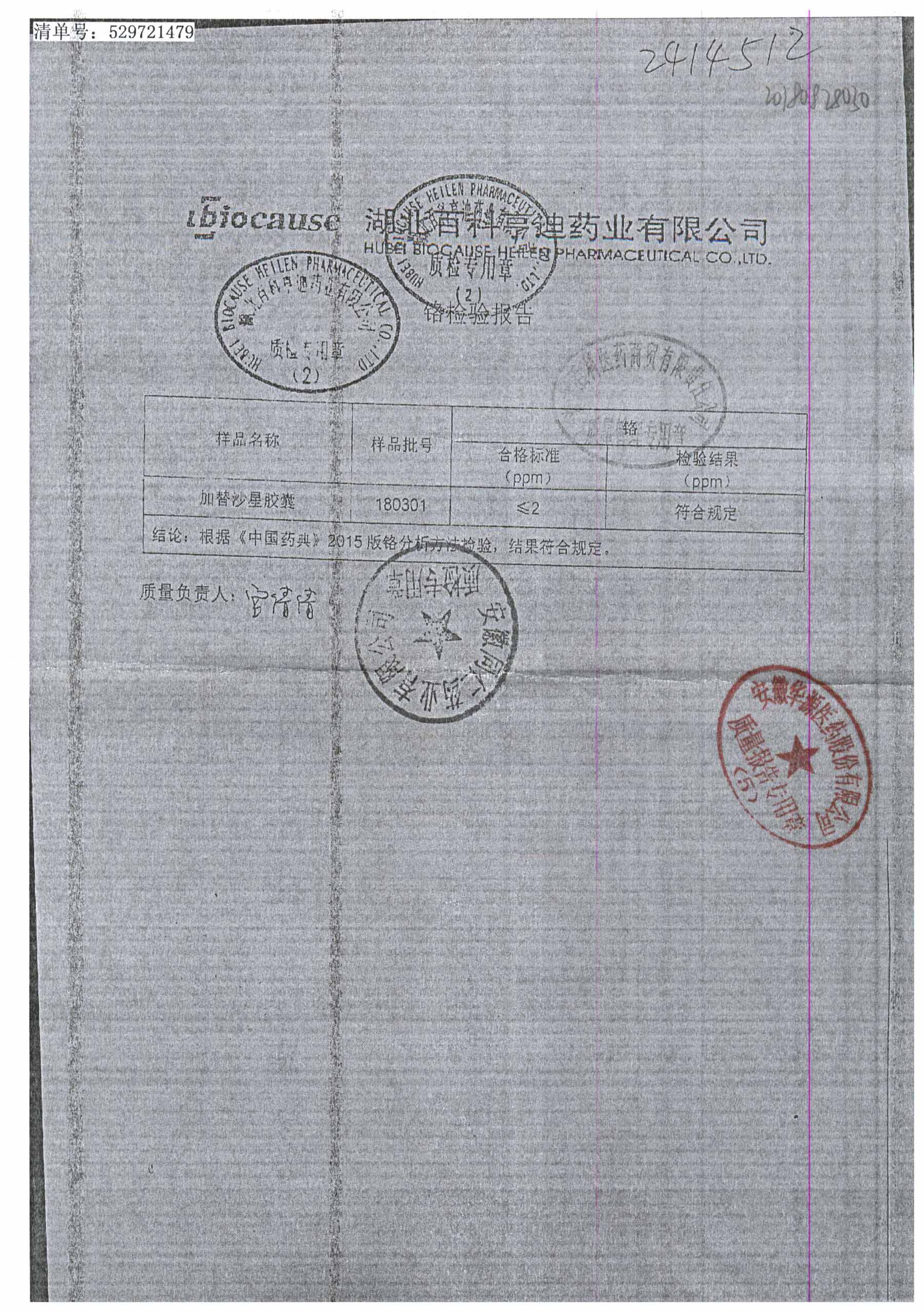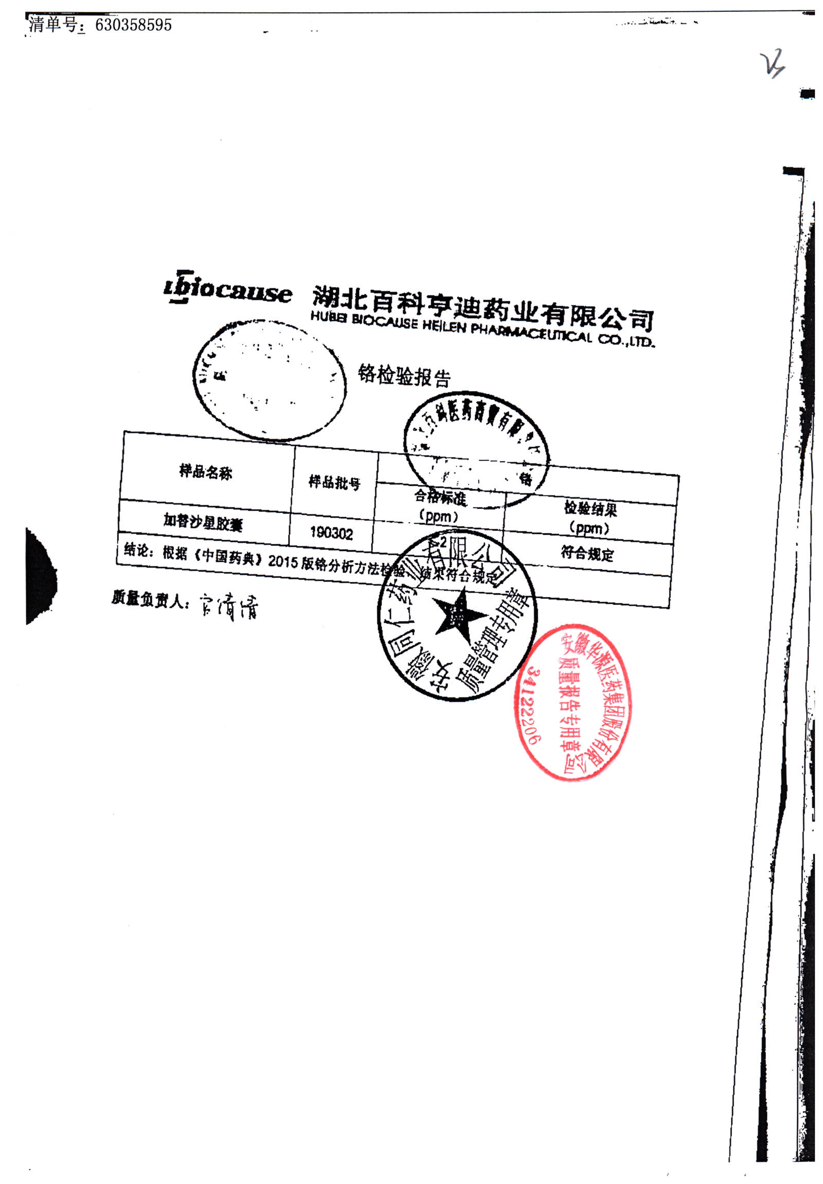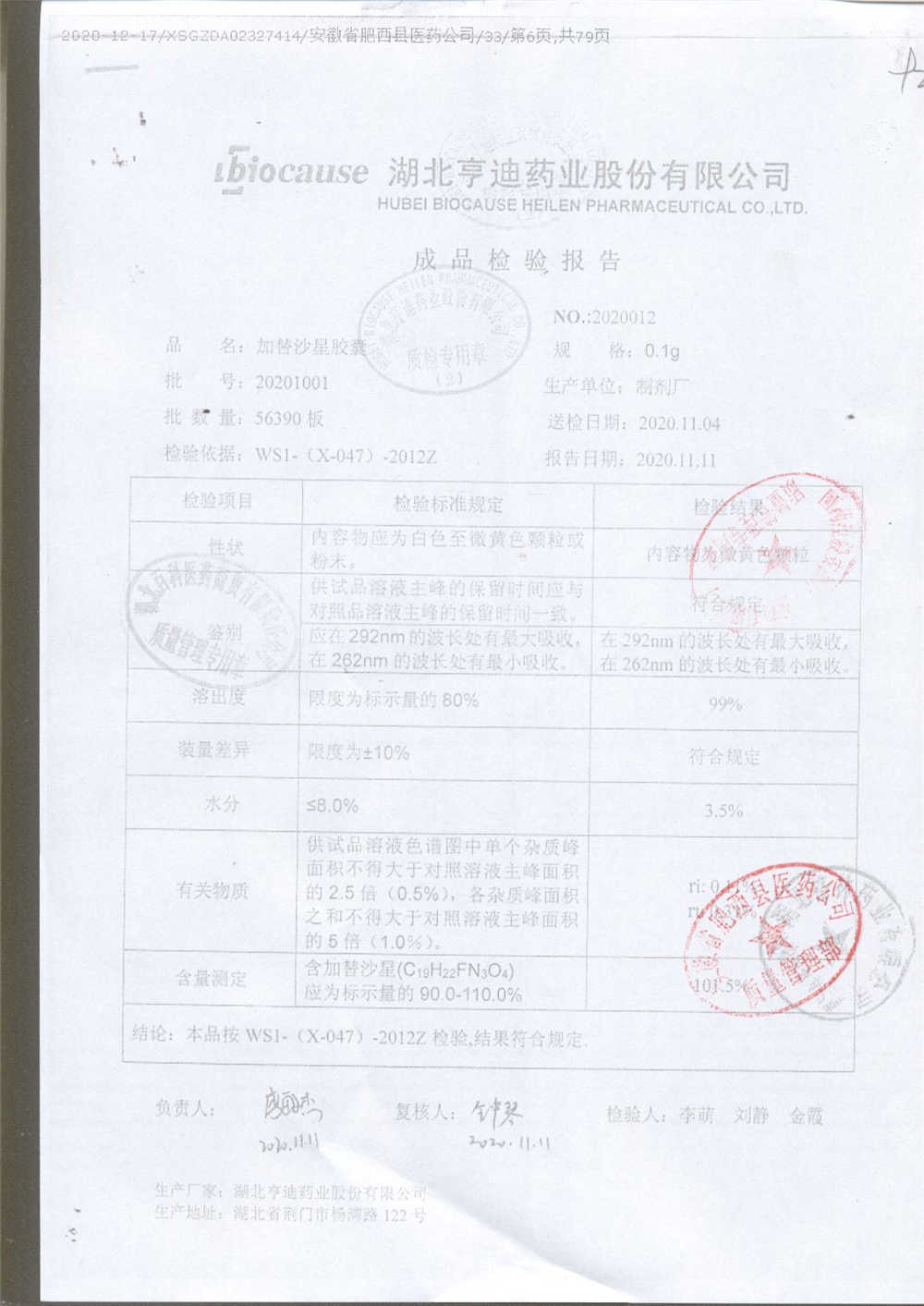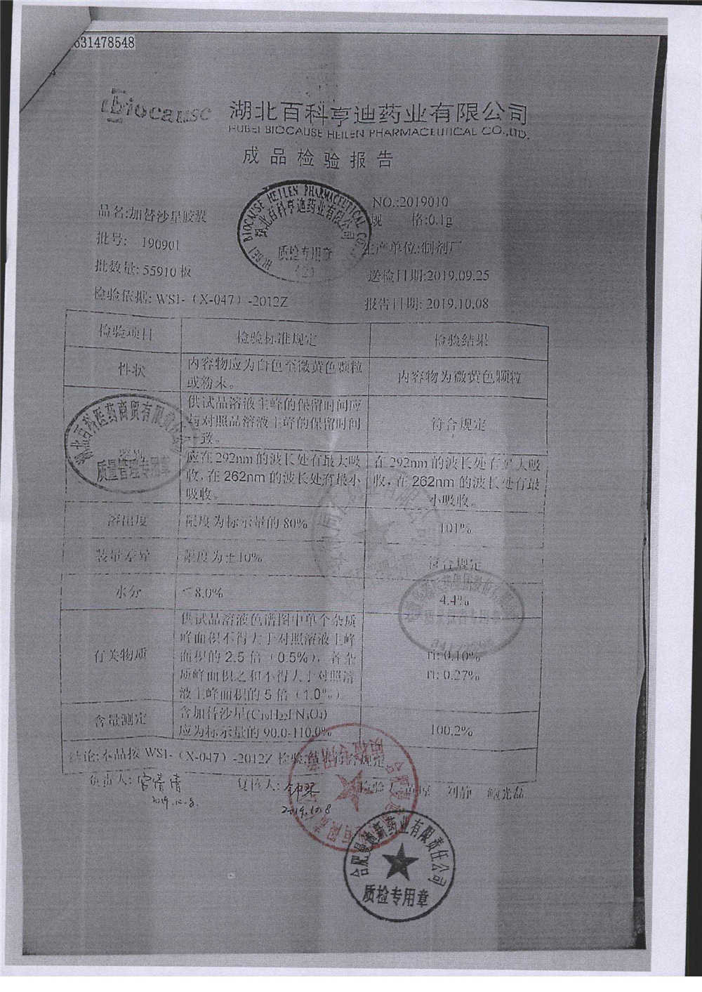 加替沙星胶囊 | 0.1g | 190901(1/2) | 查看详情 |