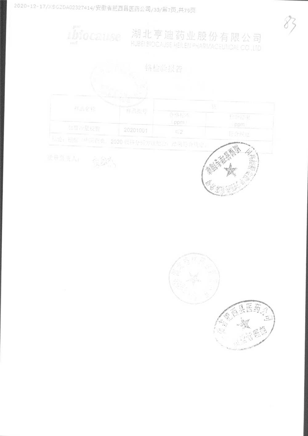 加替沙星胶囊 | 0.1g | 20201001(2/2) | 查看详情 |