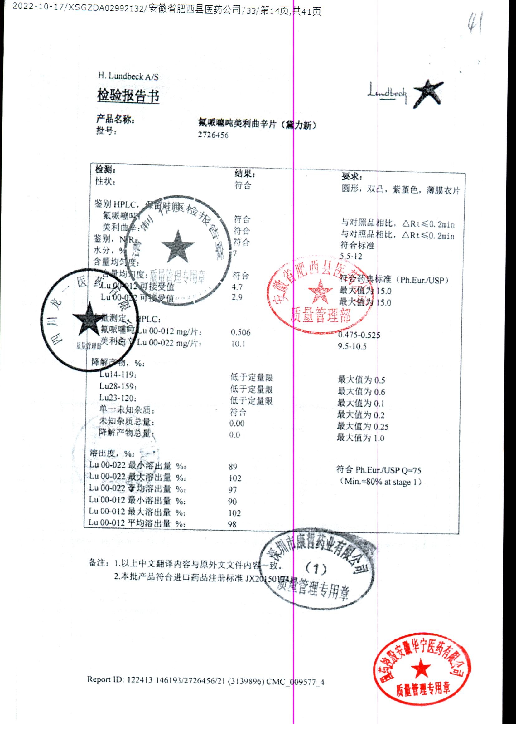 氟哌噻吨美利曲辛片 | 20片 | 2726456/2 | 查看详情 |