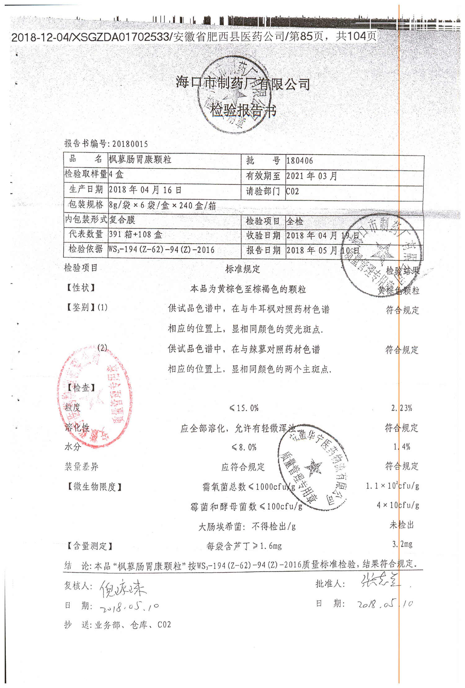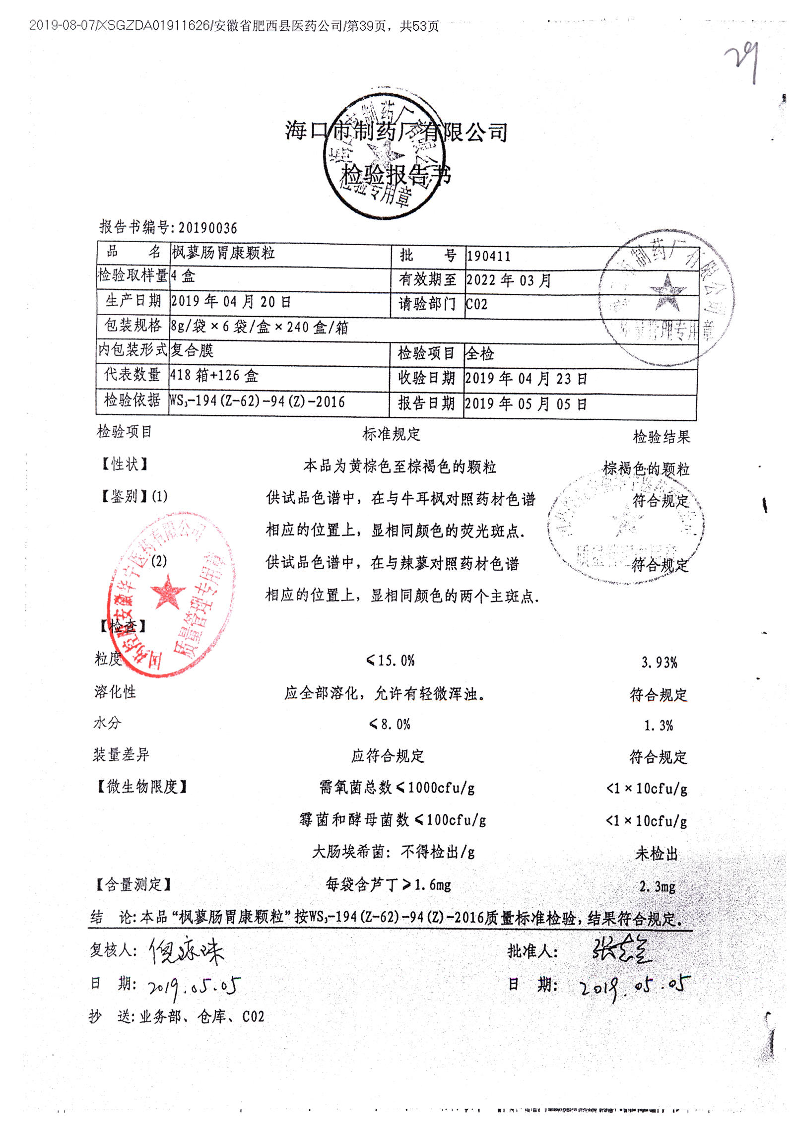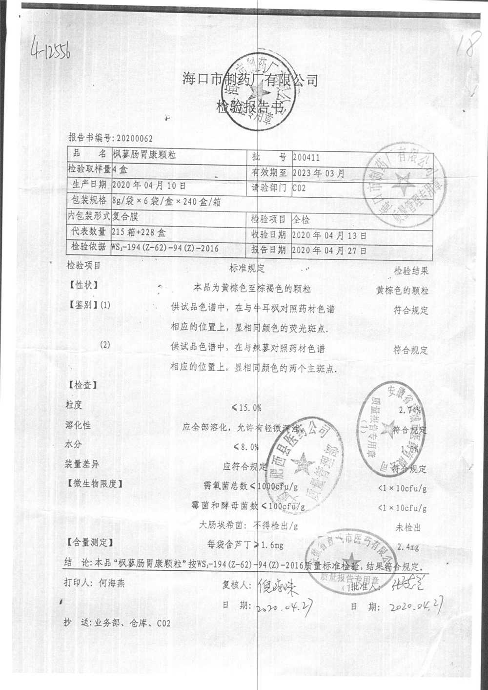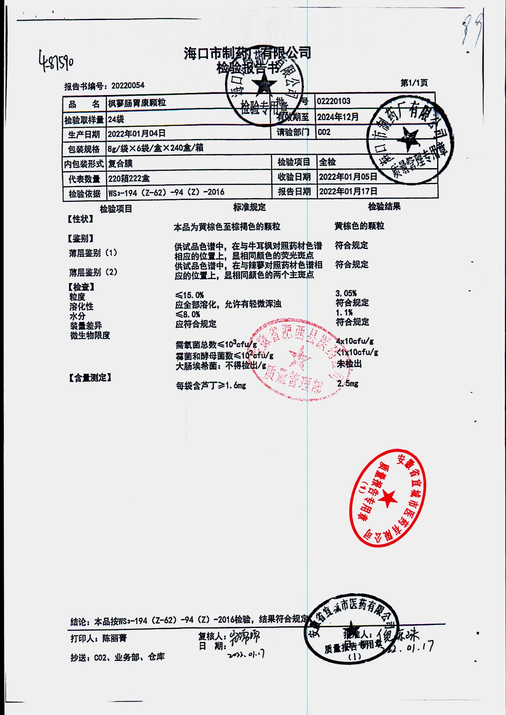 枫蓼肠胃康颗粒 | 8g*6袋 | 190411 | 查看详情 |