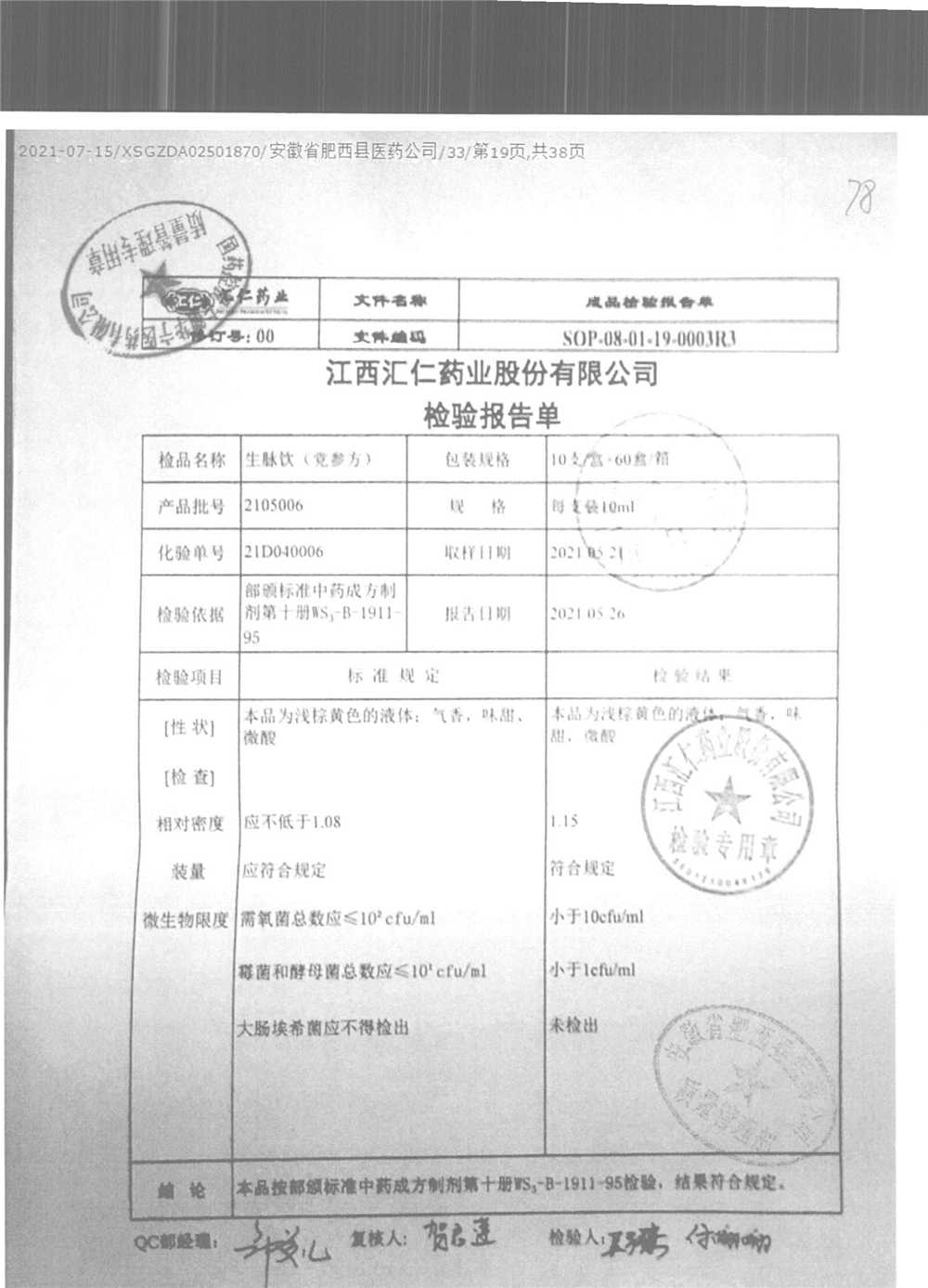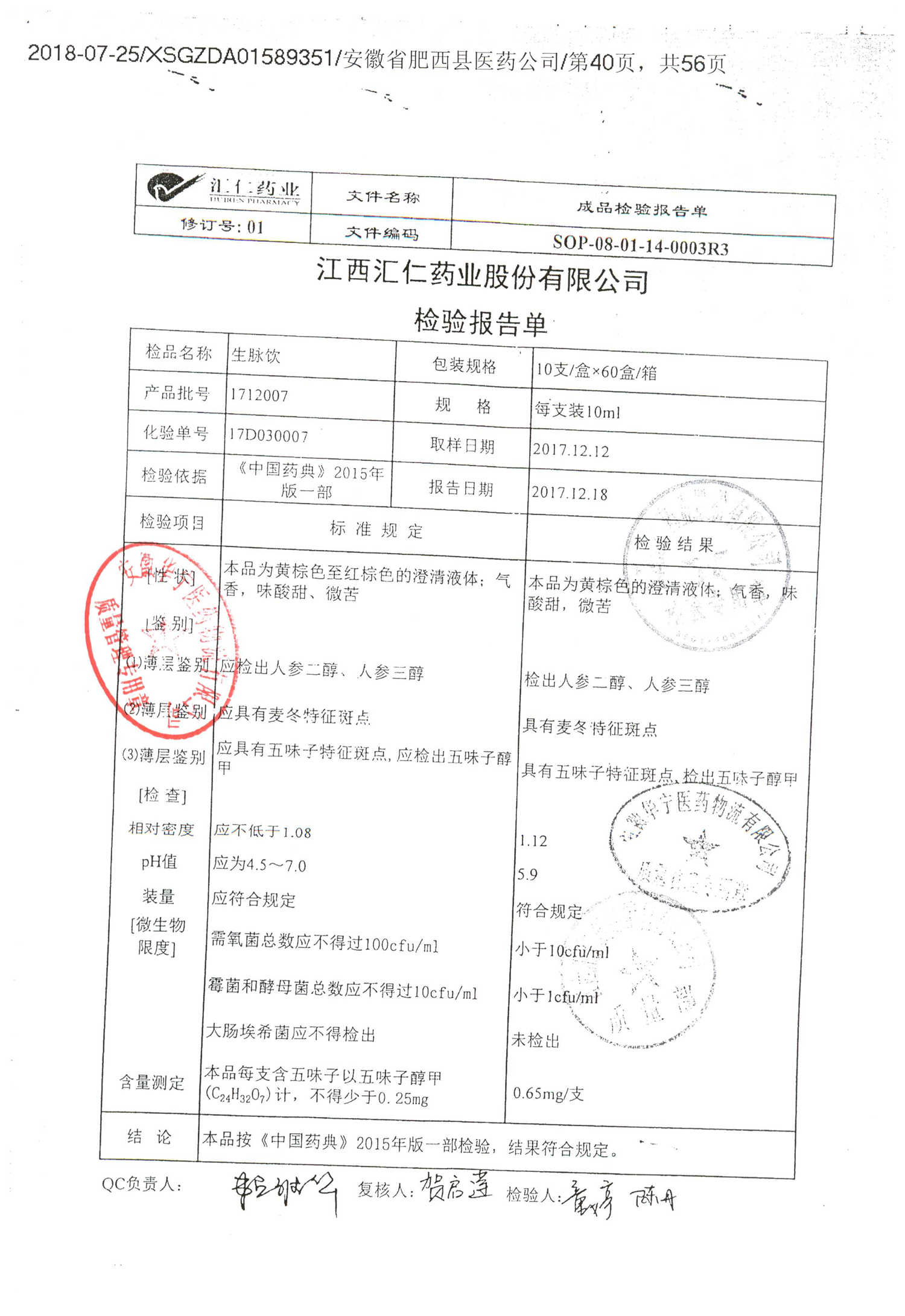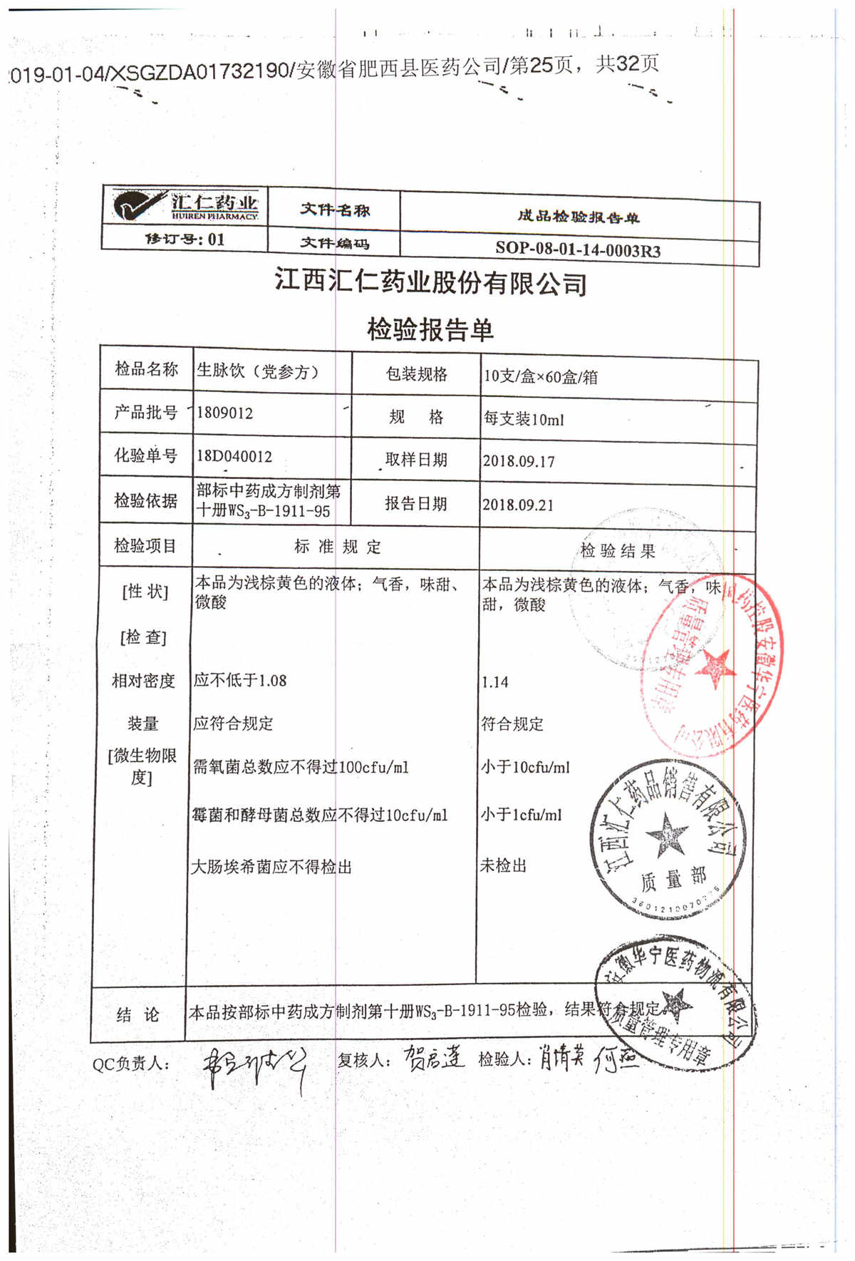 生脉饮 | 10ml*6支 | 1809012 | 查看详情 |