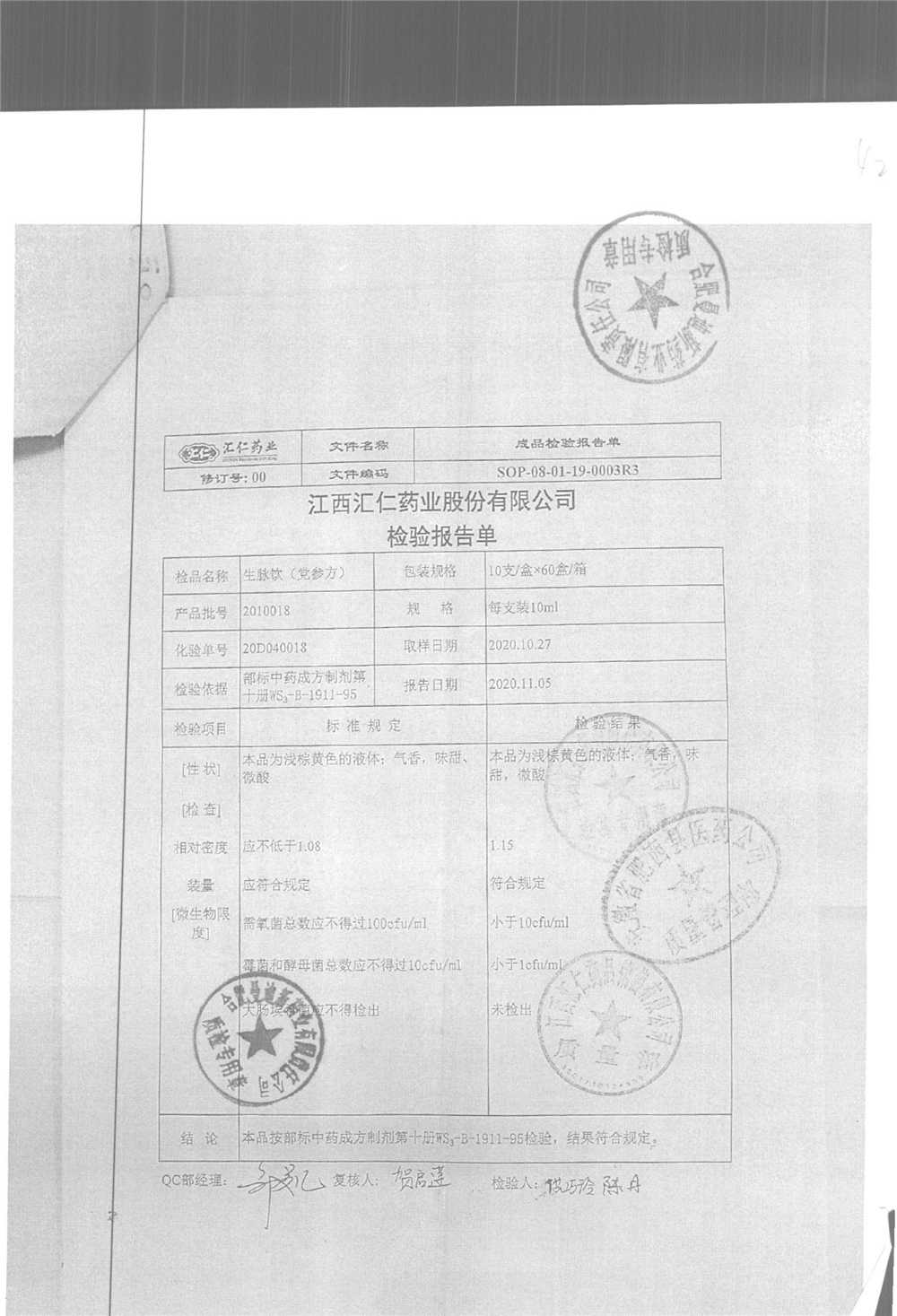 生脉饮 | 10ml*6支 | 2010018 | 查看详情 |