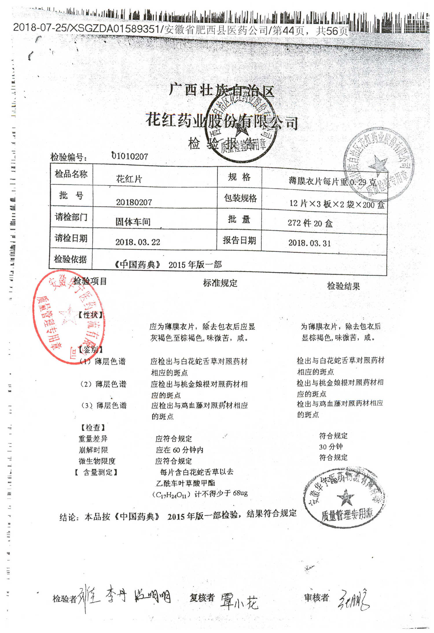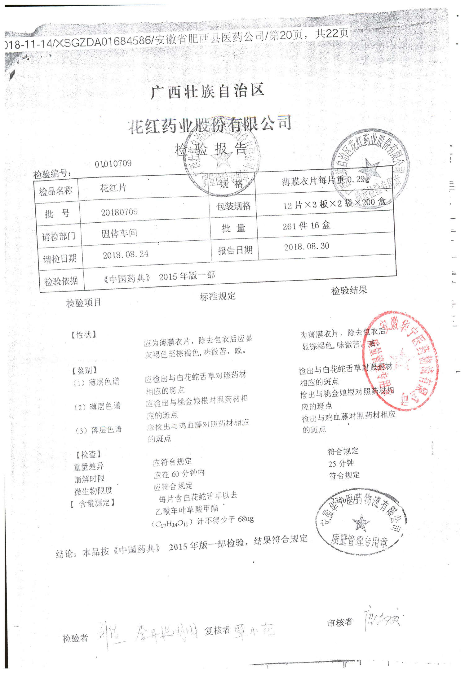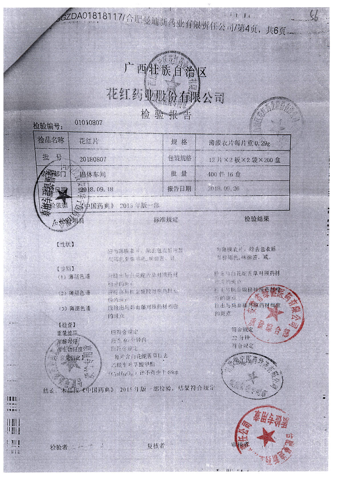 花红片 | 0.29g*72片 | 20180807 | 查看详情 |