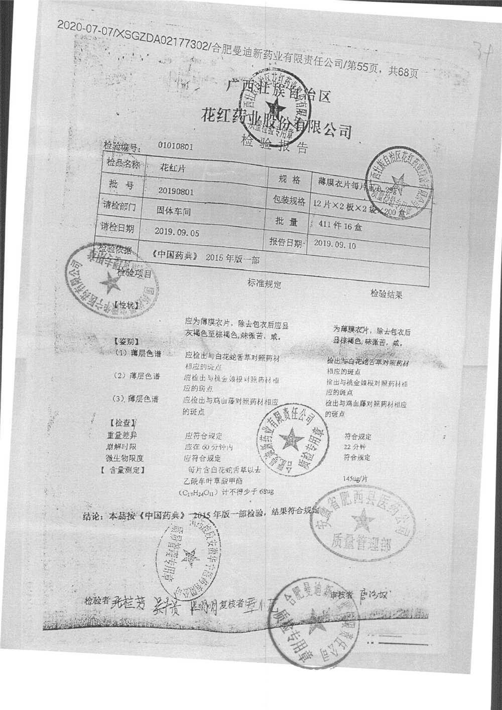 花红片 | 0.29g*72片 | 20190801 | 查看详情 |