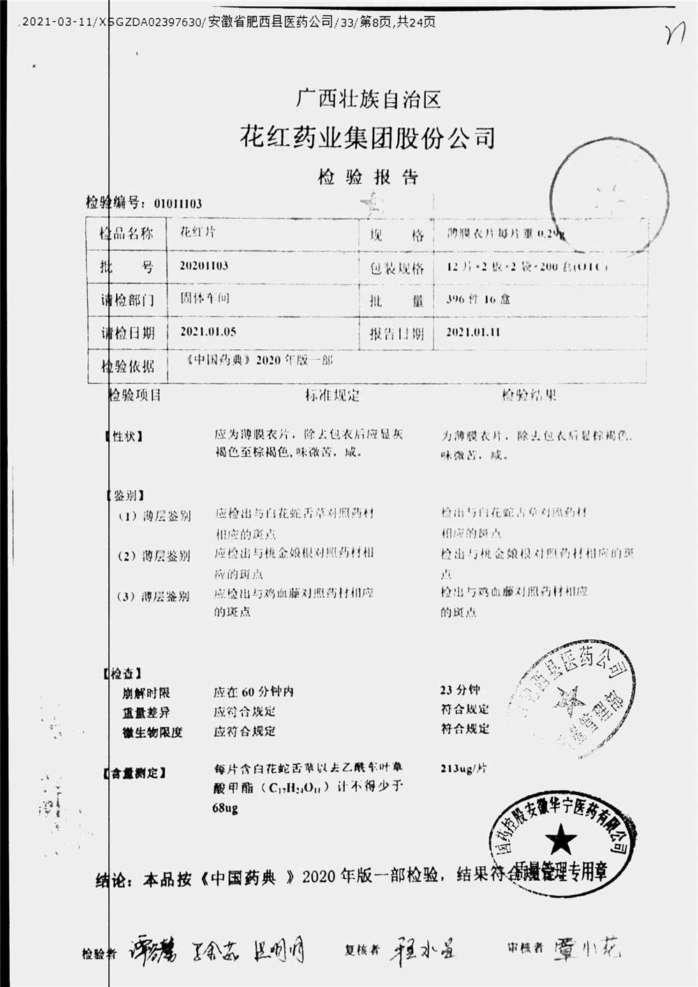 花红片 | 0.29g*72片 | 20201103 | 查看详情 |