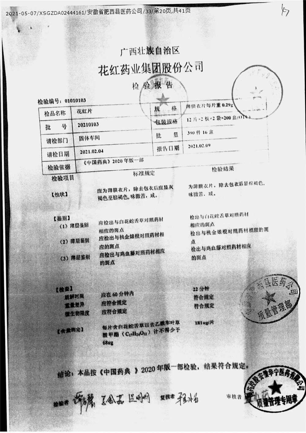 花红片 | 0.29g*72片 | 20210103 | 查看详情 |