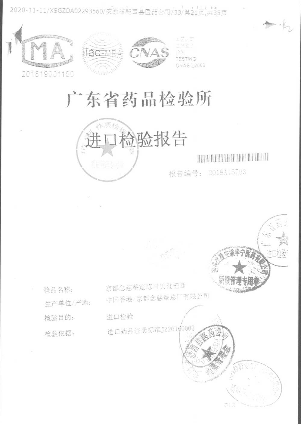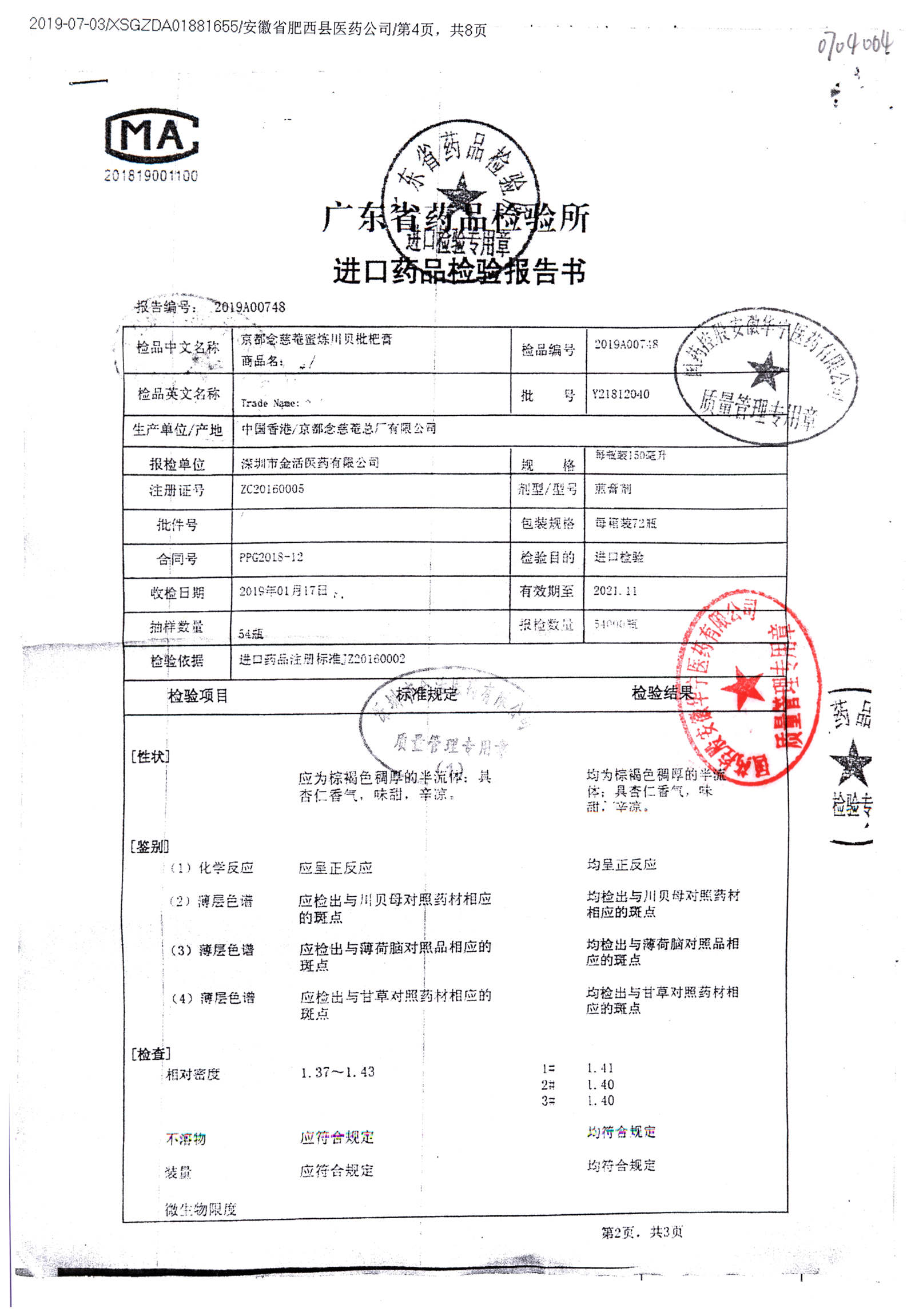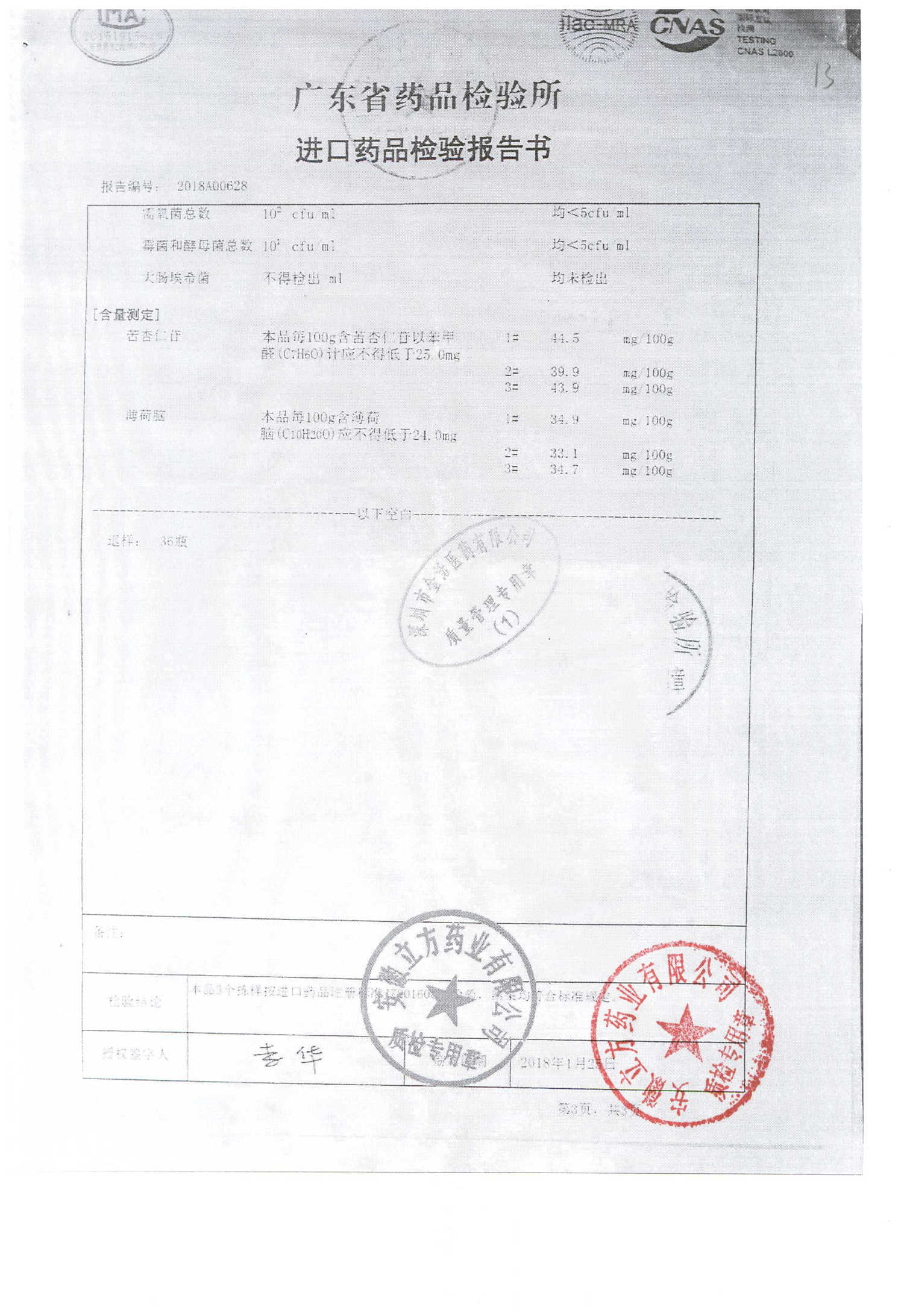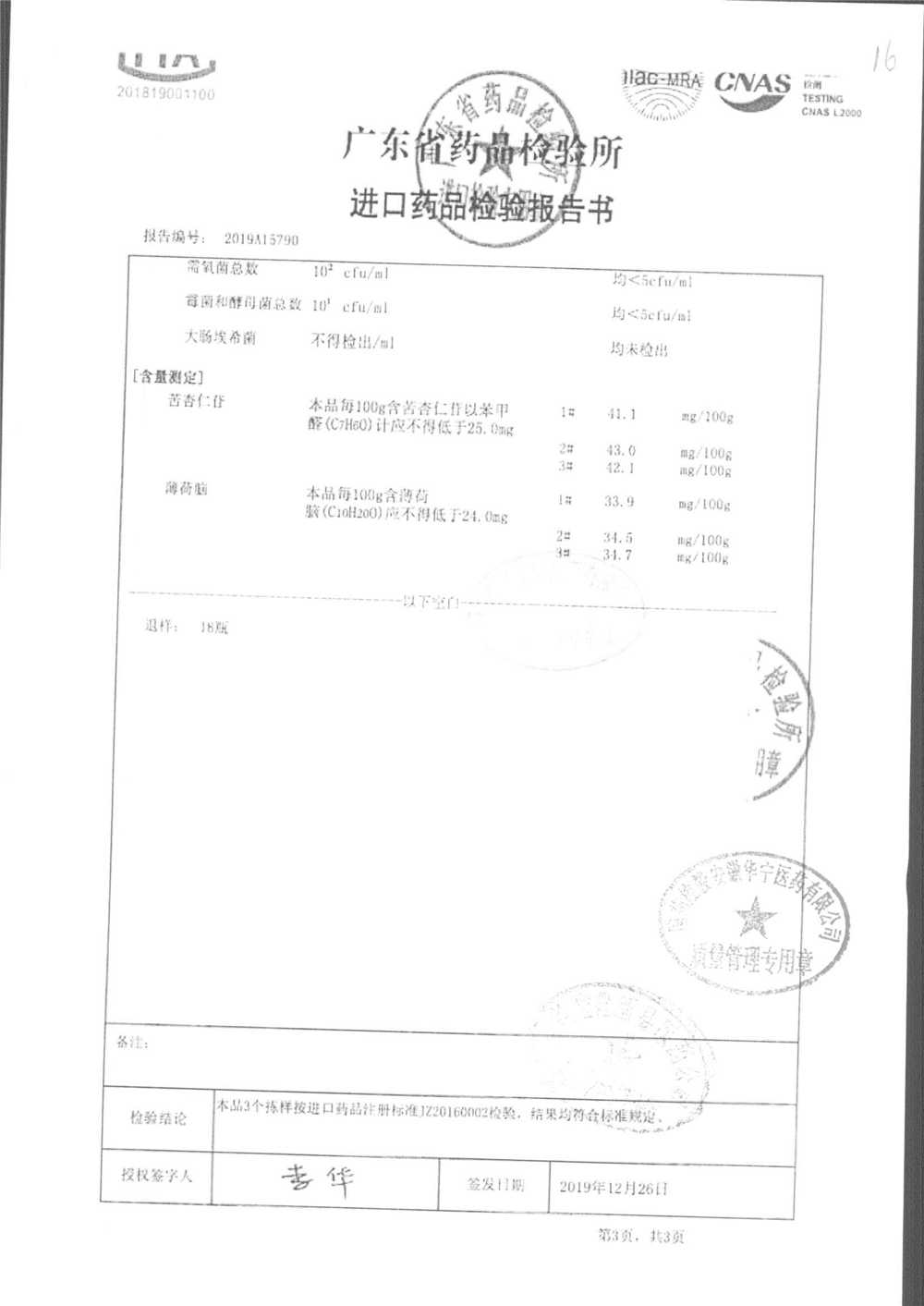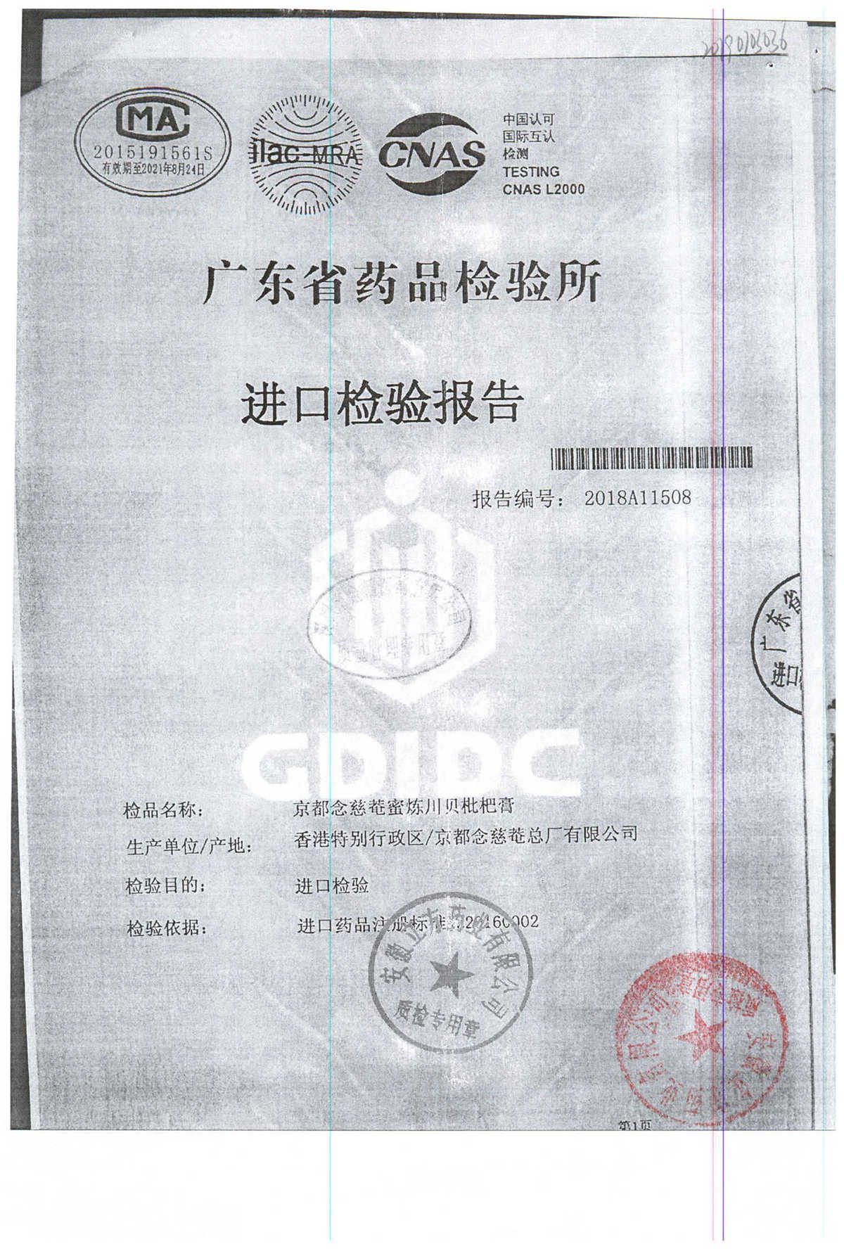 名称 | 规格 | 批号 | 药检报告 |