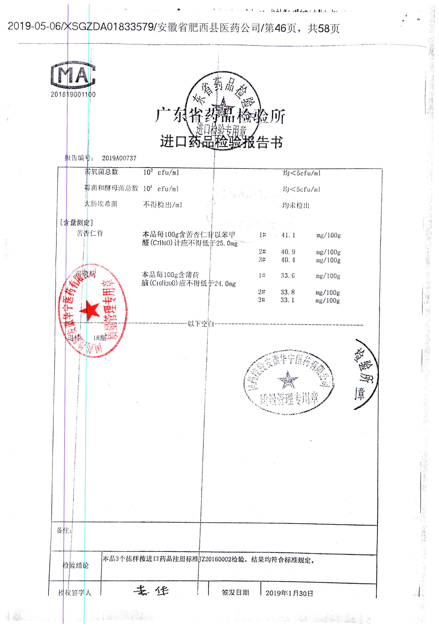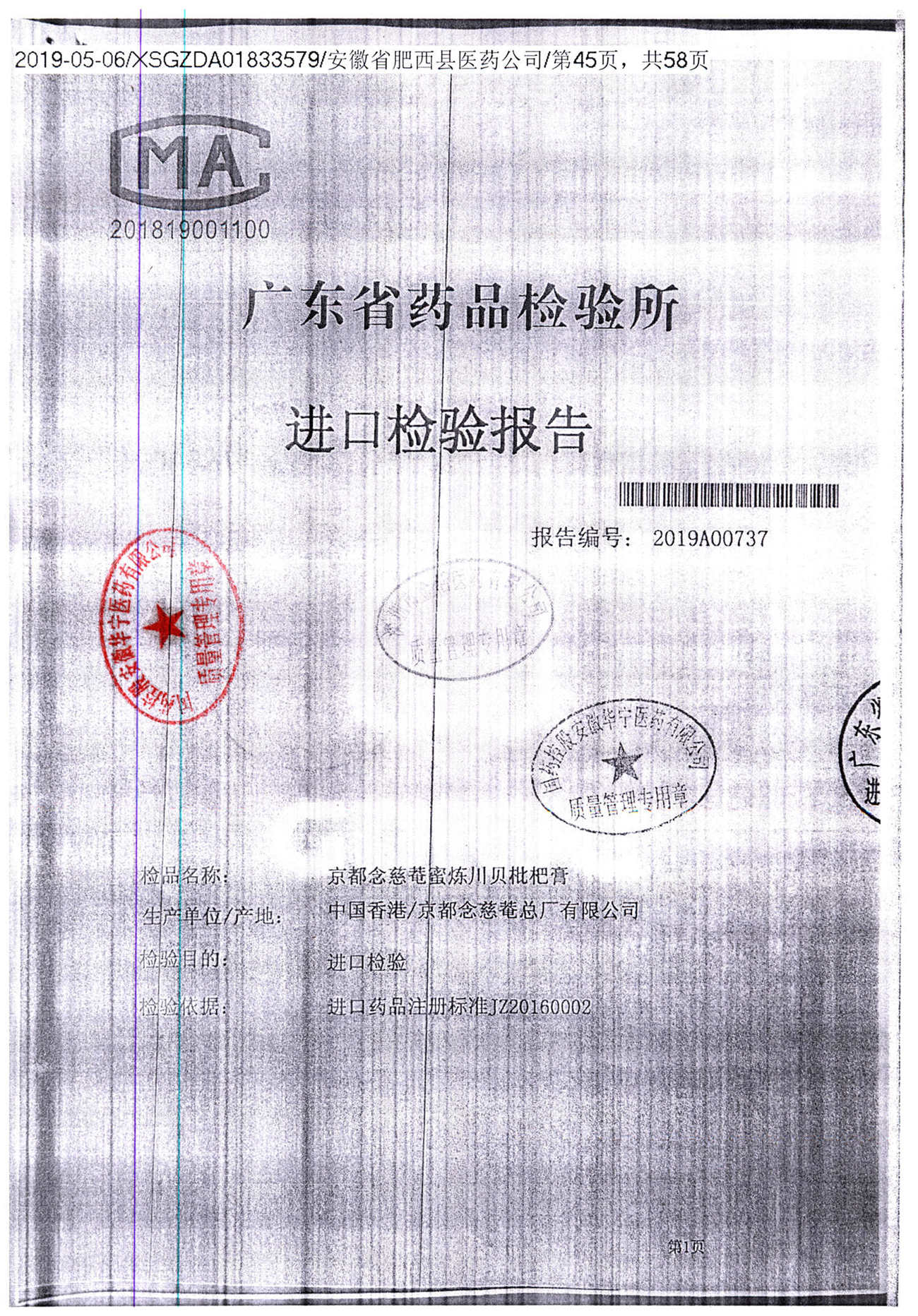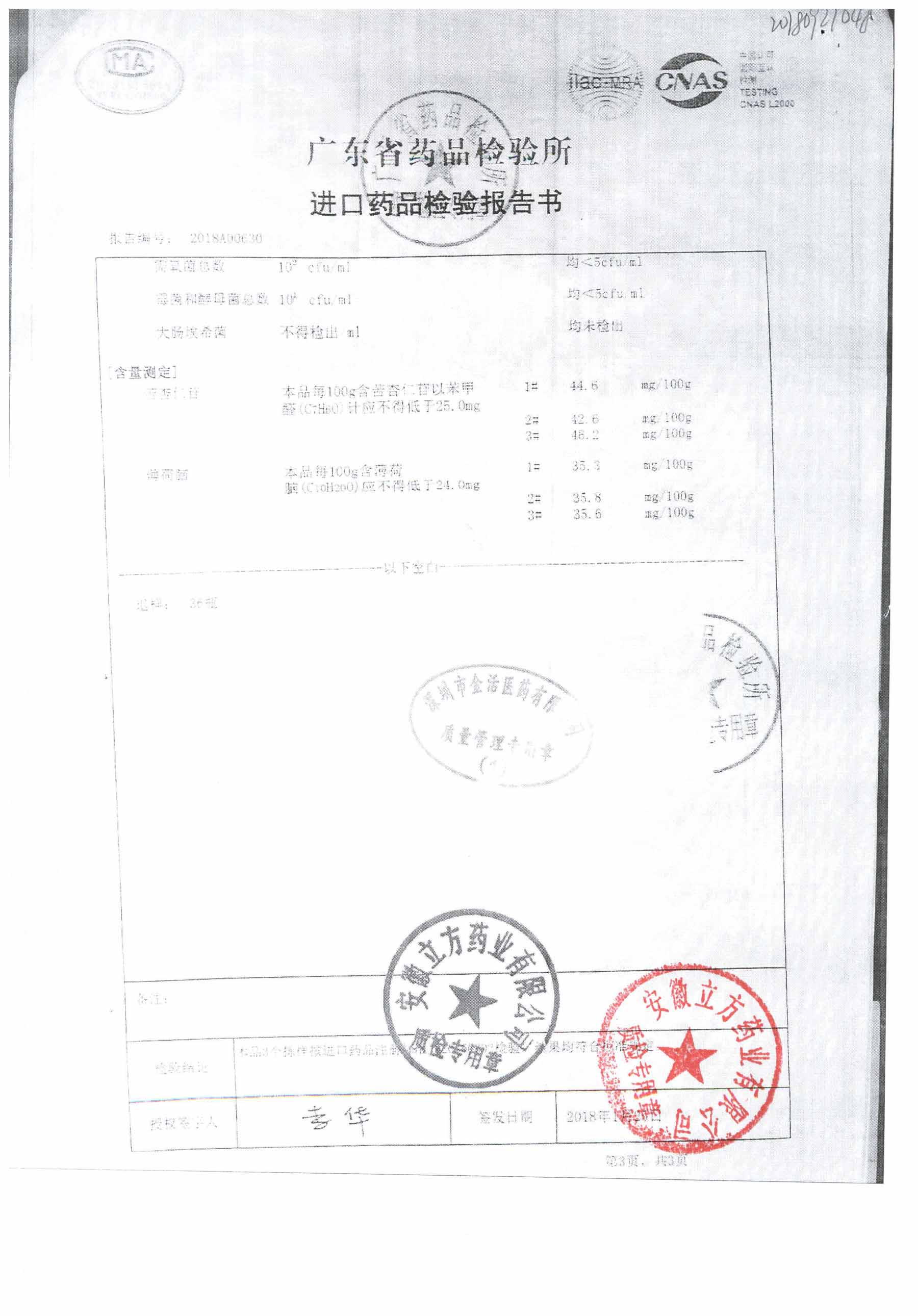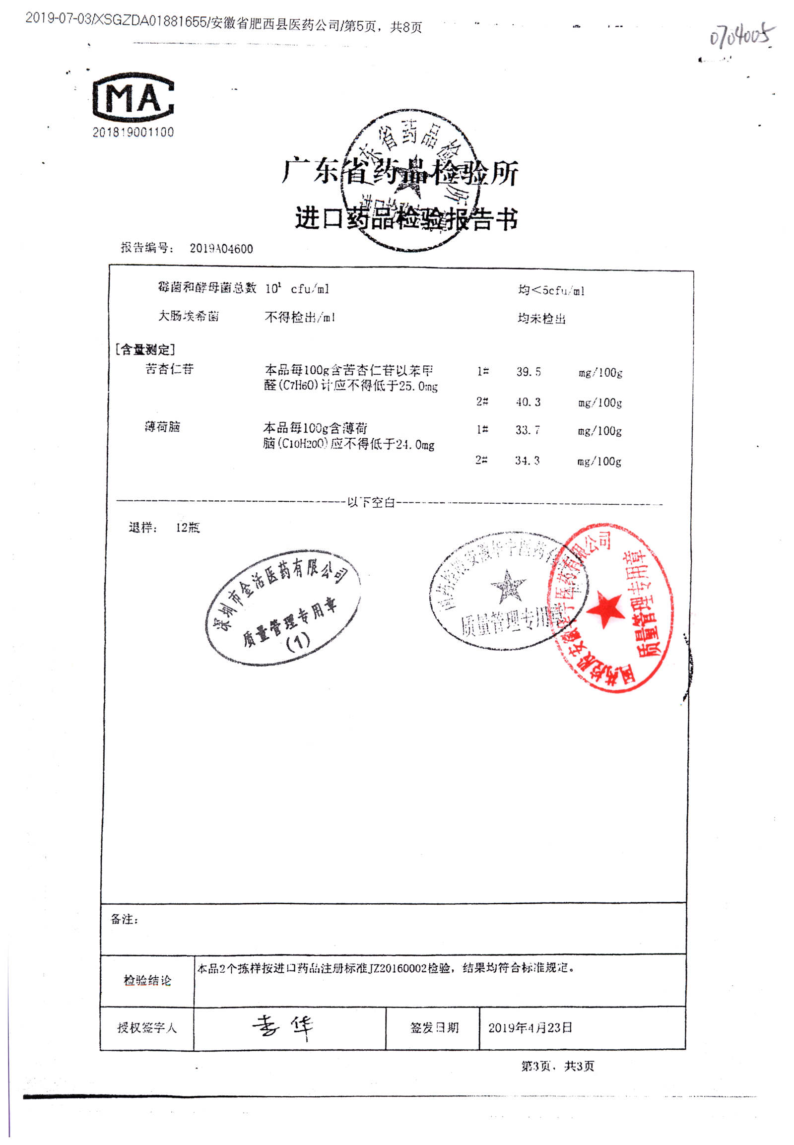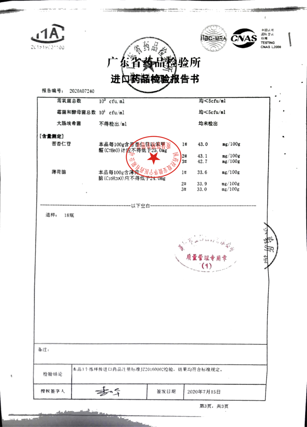 名称 | 规格 | 批号 | 药检报告 |