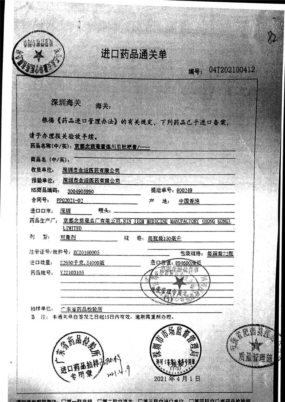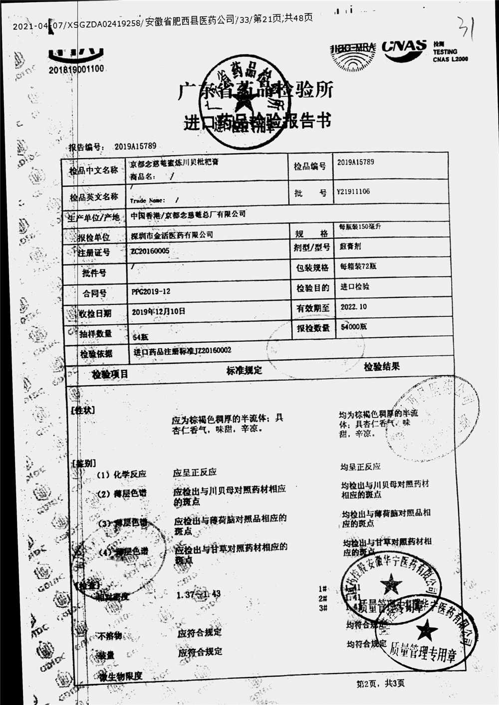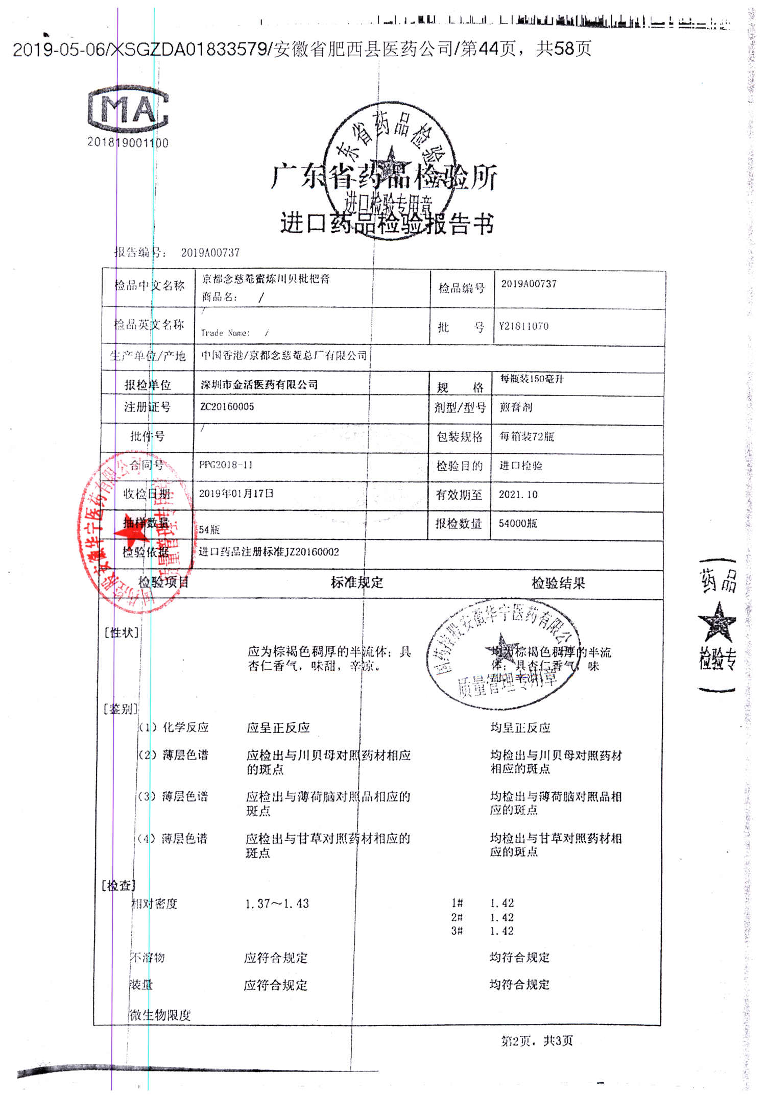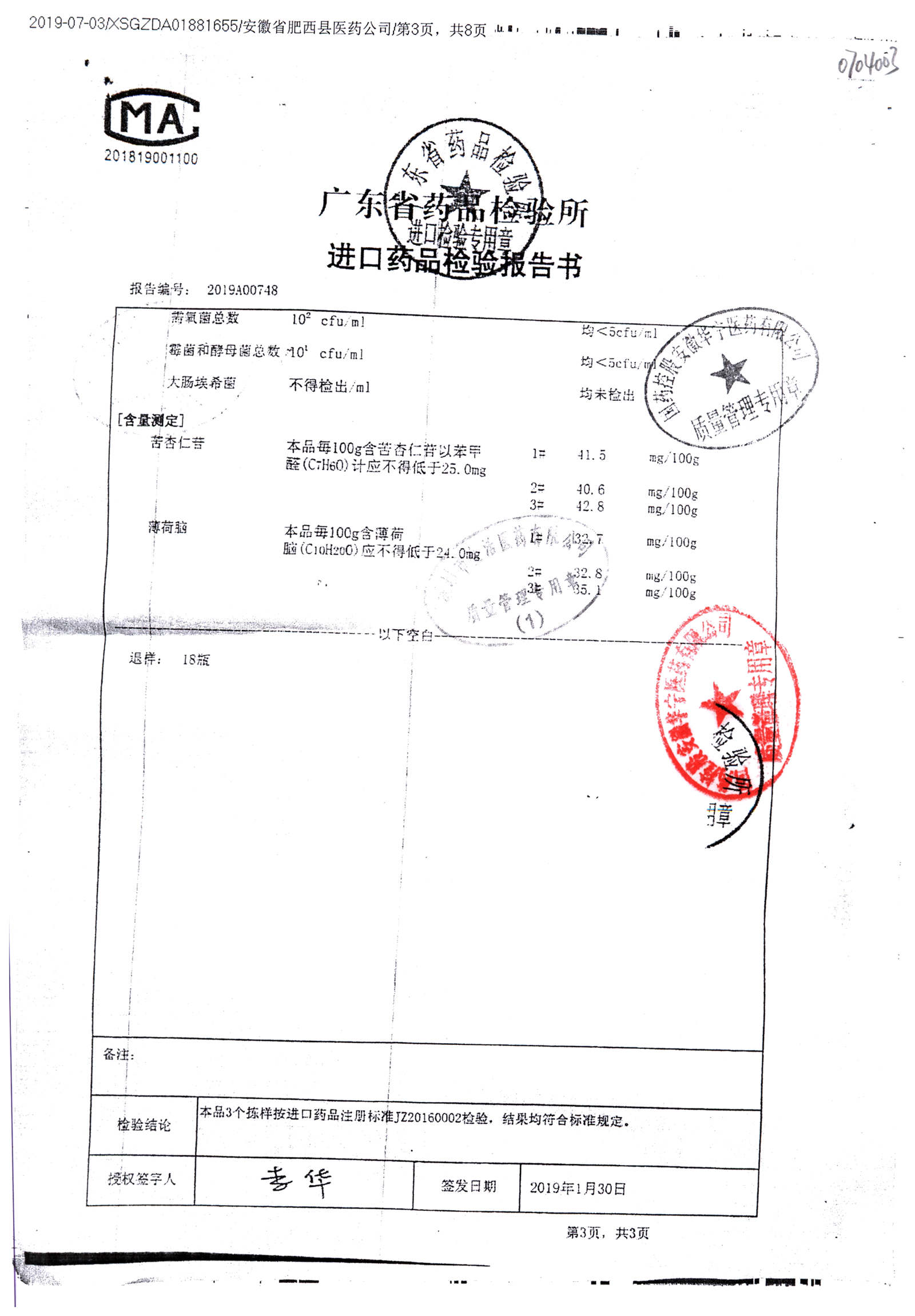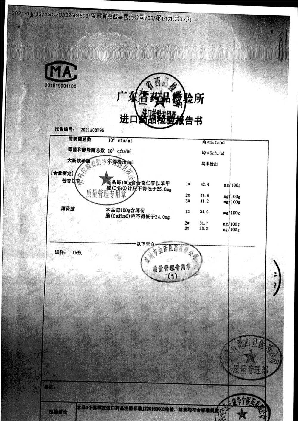 名称 | 规格 | 批号 | 药检报告 |