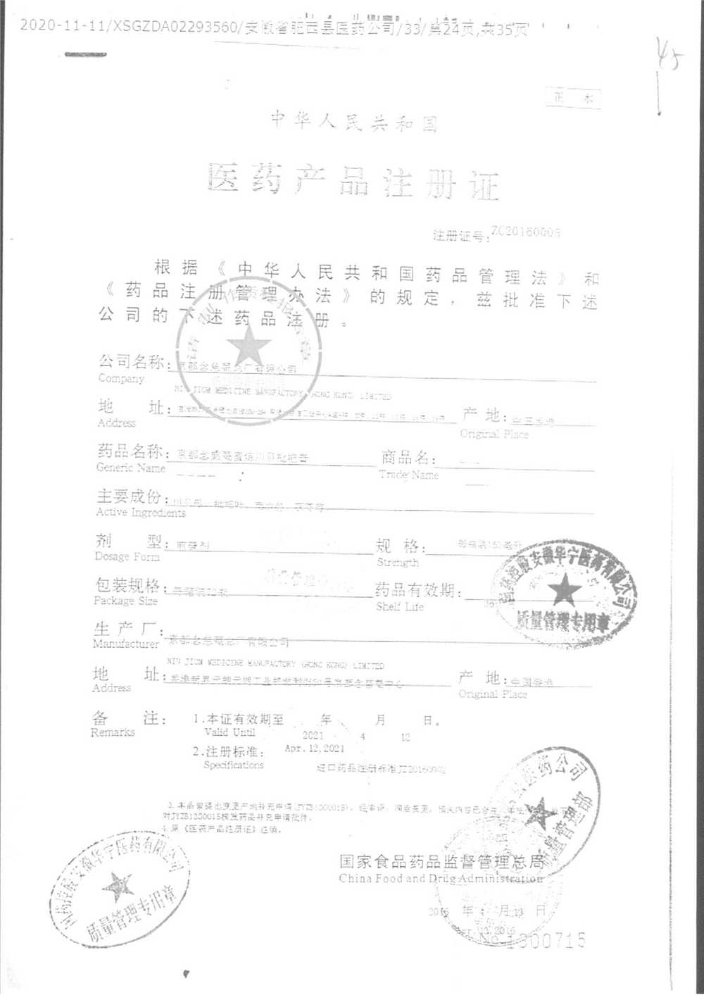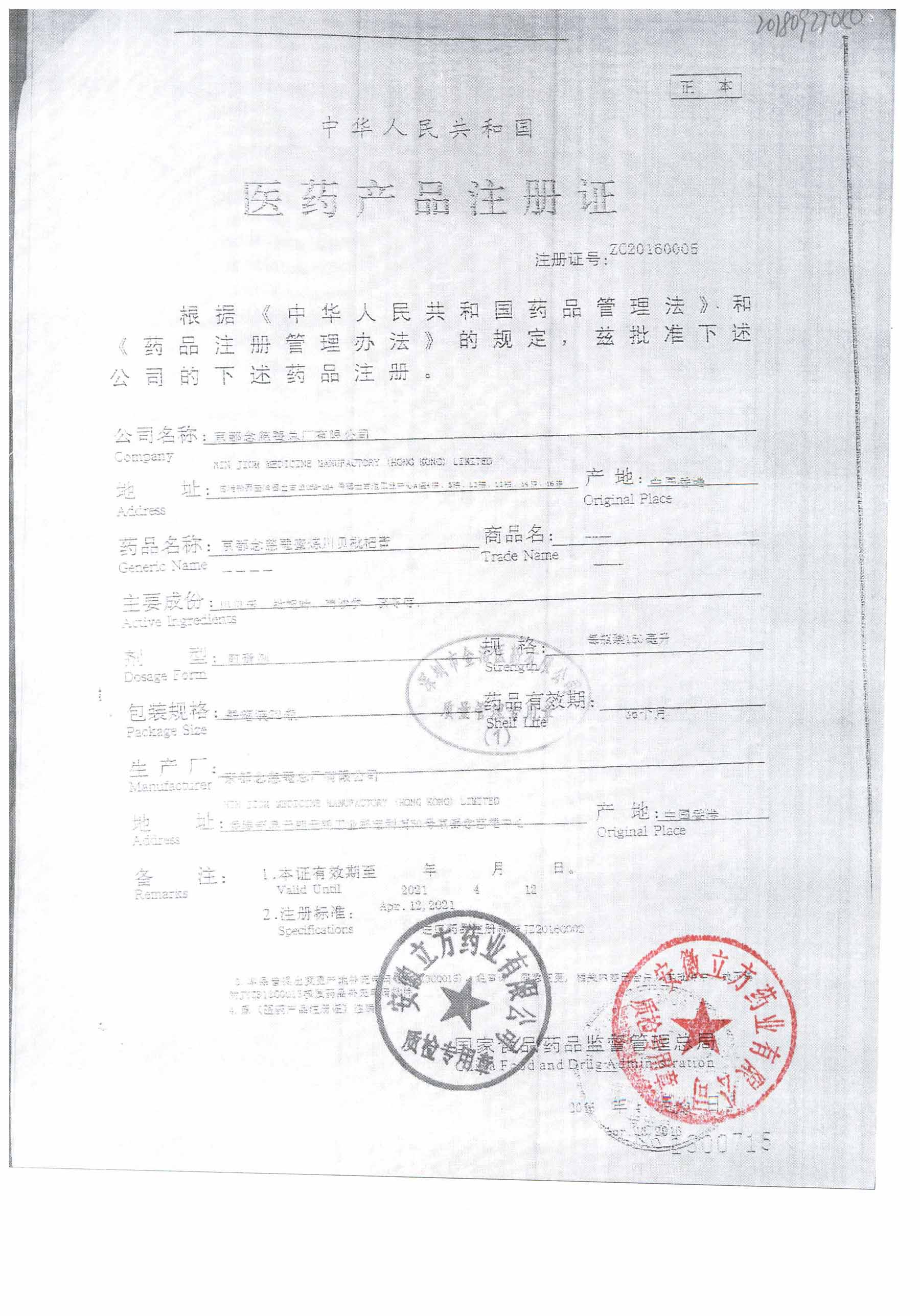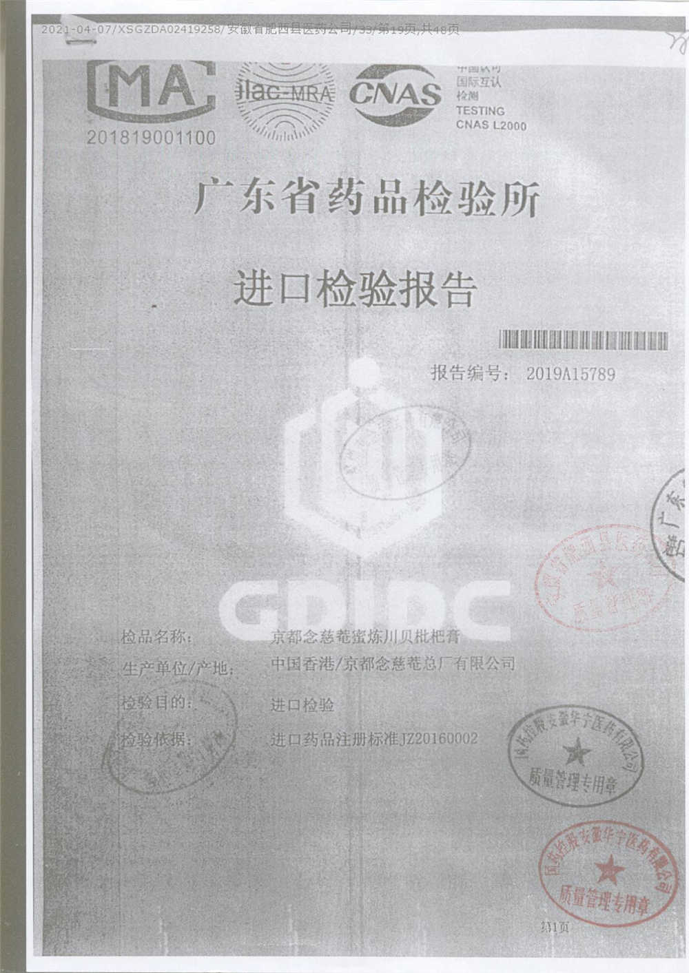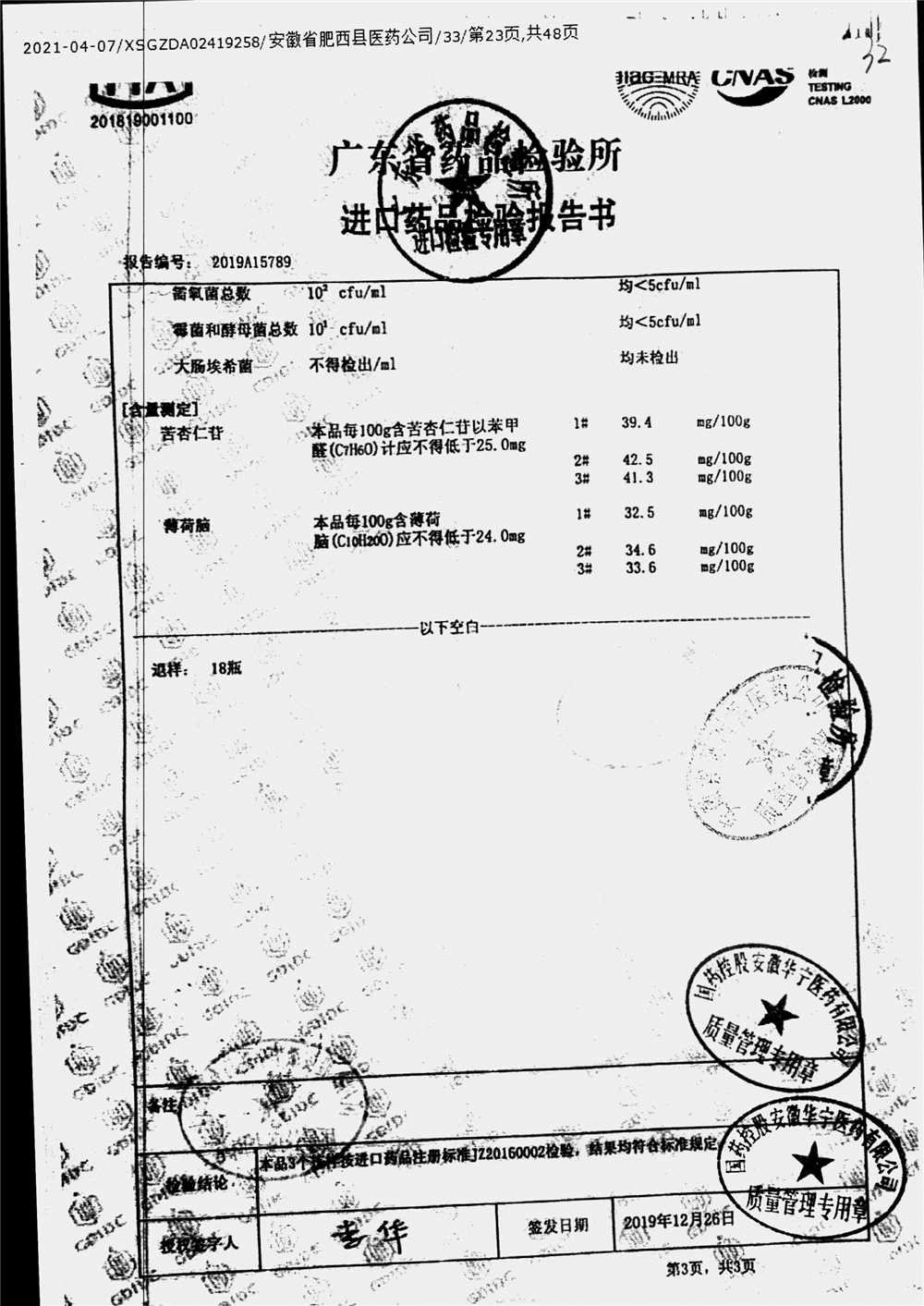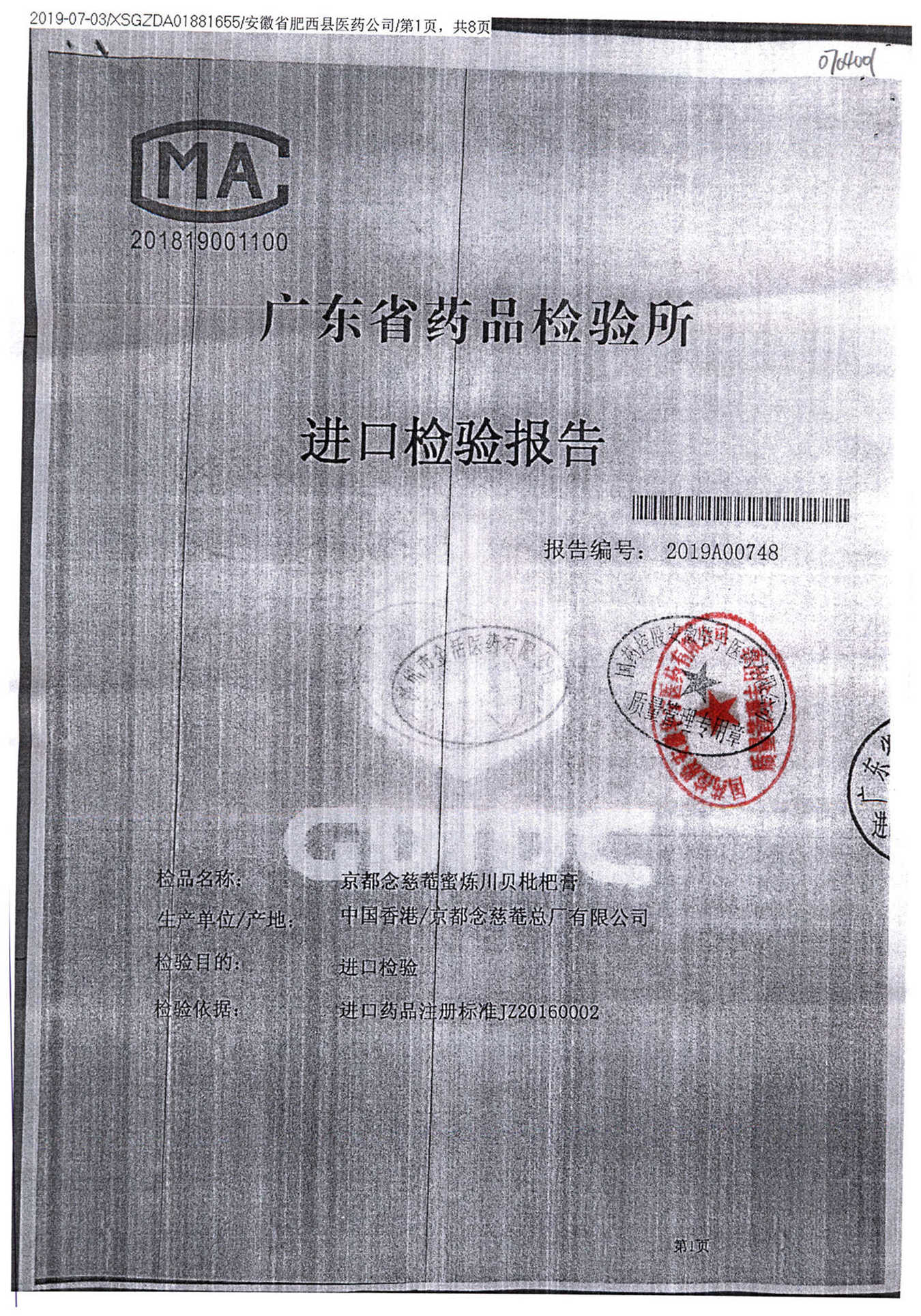 名称 | 规格 | 批号 | 药检报告 |