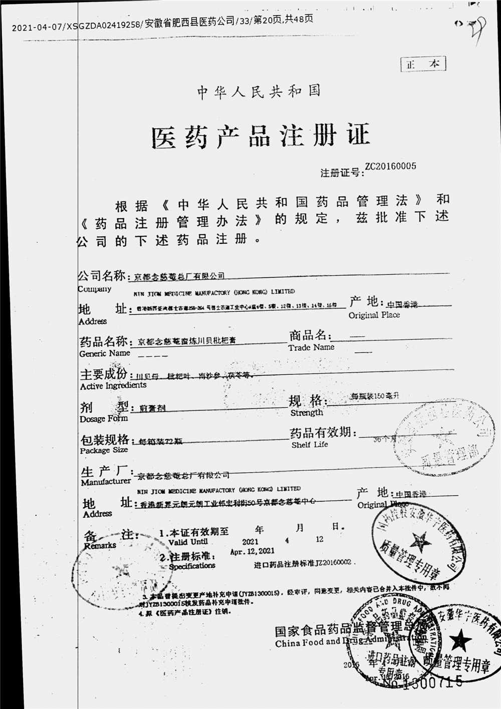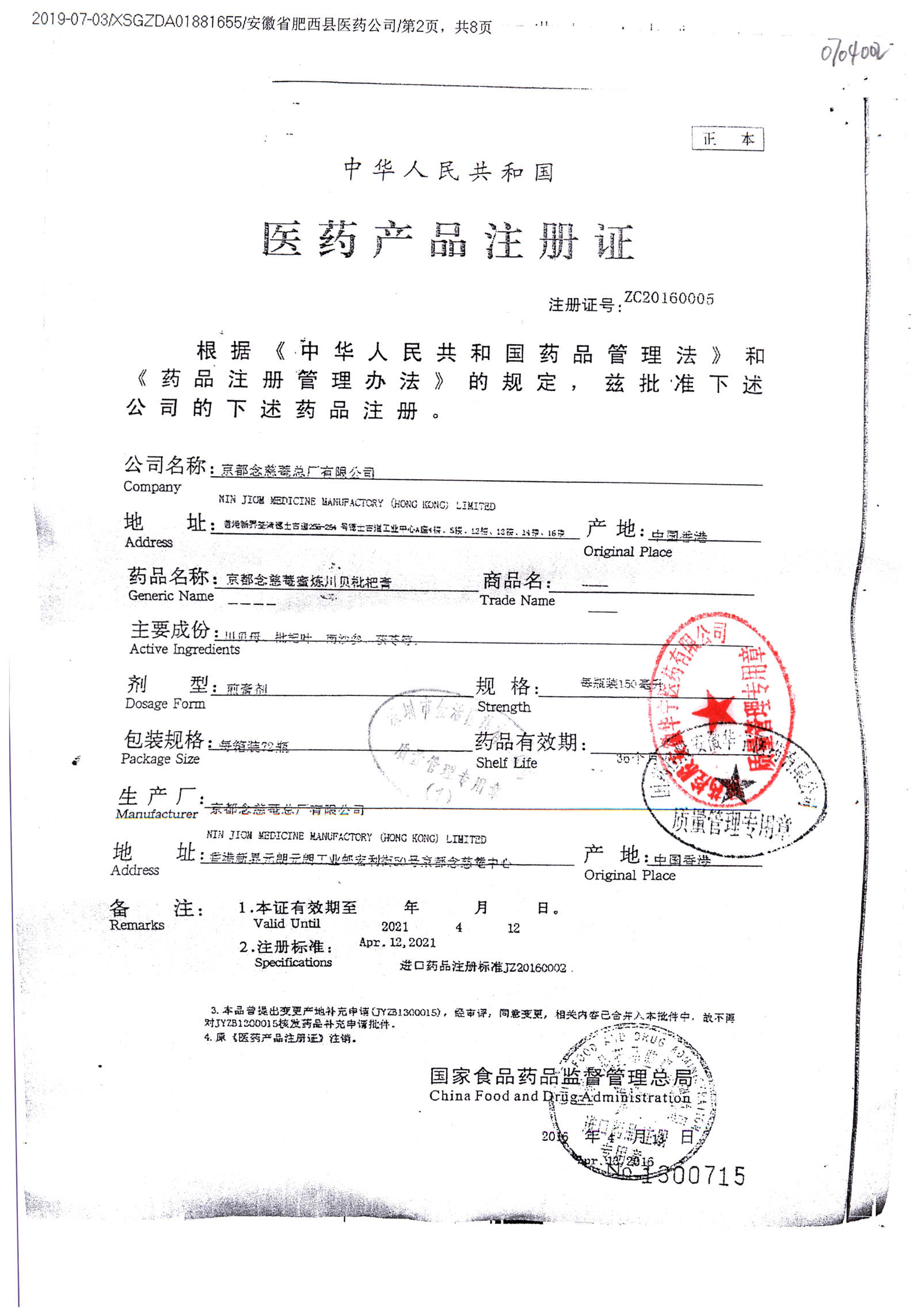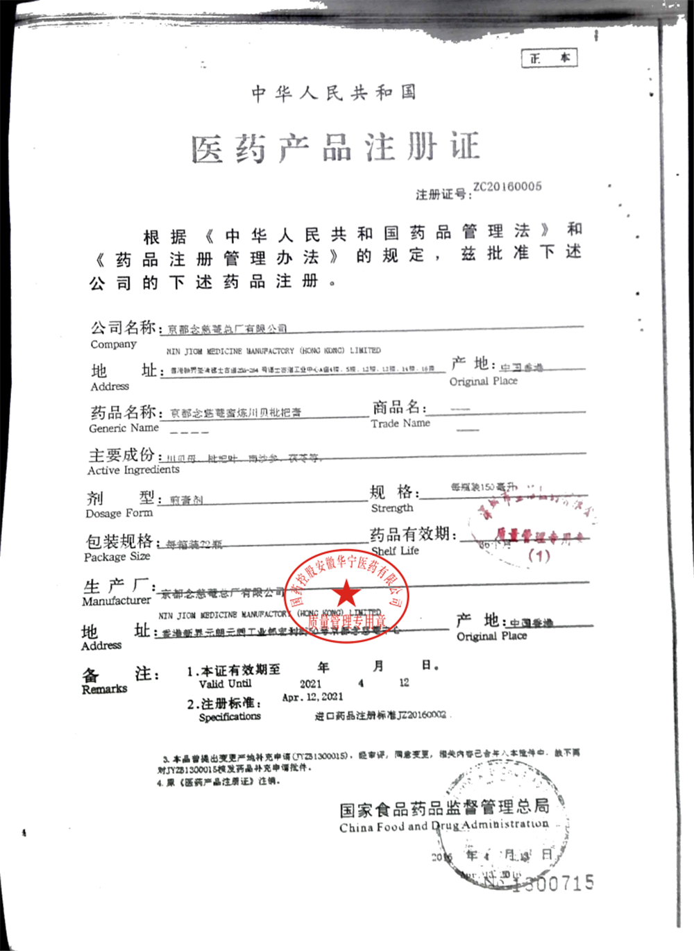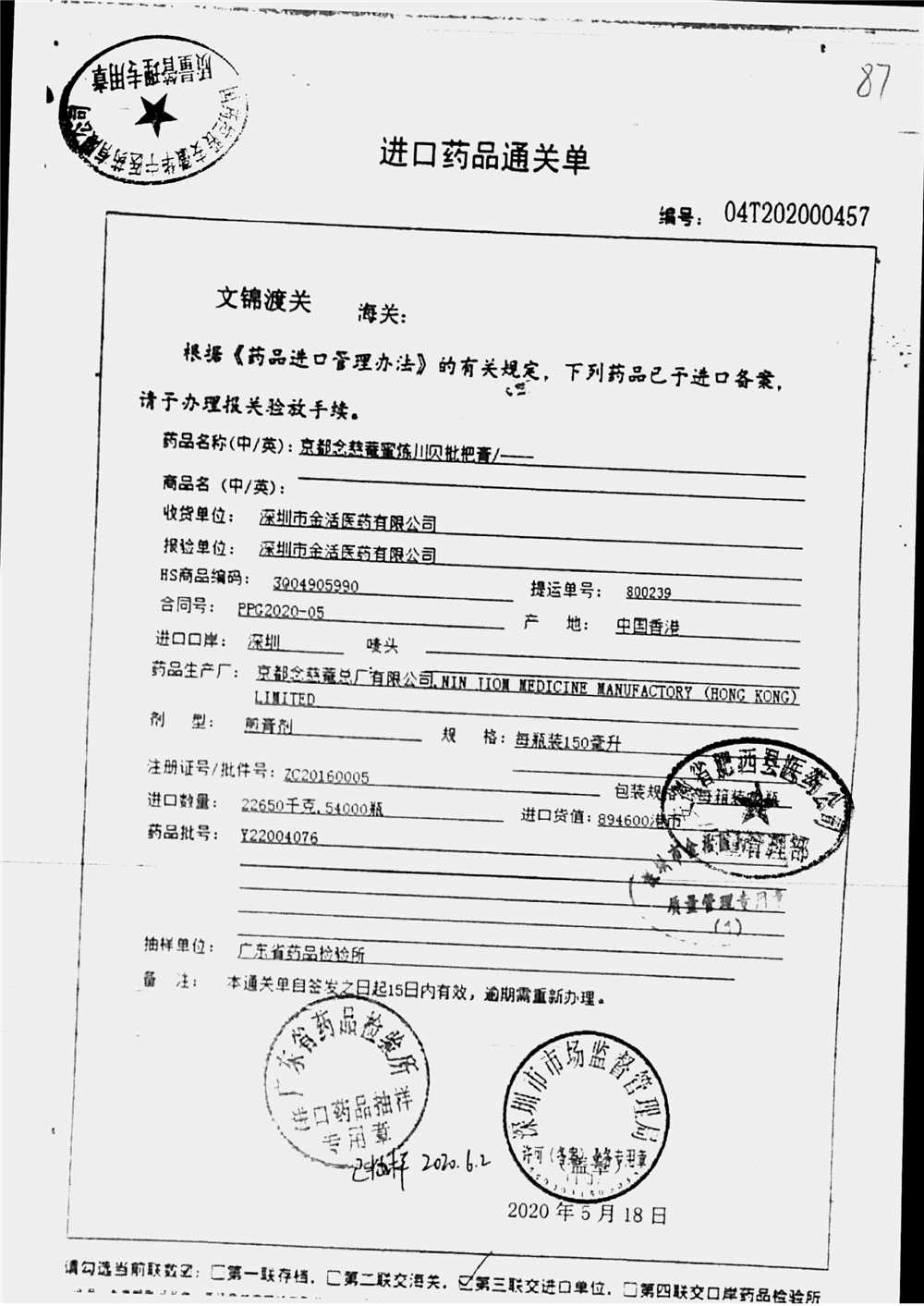 京都念慈菴蜜炼川贝枇杷膏 | 150ml | Y22004076(1/5) | 查看详情 |