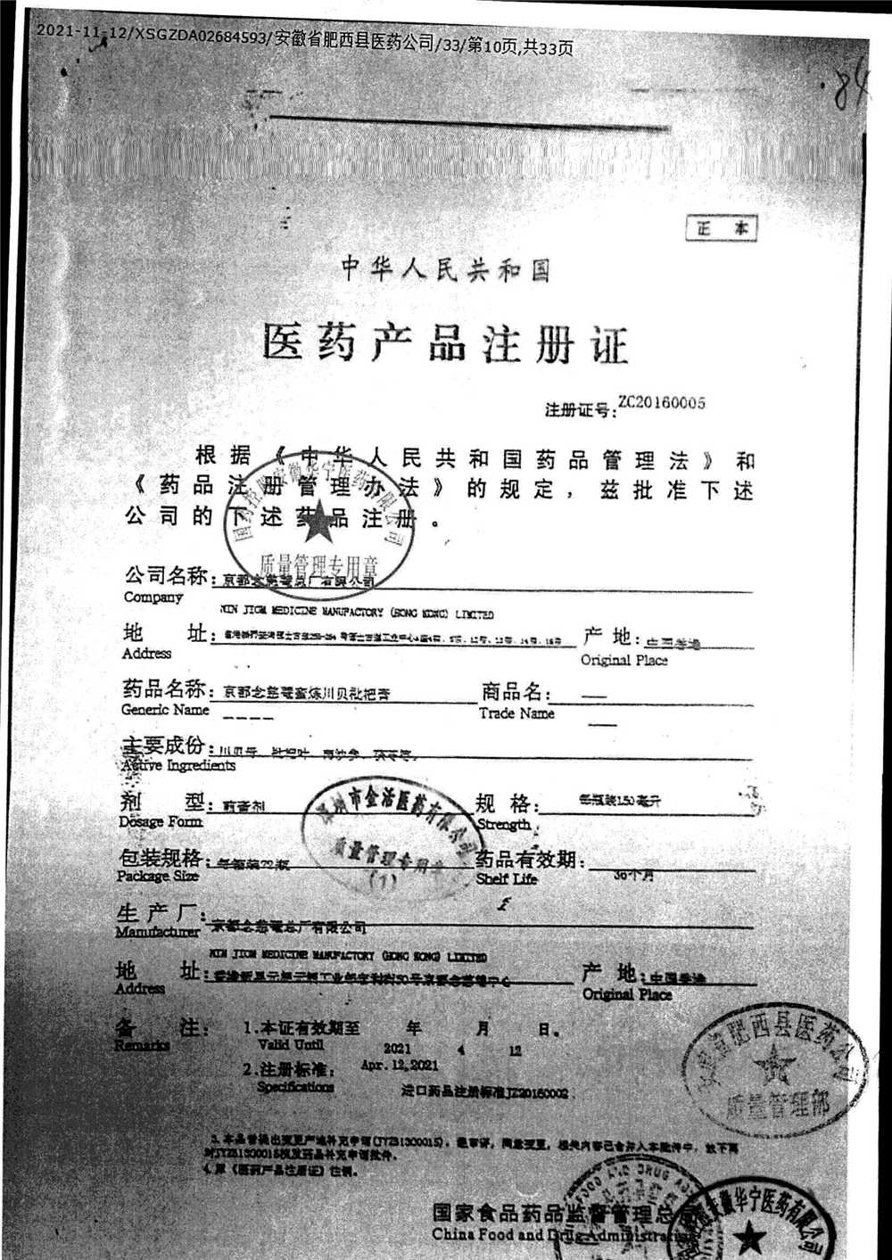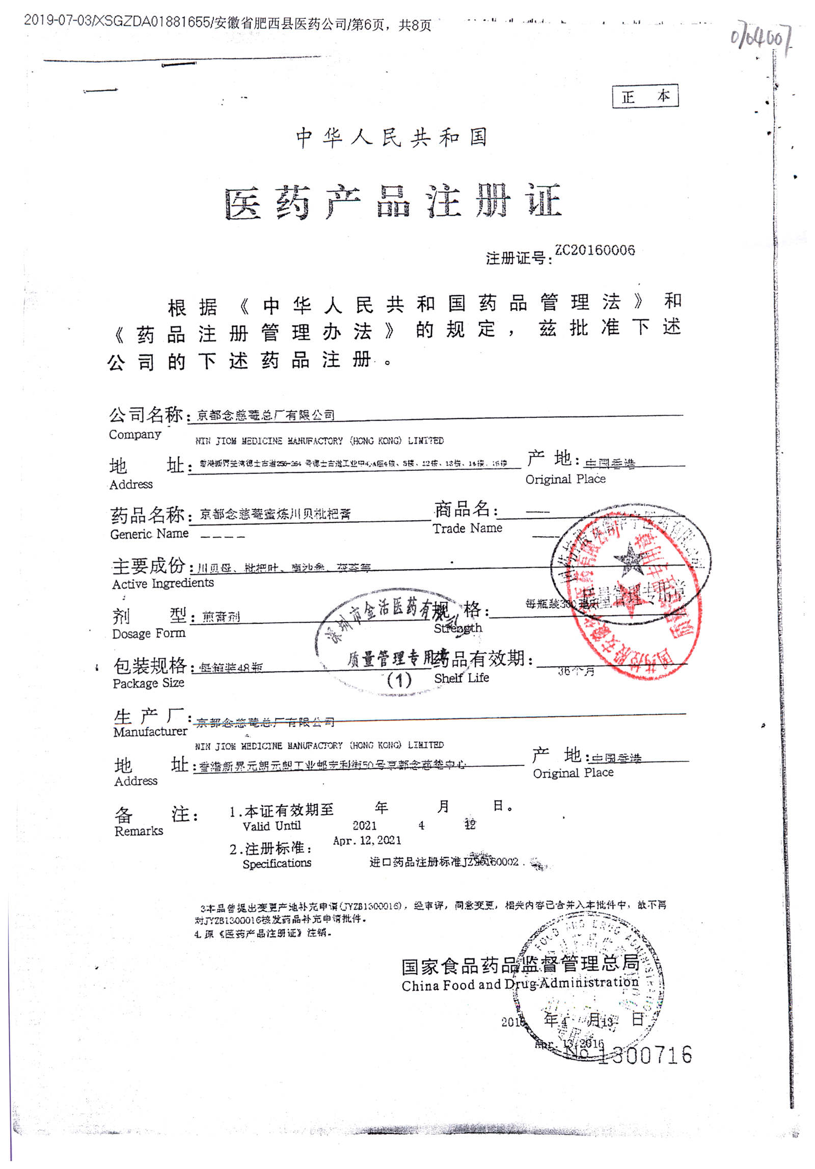 京都念慈菴蜜炼川贝枇杷膏 | 150ml | Y21911105(1/4) | 查看详情 |