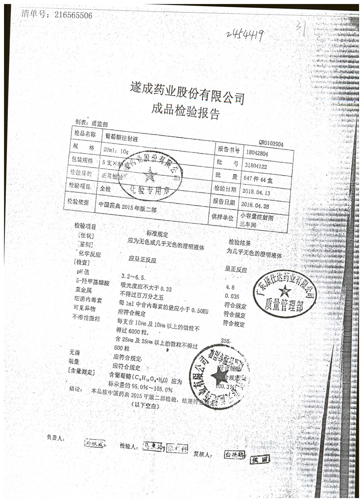 药检报告