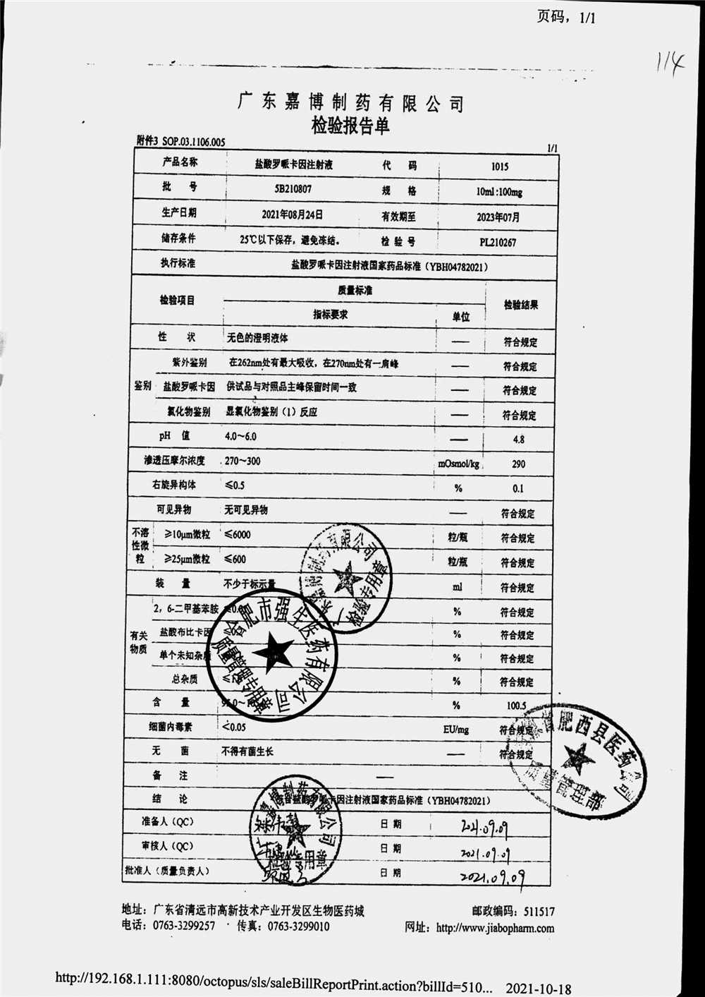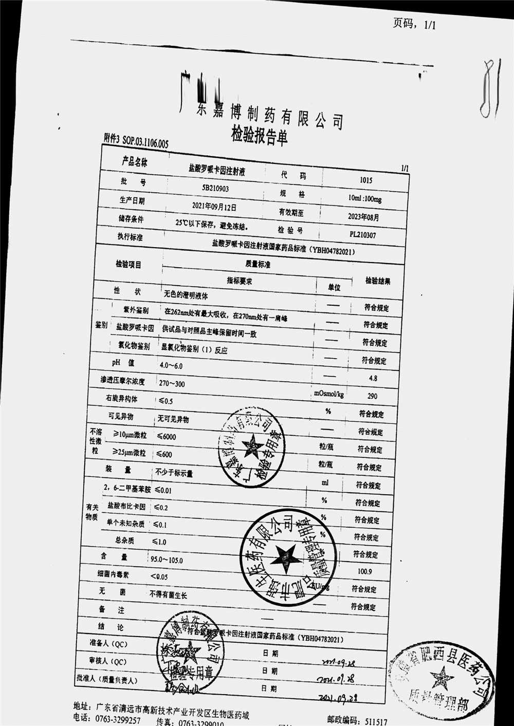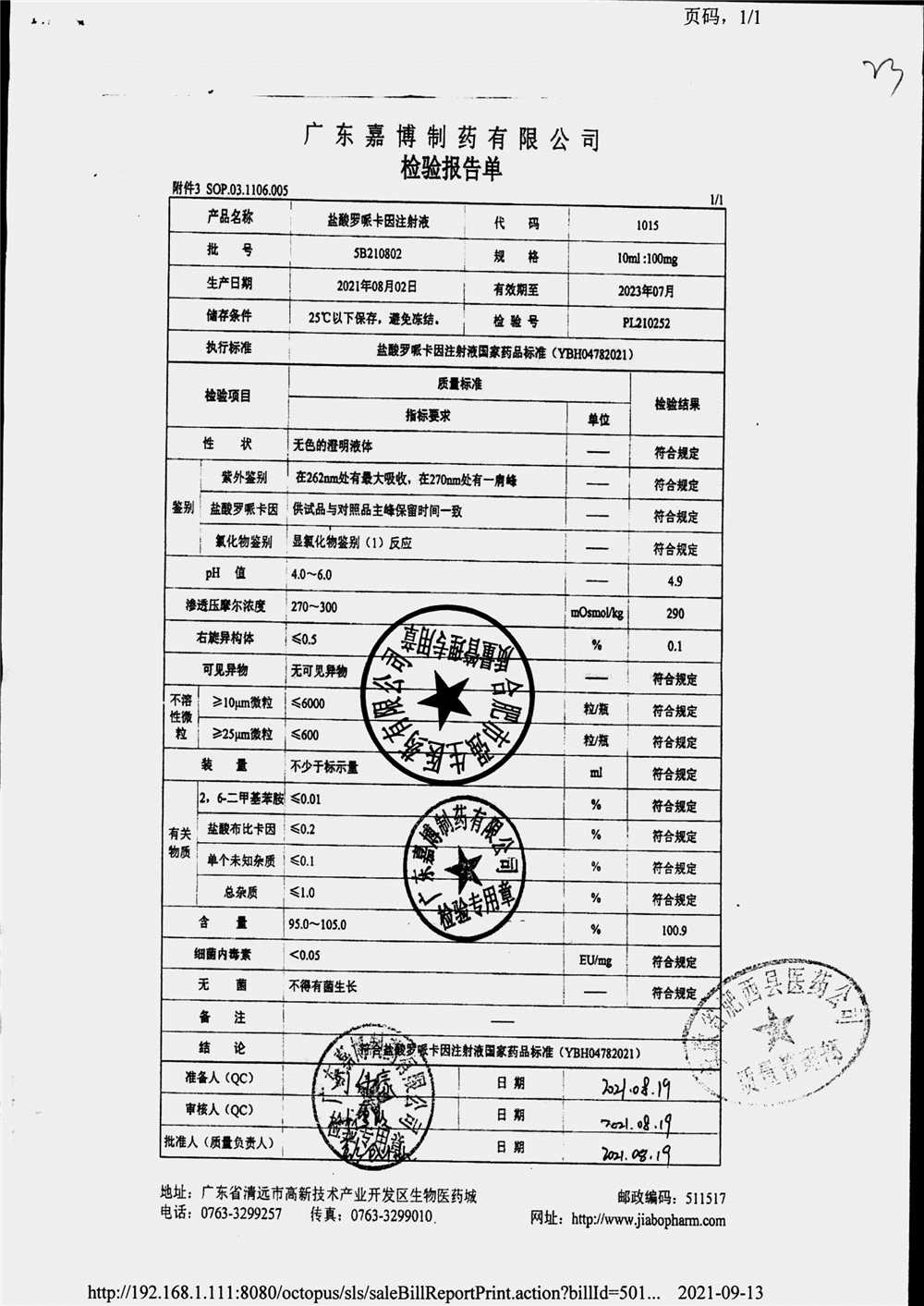 盐酸罗哌卡因注射液 | 10ml:75mg | 5B210903 | 查看详情 |
