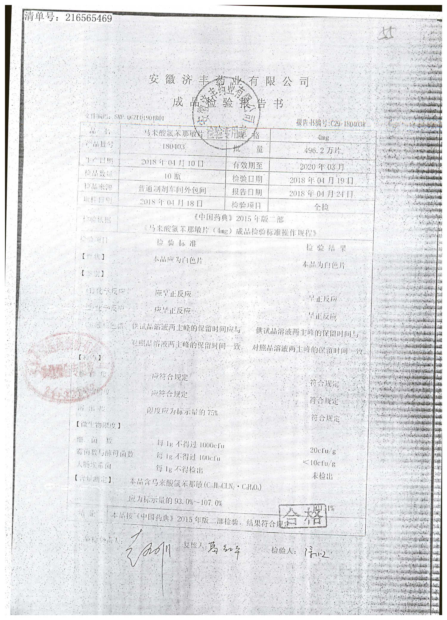 药检报告
